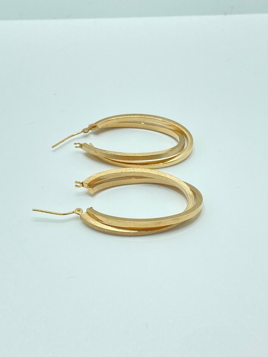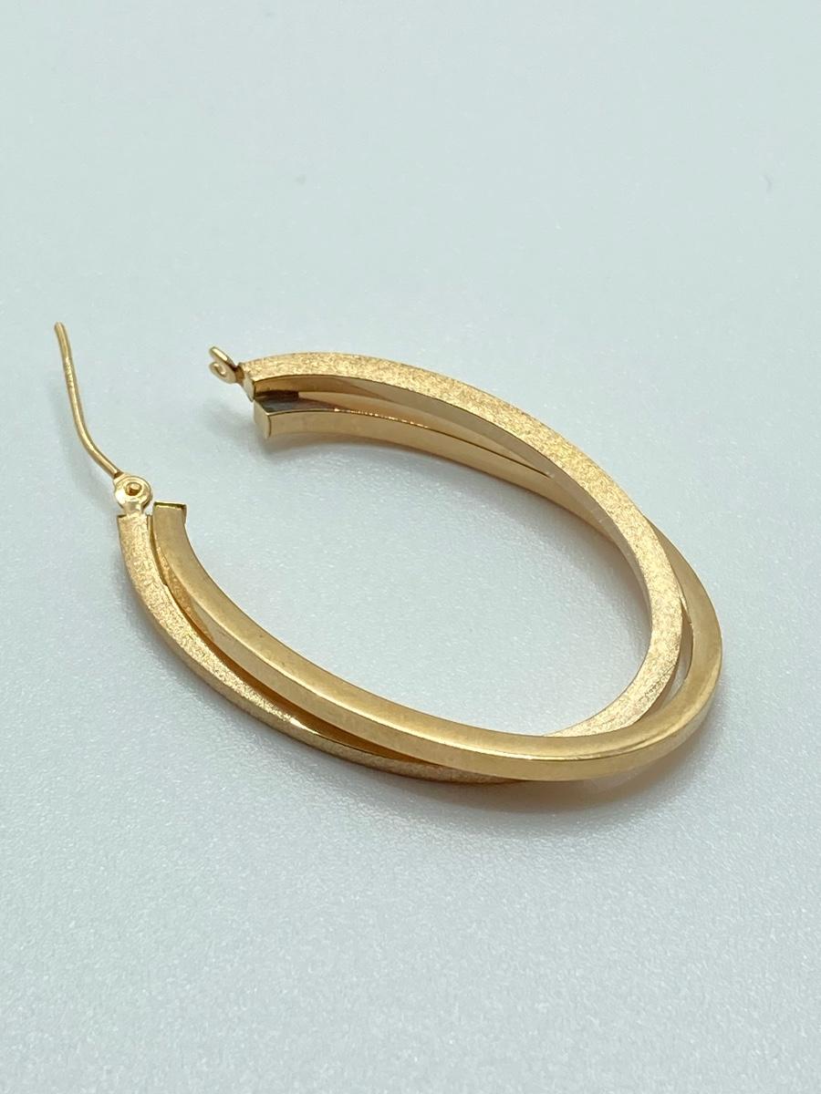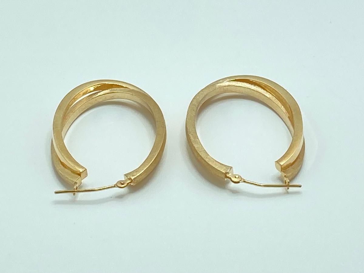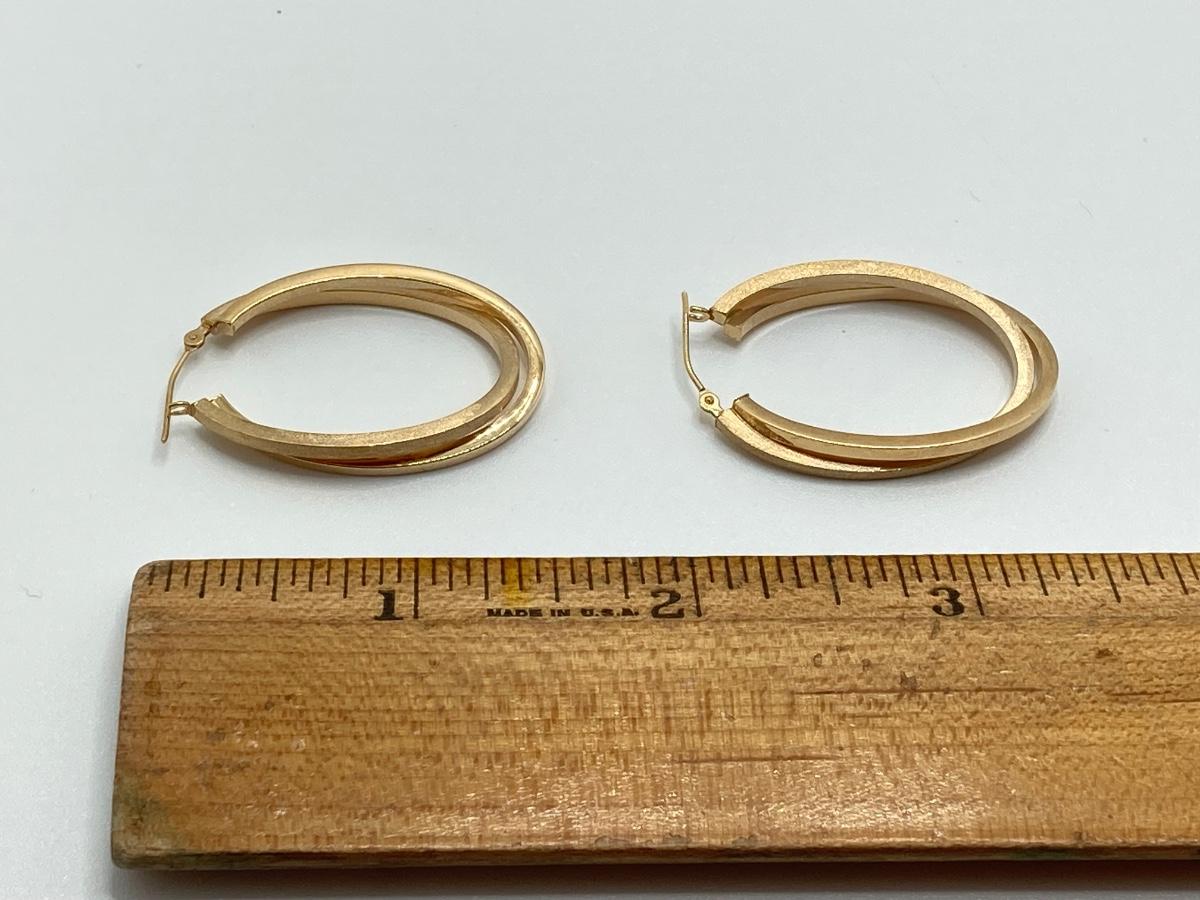 LOT 165J: RL Shiny / Brushed Gold Hoop Earrings - 14K., Tw. 2.89g