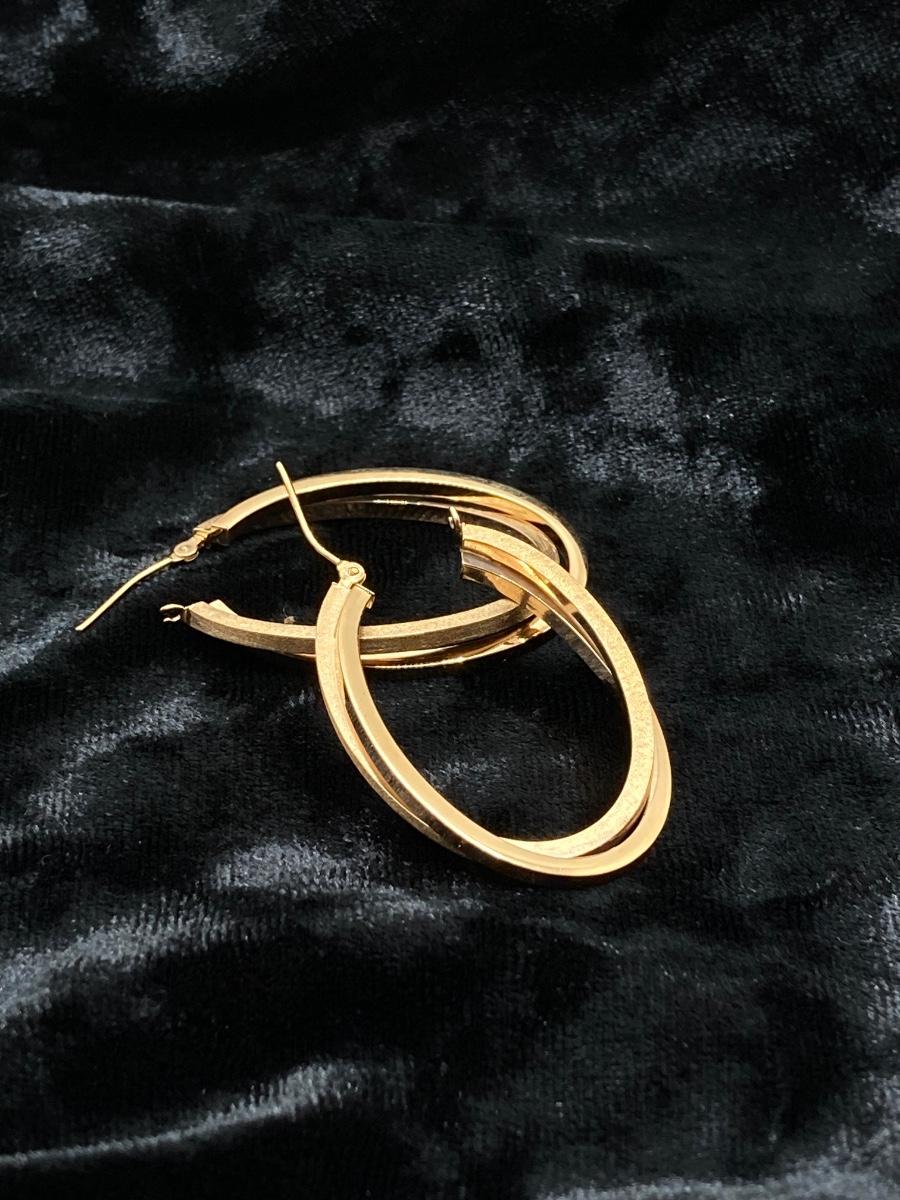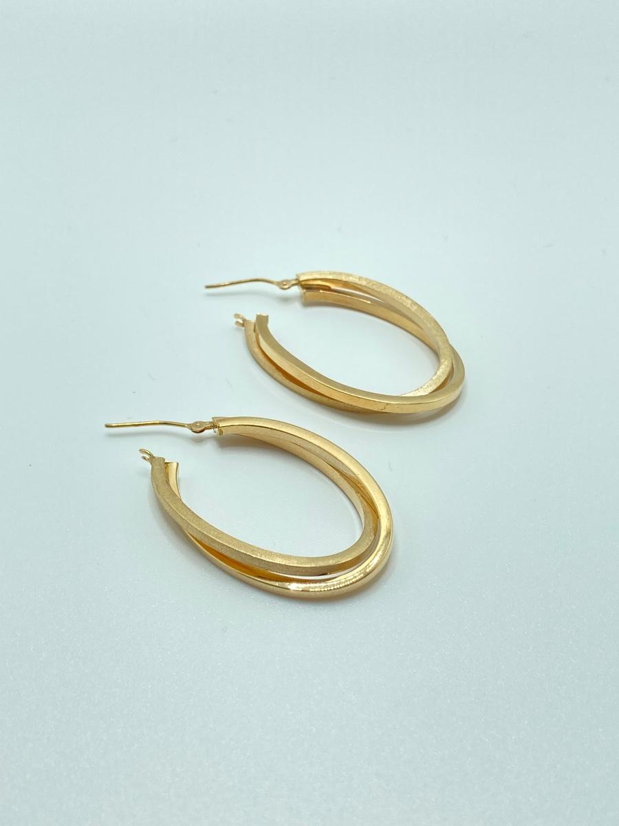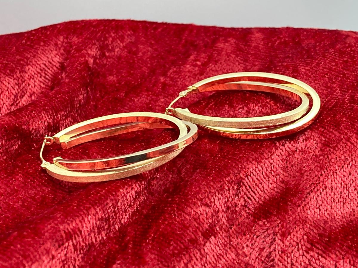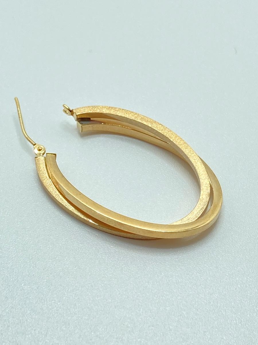 LOT 165J: RL Shiny / Brushed Gold Hoop Earrings - 14K., Tw. 2.89g