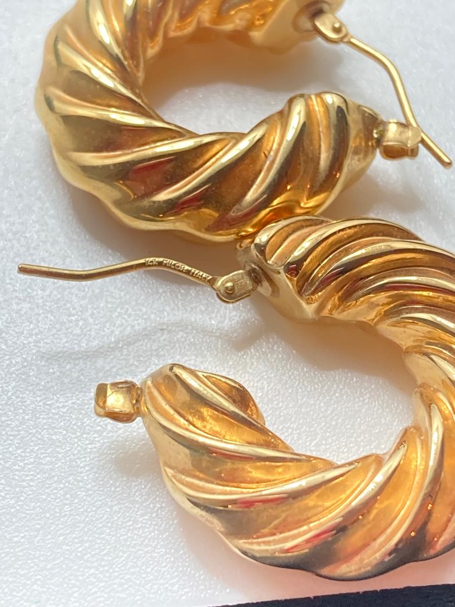LOT 181J: Milor Italy Gold Swirl Hoop Earrings, 14K., Tw. 6.06g