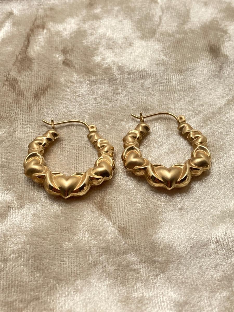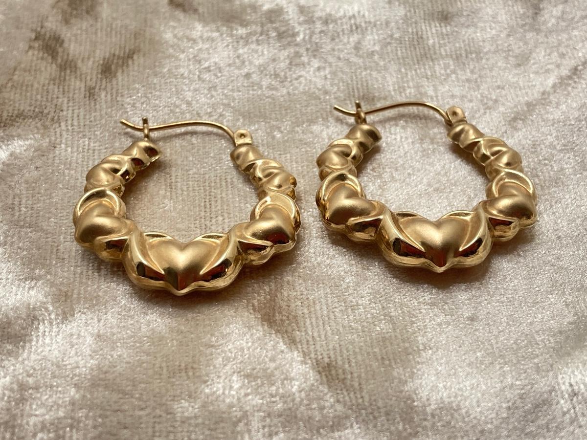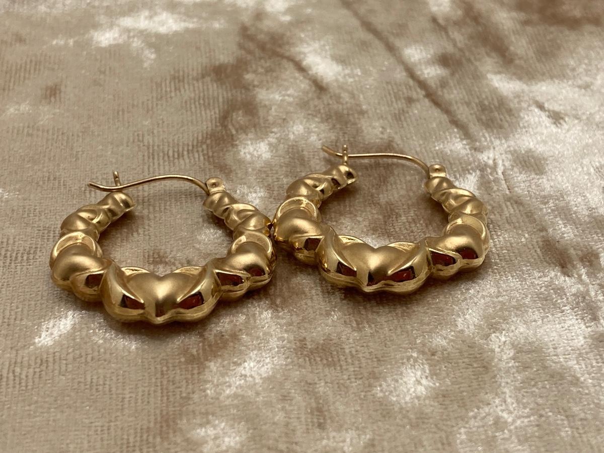 LOT 184J: SLC 10K Hoop / Heart Style Gold Earrings, Tw 2.35g
