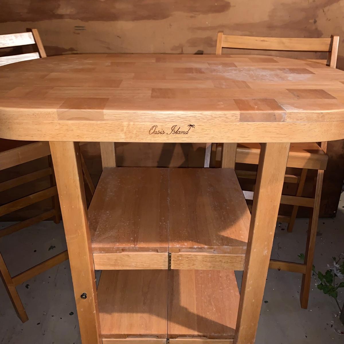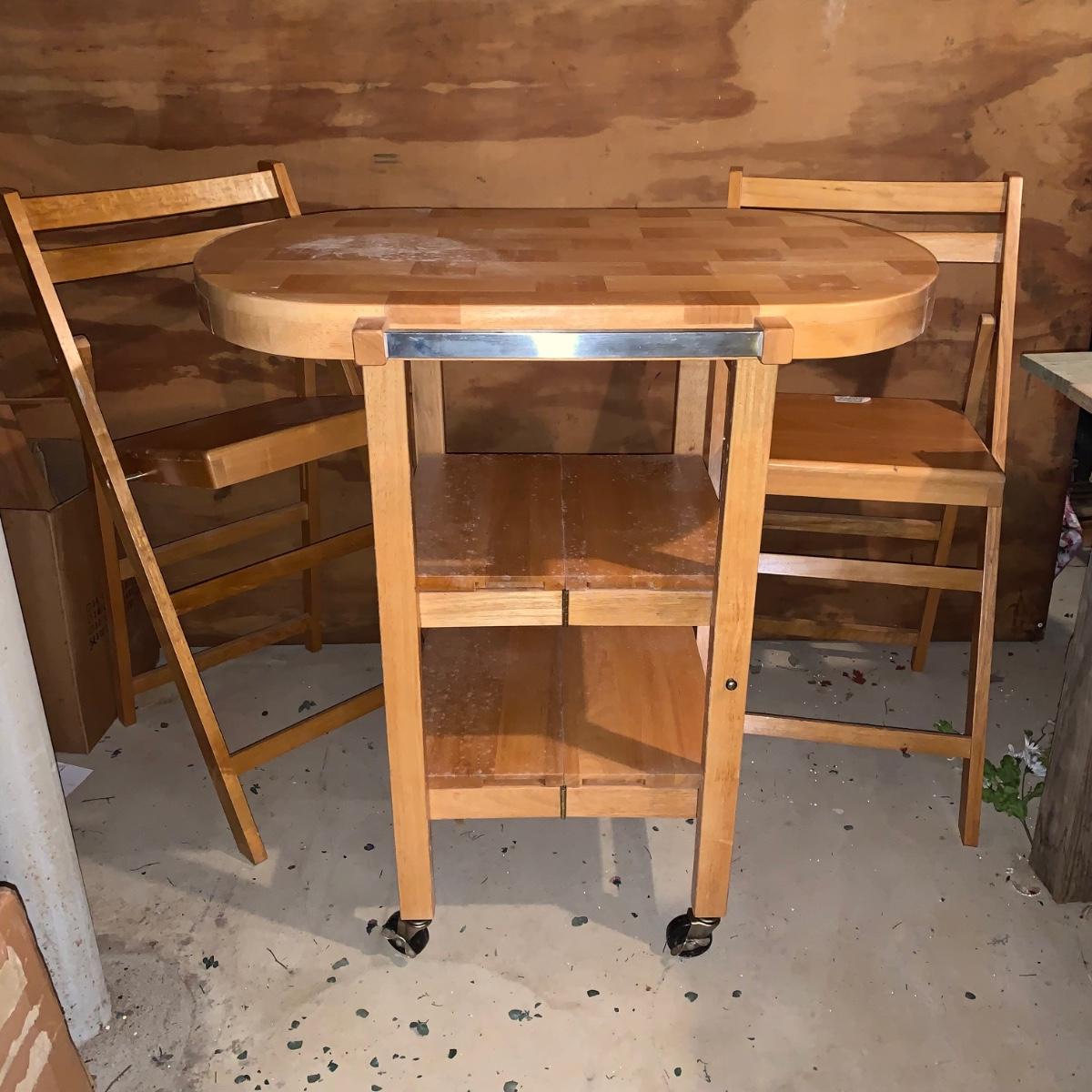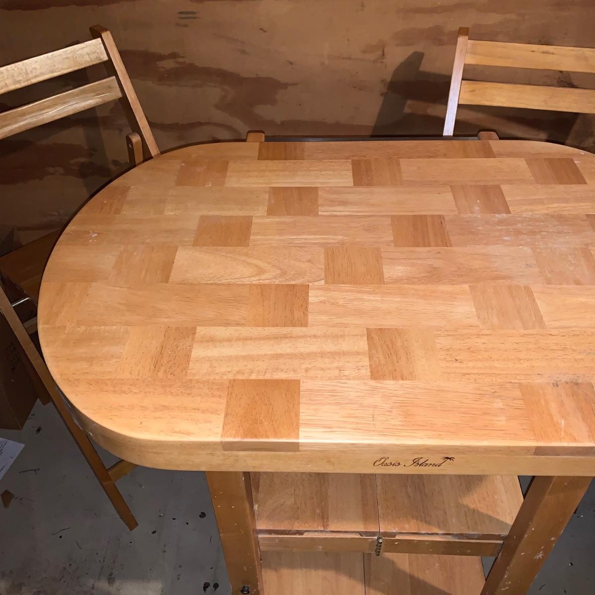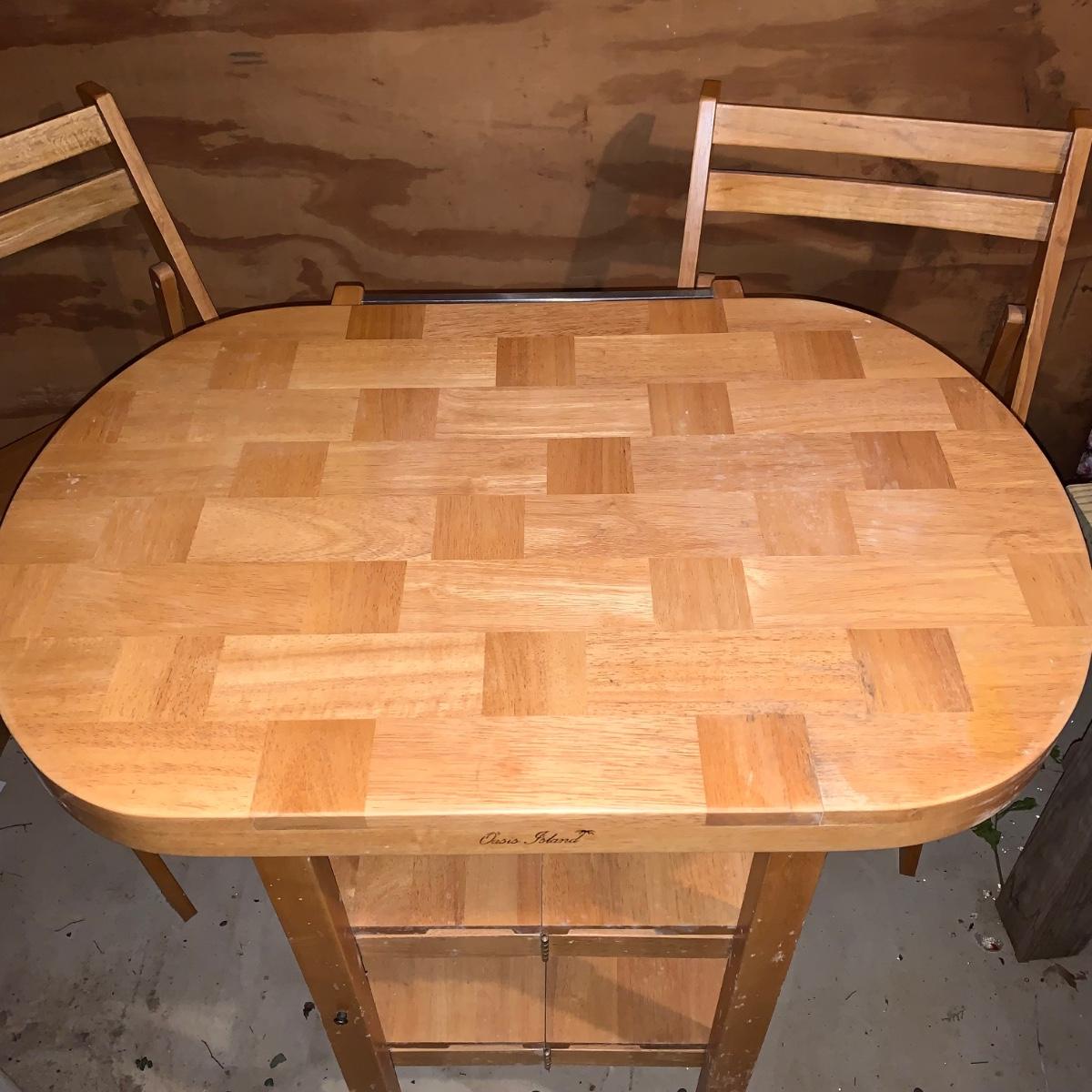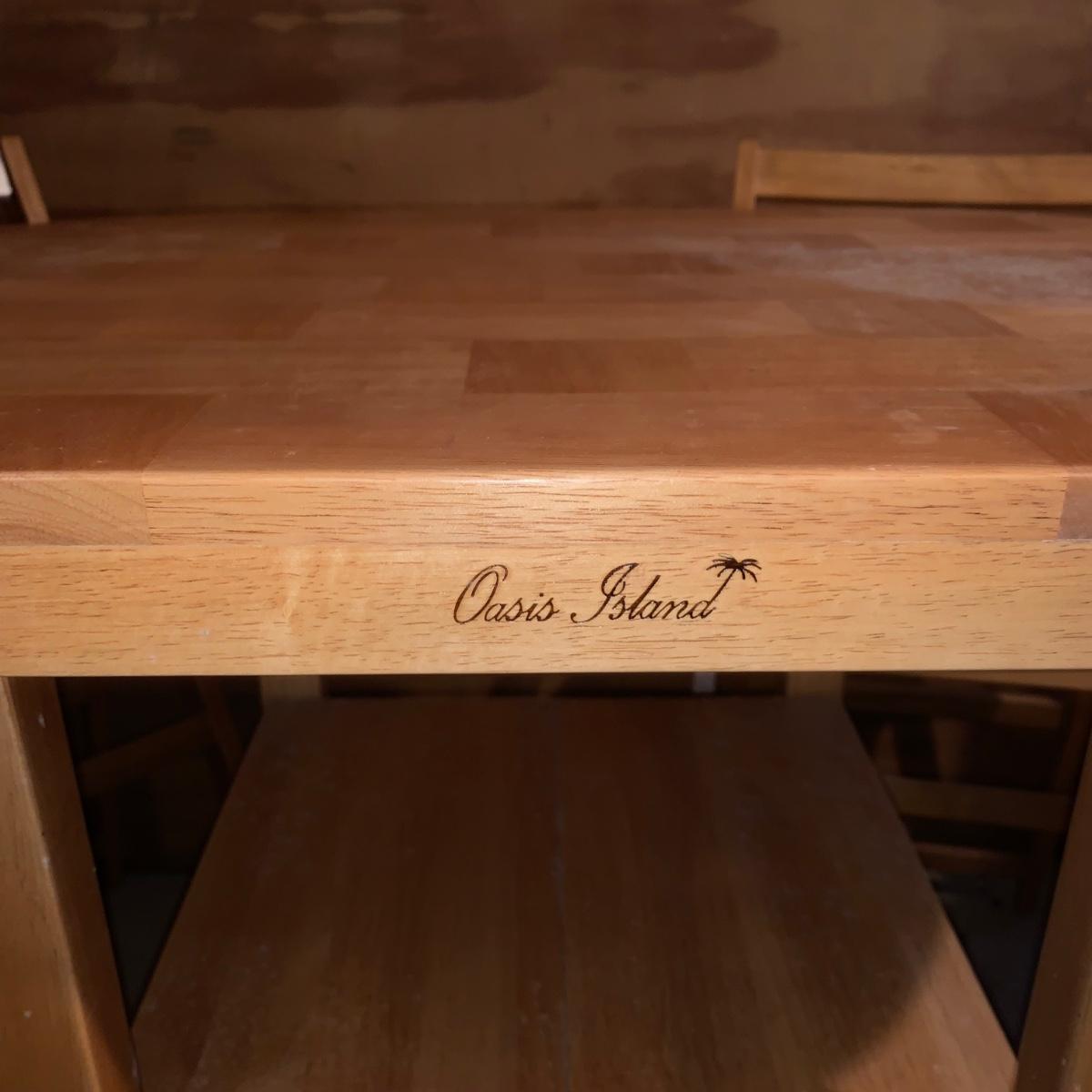 LOT 200R: Oasis Island Maple Folding Kitchen Island on Casters w/ Folding Chairs