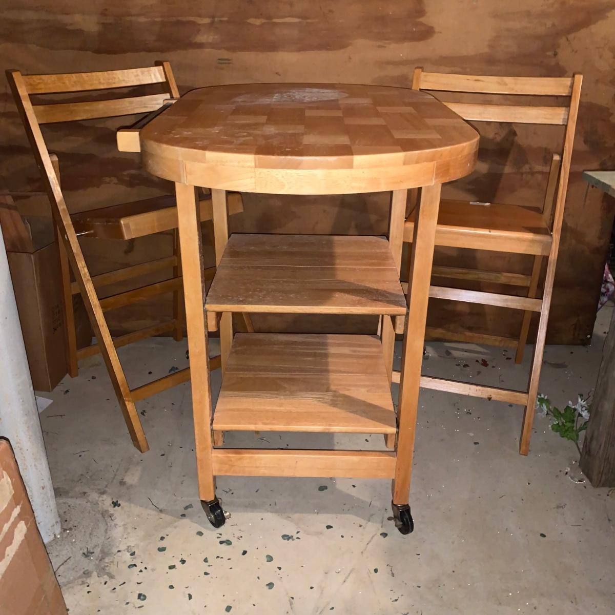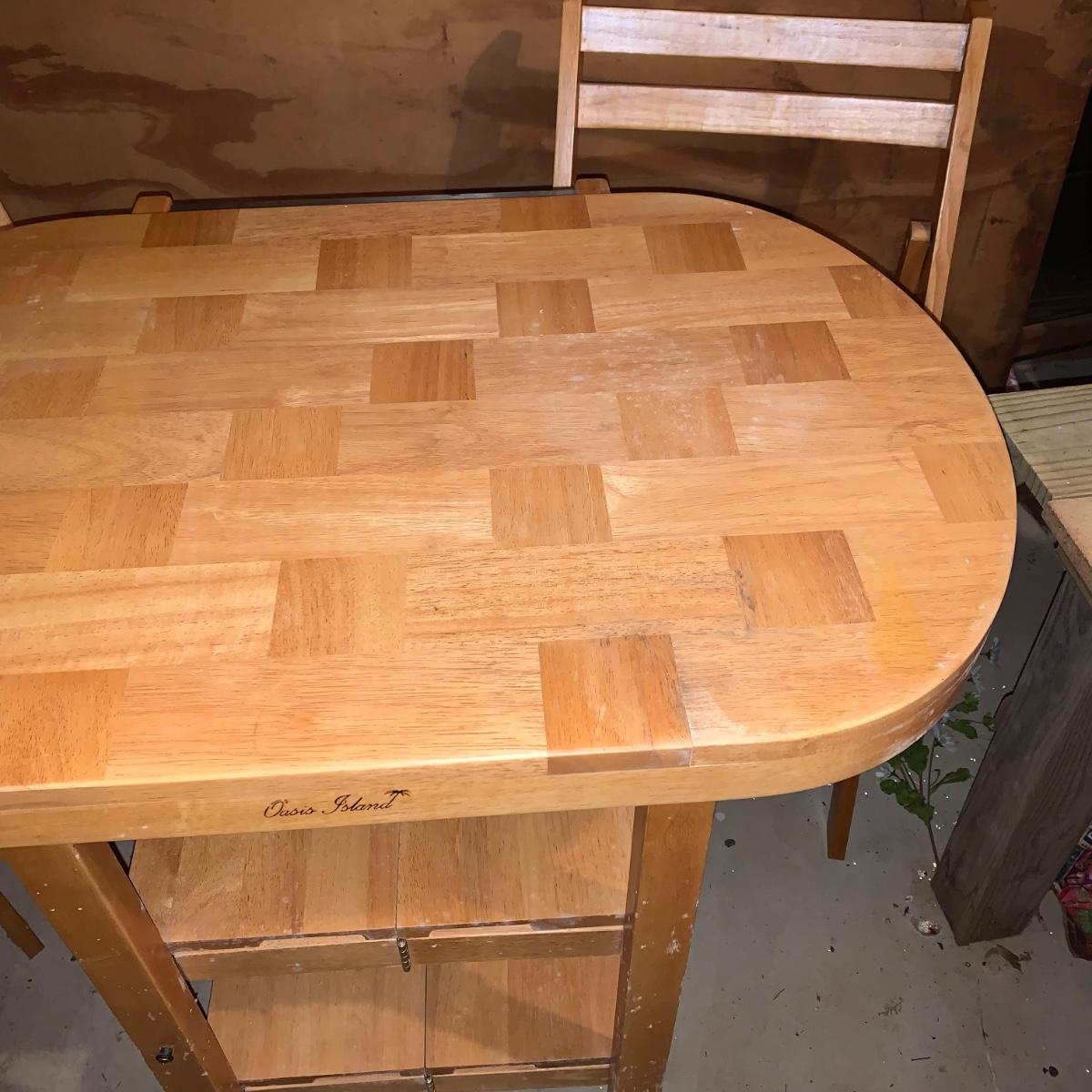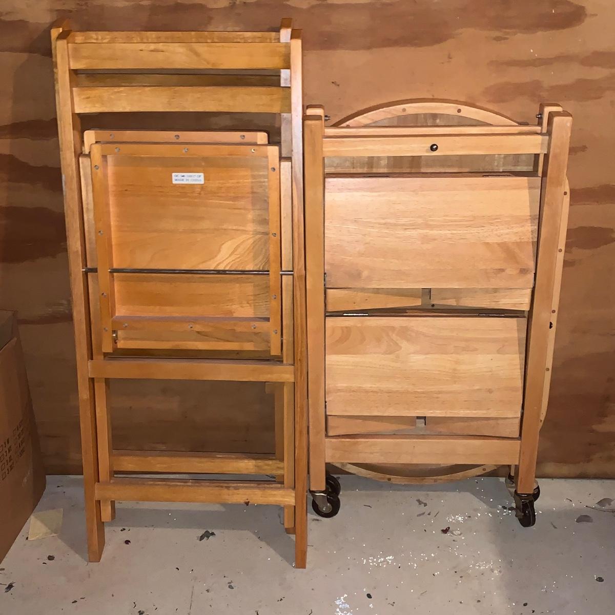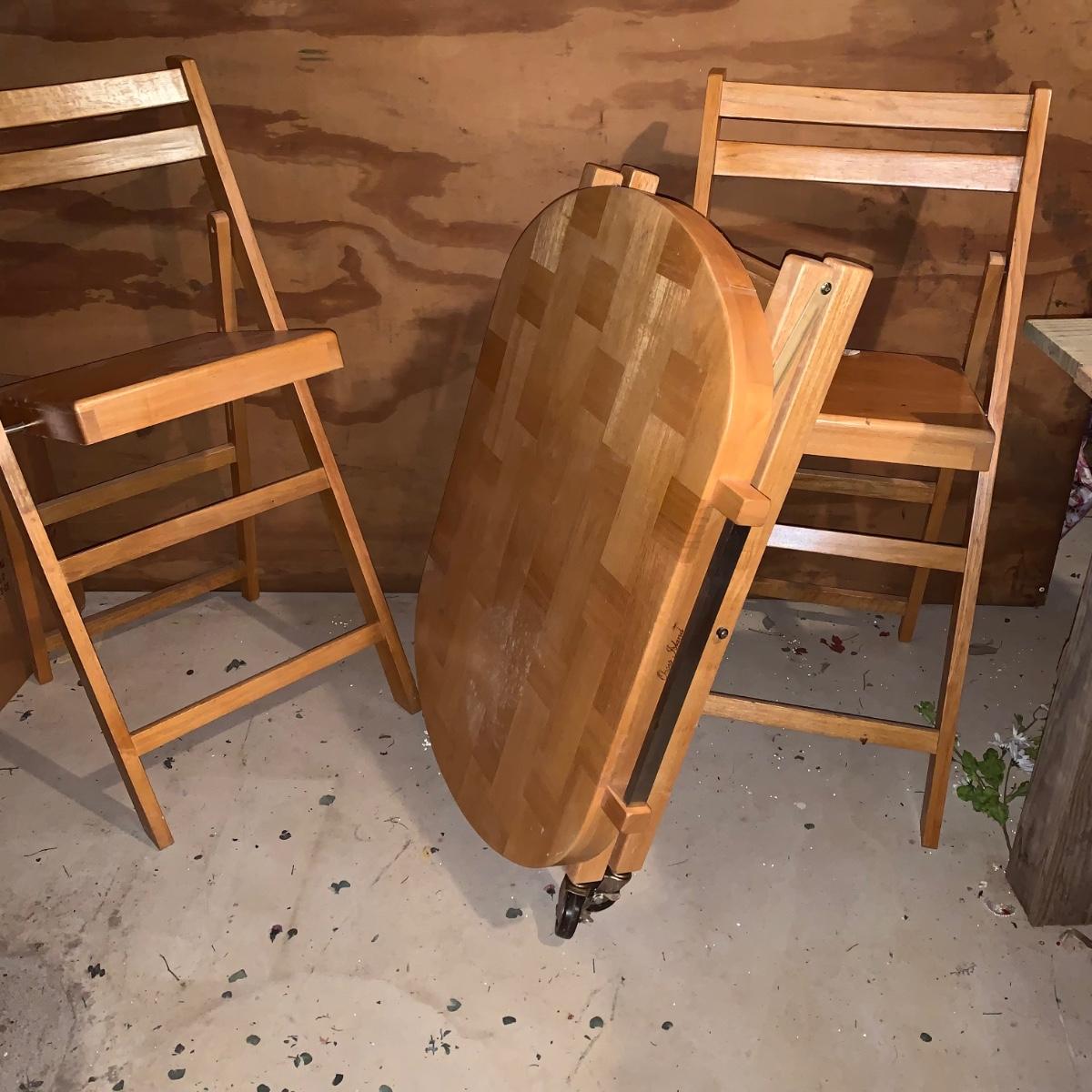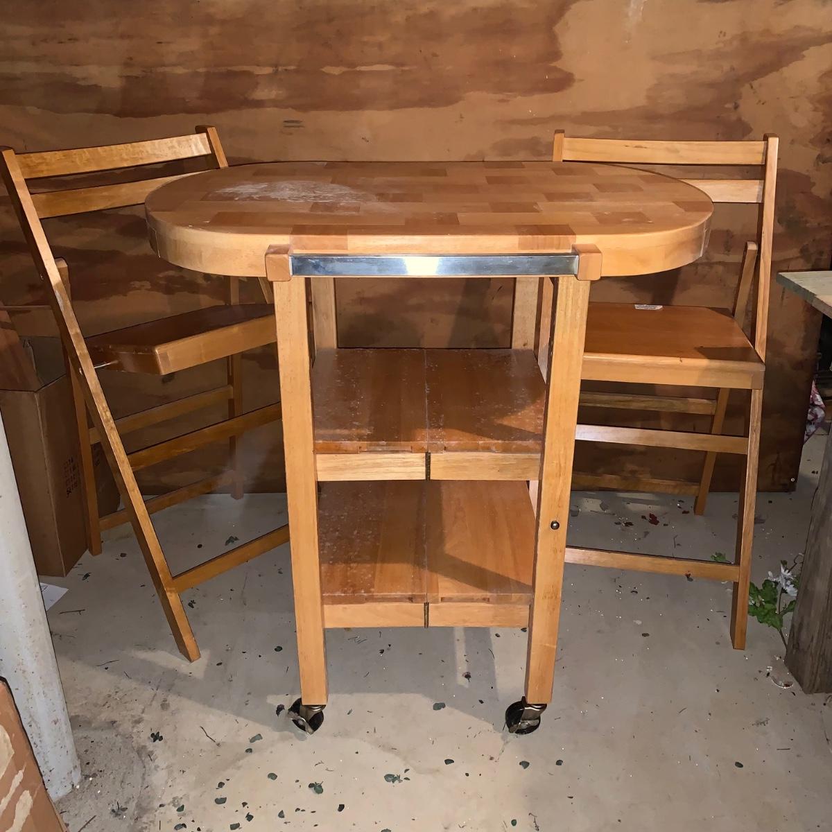 LOT 200R: Oasis Island Maple Folding Kitchen Island on Casters w/ Folding Chairs