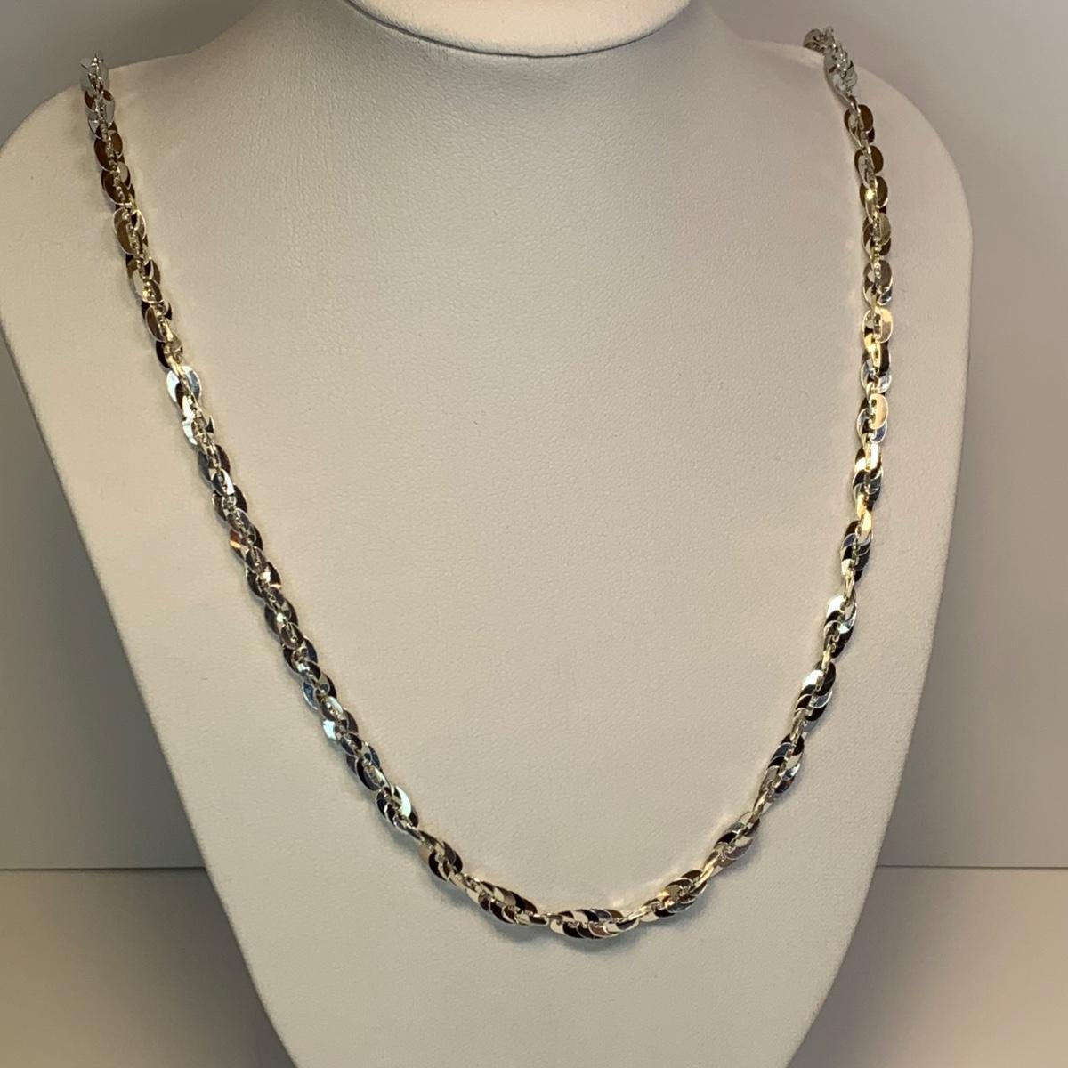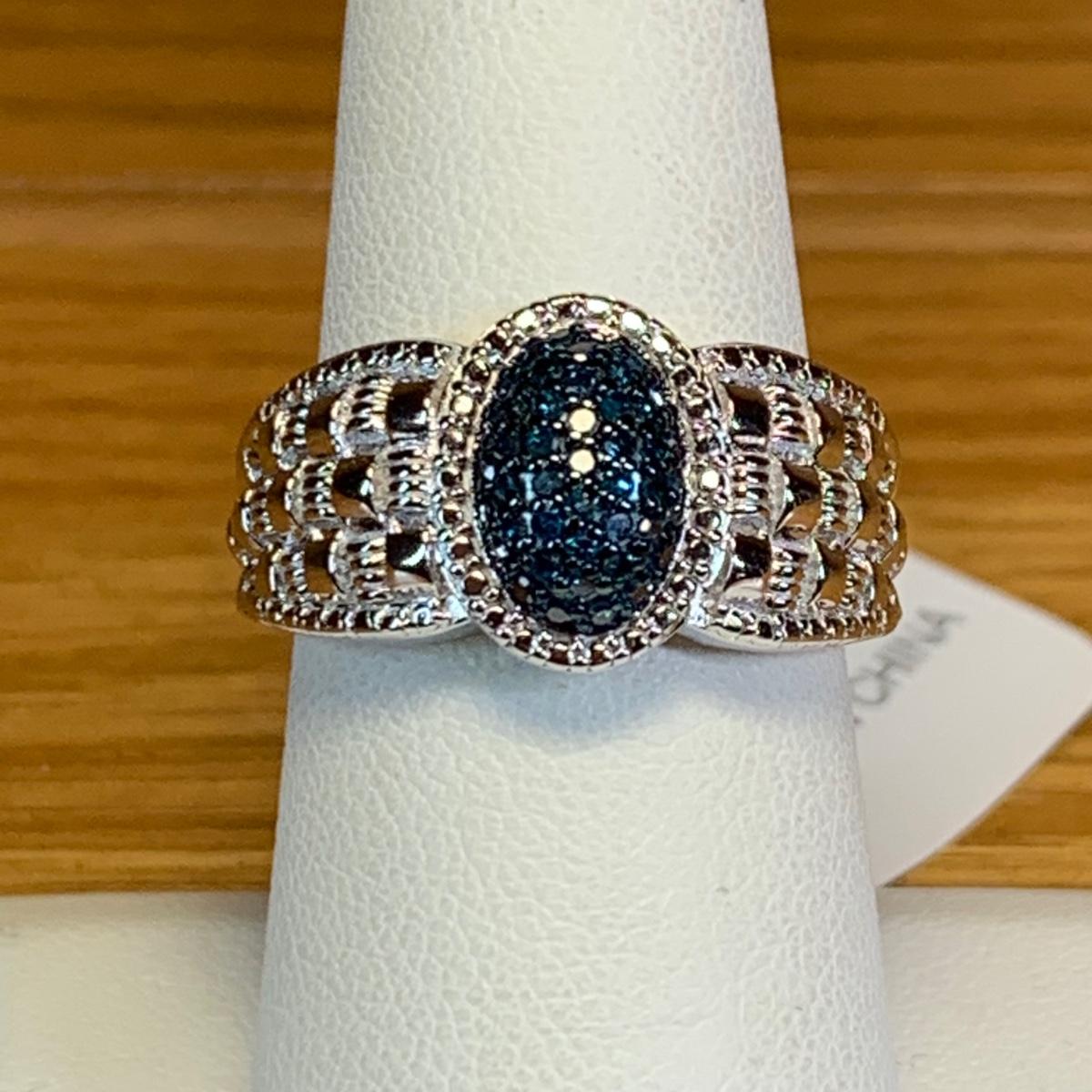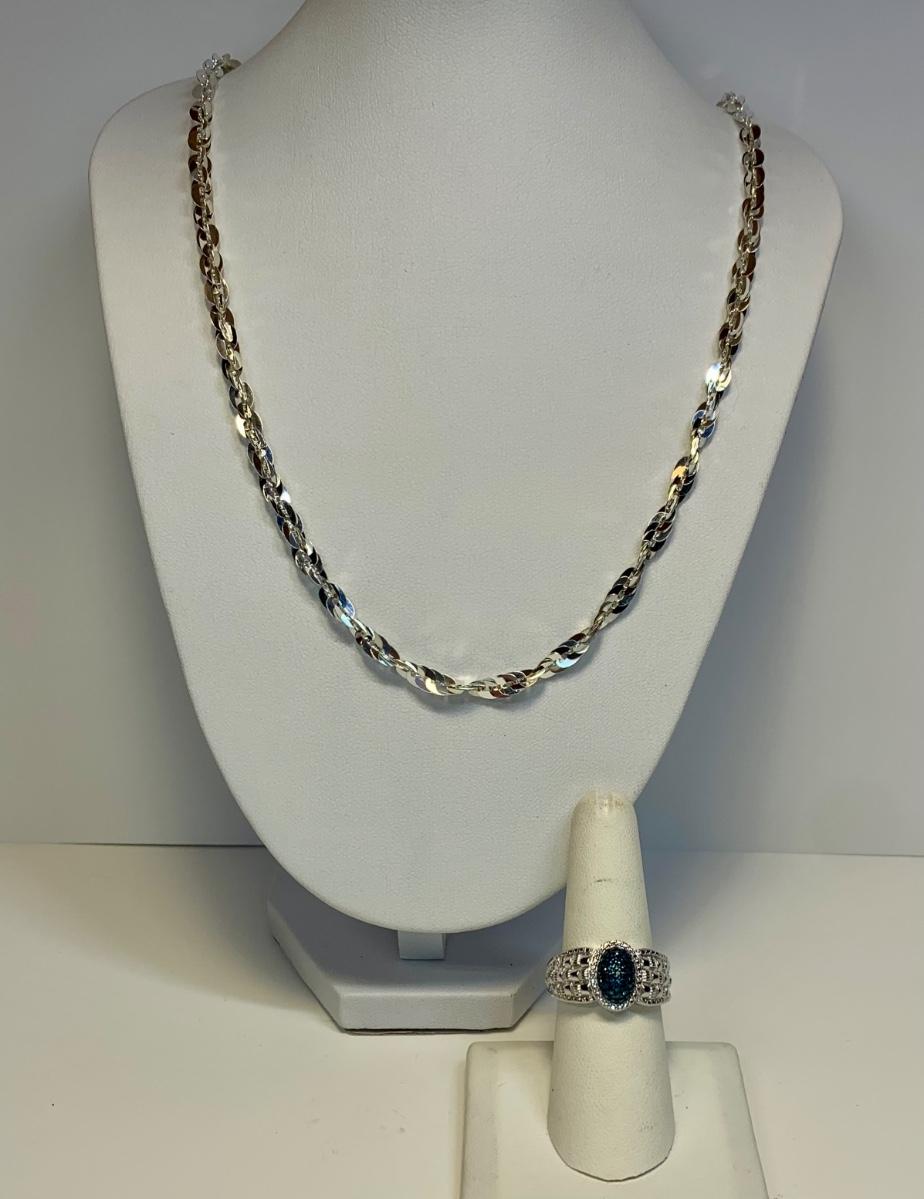 LOT 205R: JCM Sterling Silver Necklace, Italy 925 & Affinity Sterling Silver Blue Diamond .25CTW Weave, Sz7.5