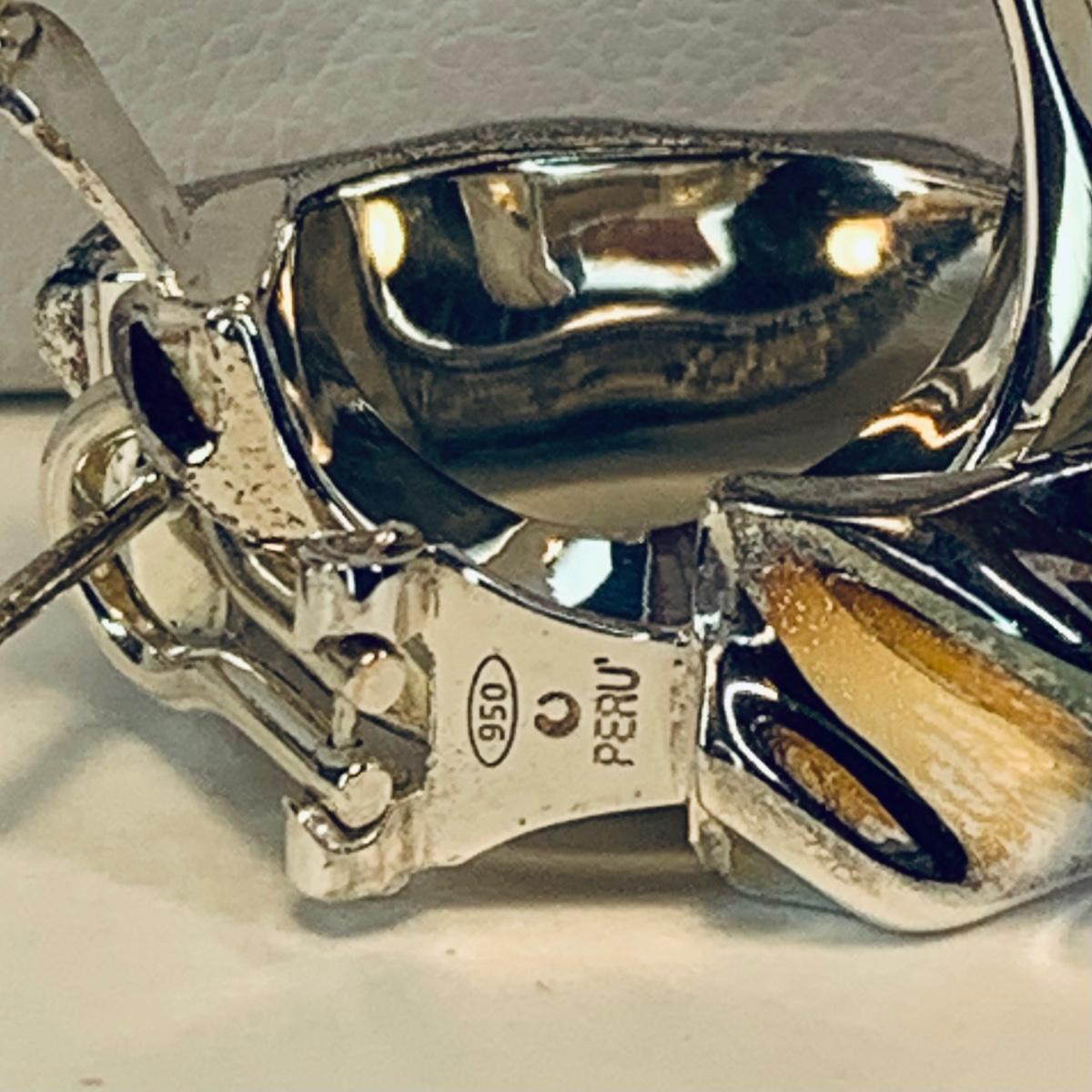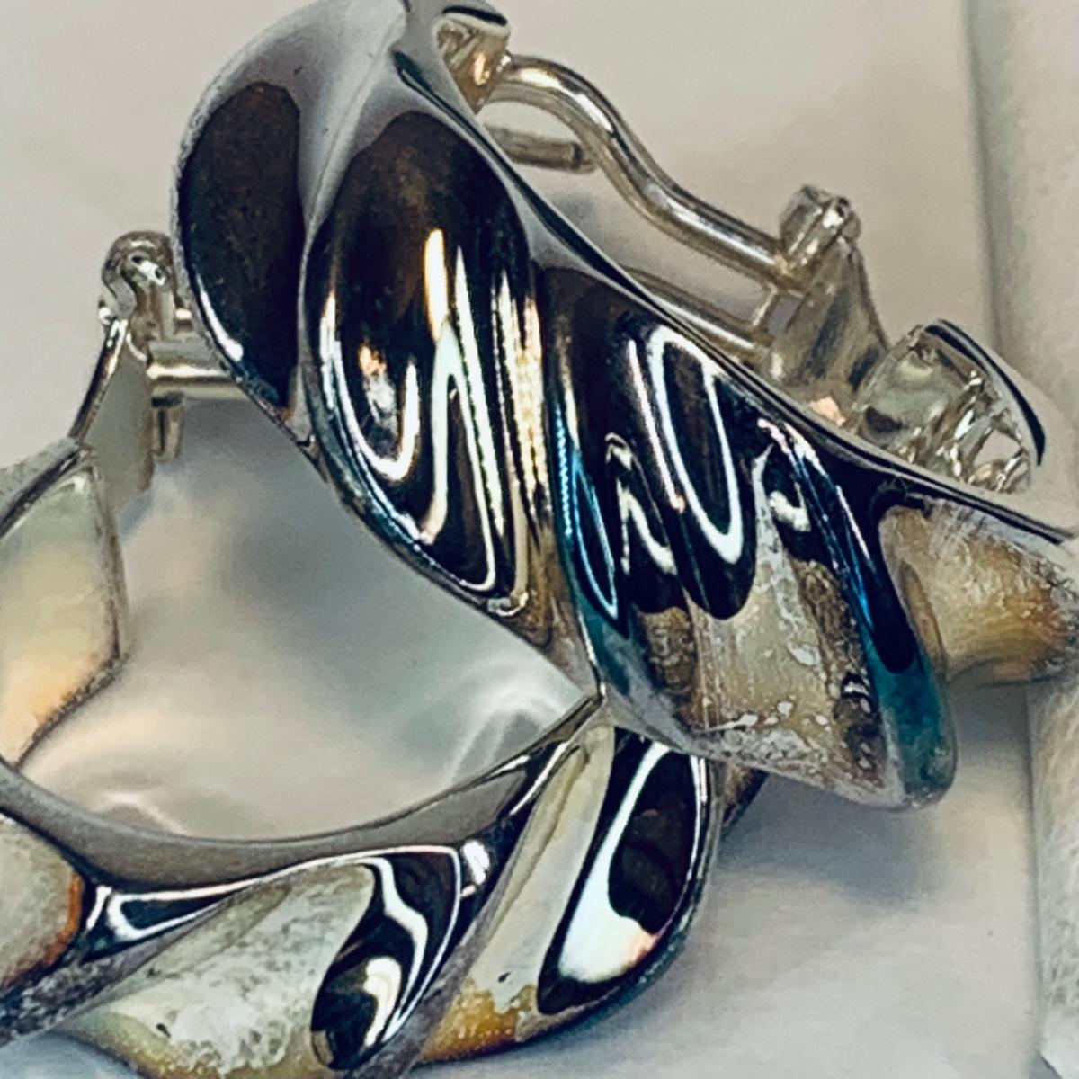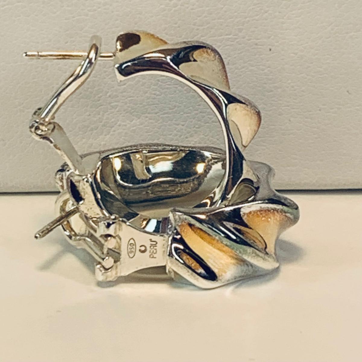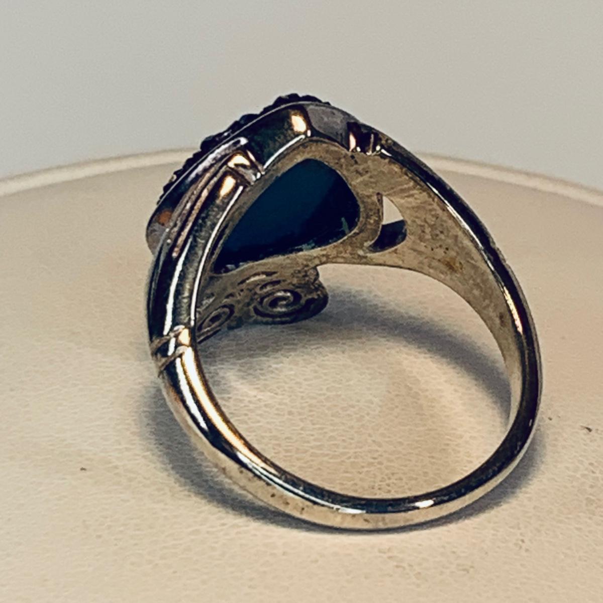 LOT 209R:Sterling Silver Drusy Blue Claddagh Ring Ireland, JCM Braided CZ & Sterling Silver Bracelet, Sterling Silver (925) Hoop Earrings, Peru