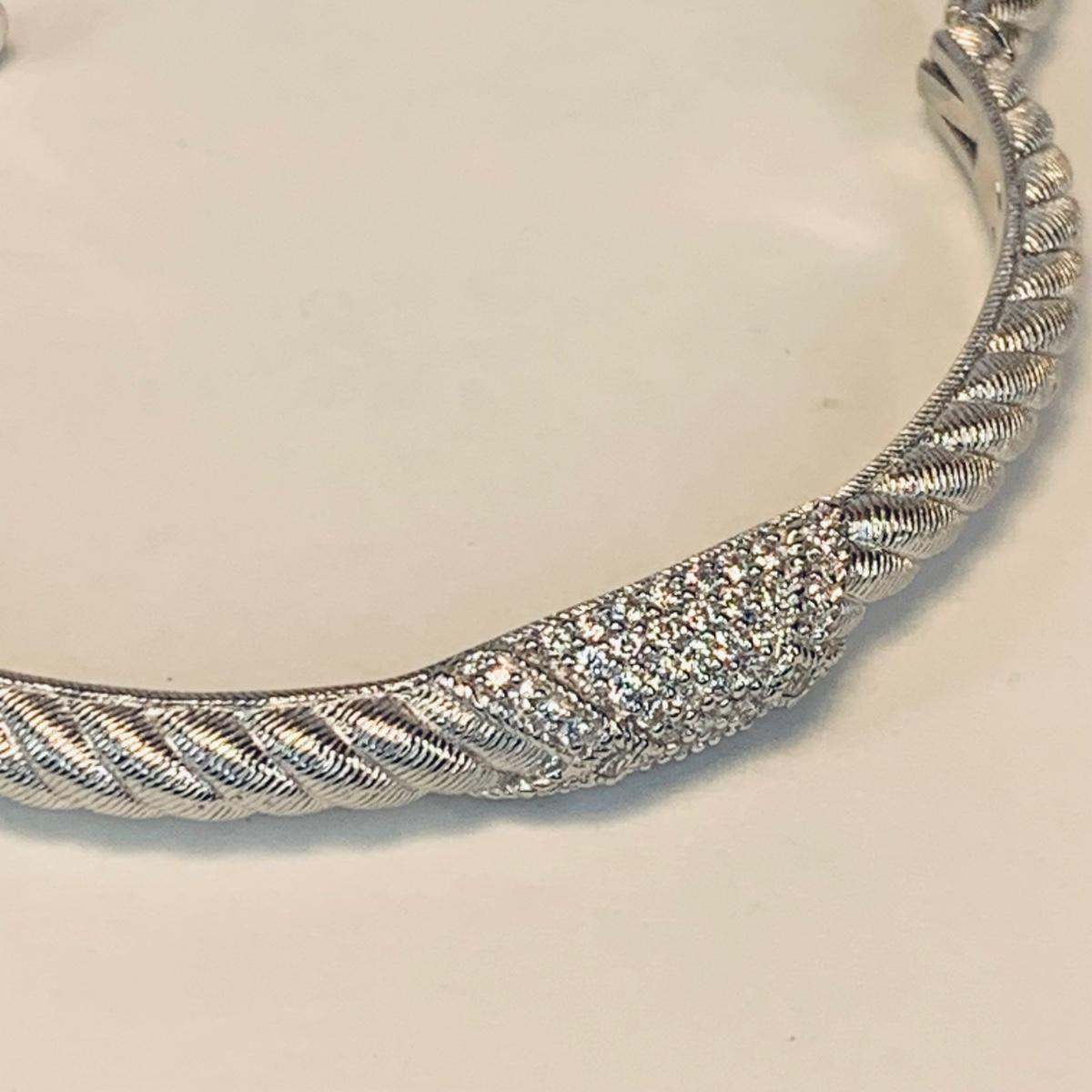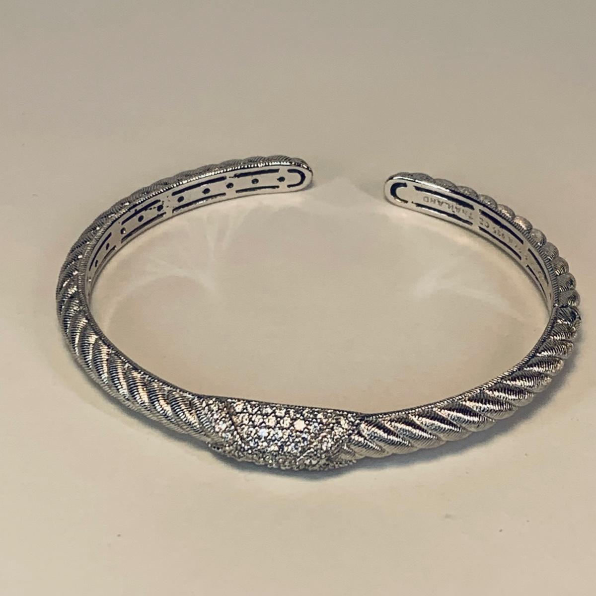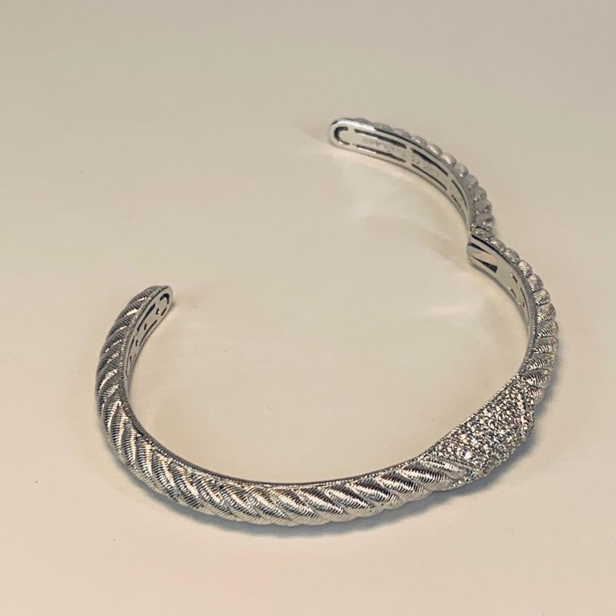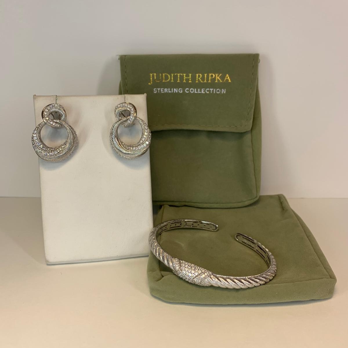 LOT 212R: Judith Ripka Sterling Silver & CZ Collection: Earrings & Hinged Cuff Bracelet