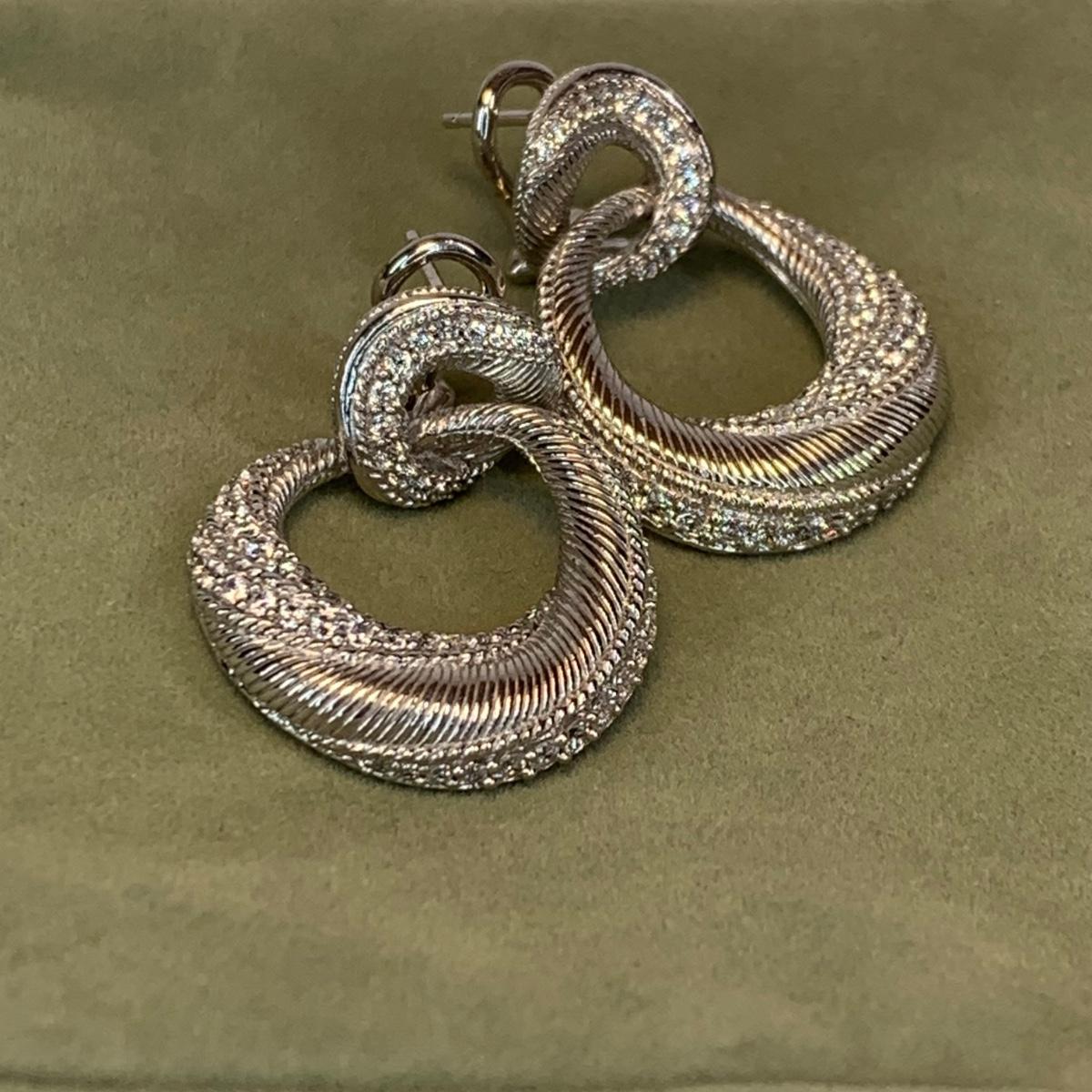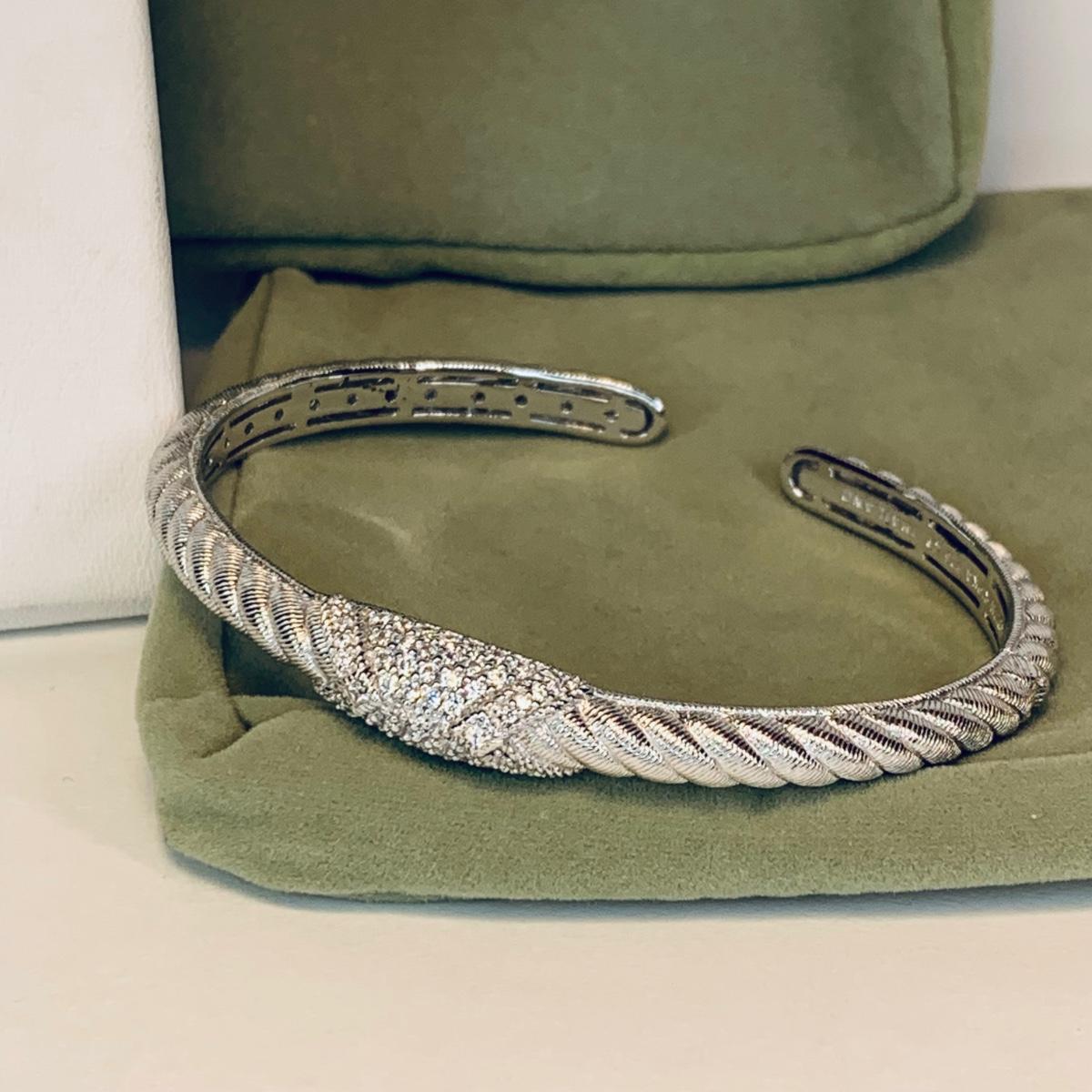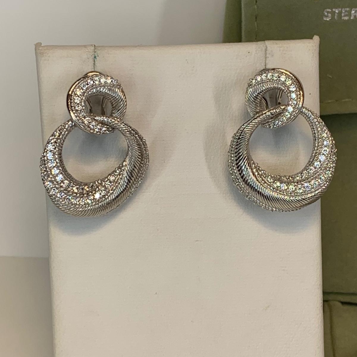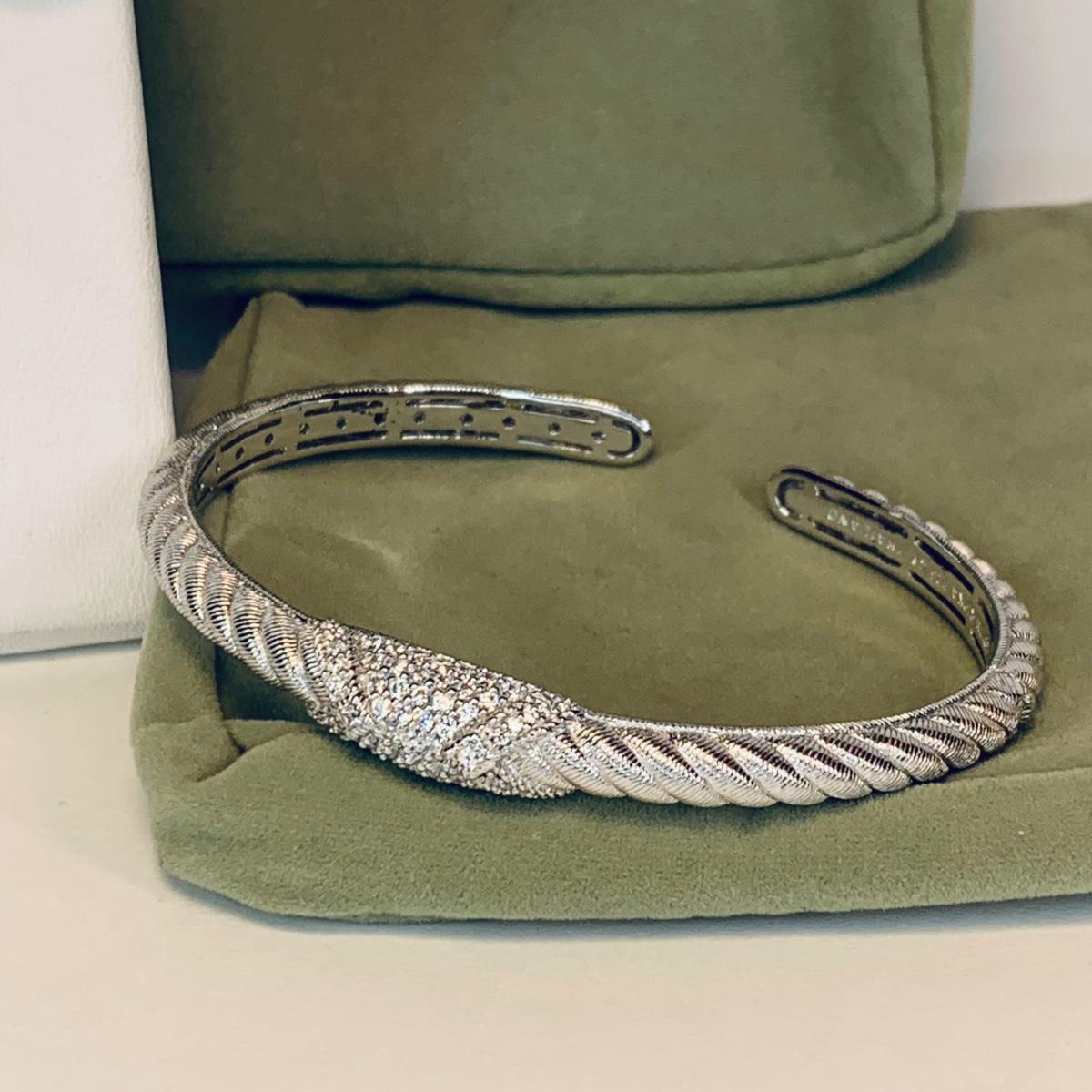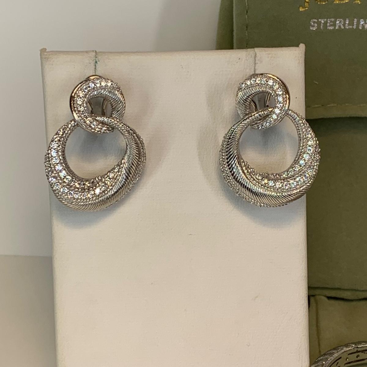 LOT 212R: Judith Ripka Sterling Silver & CZ Collection: Earrings & Hinged Cuff Bracelet