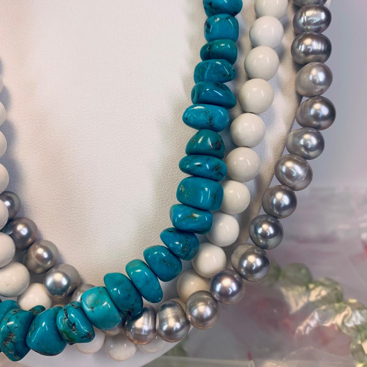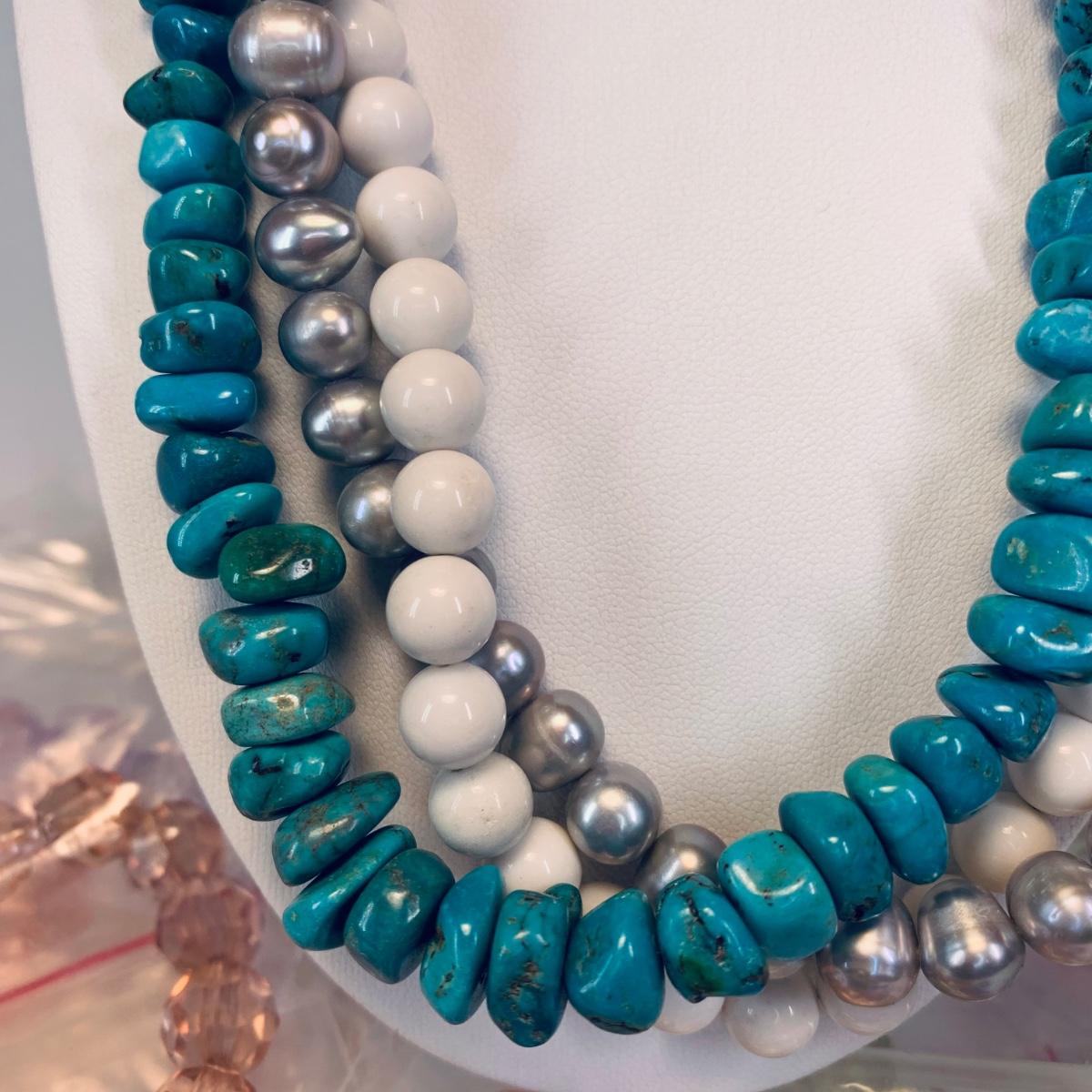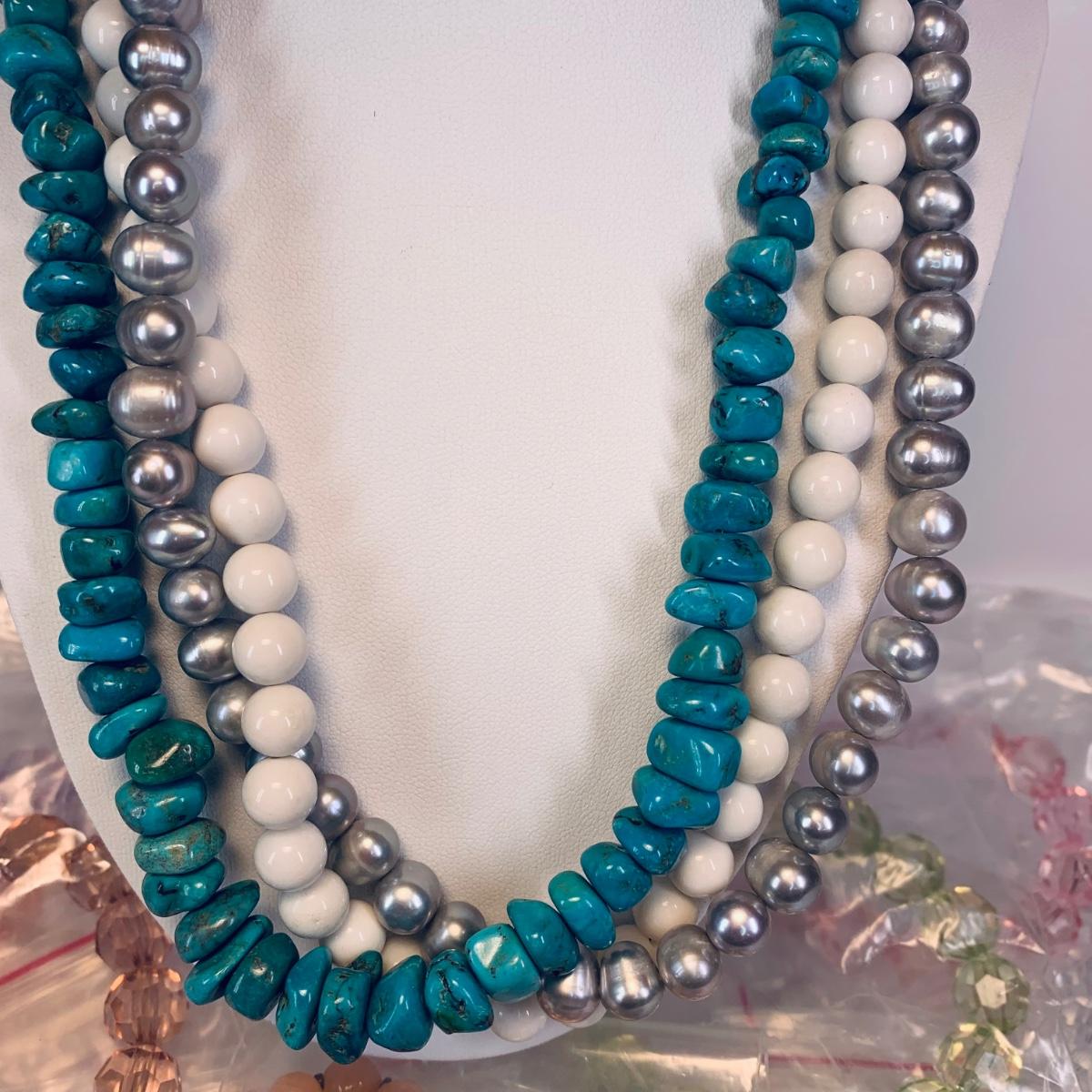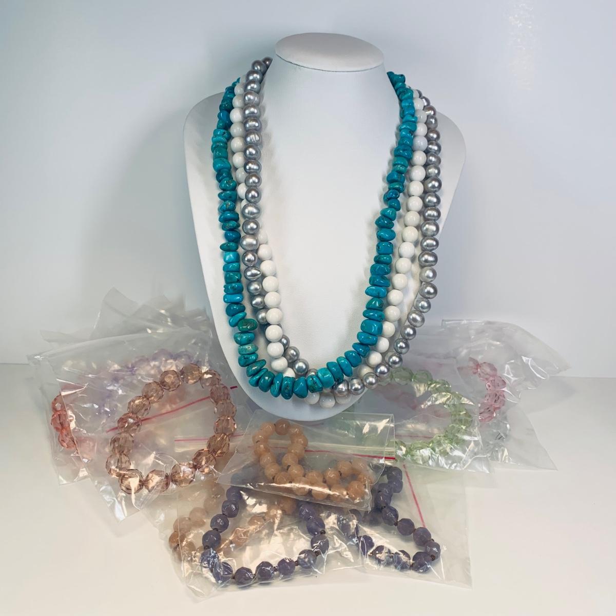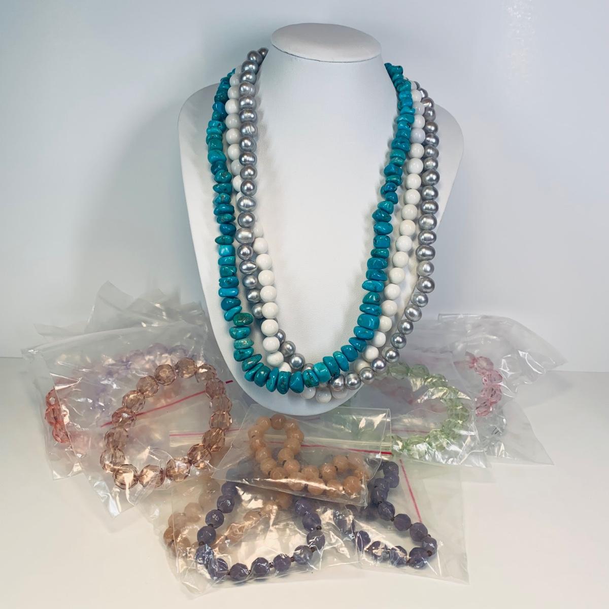 LOT 214R: QVC Multi Strand Turquoise & Beaded Necklace w/925 Clasp, Beaded Natural Stone Stretch Bracelet