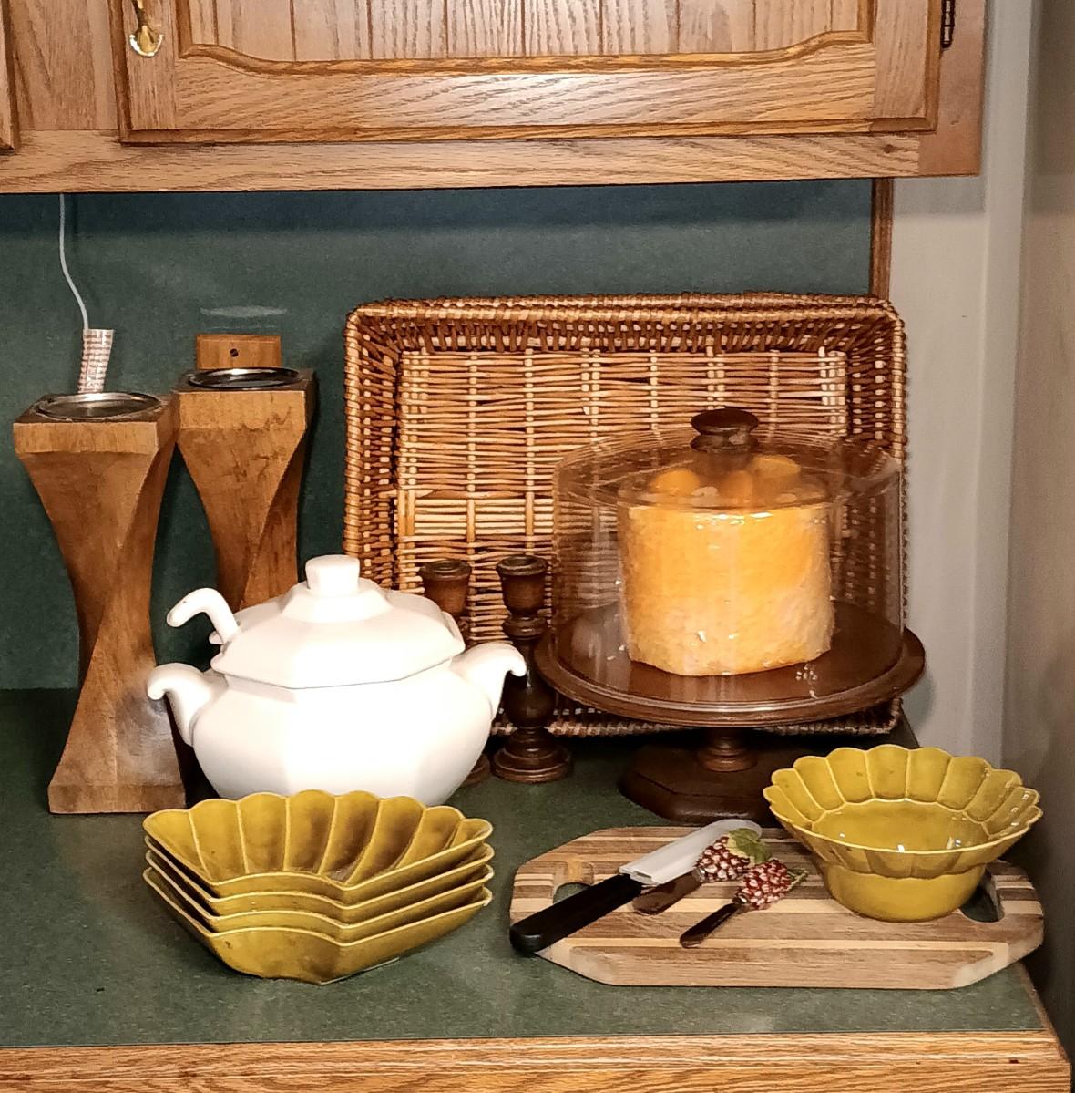LOT 222K: Kitchen Collection- Serving Dishes, Baskets, Candle Holders & More