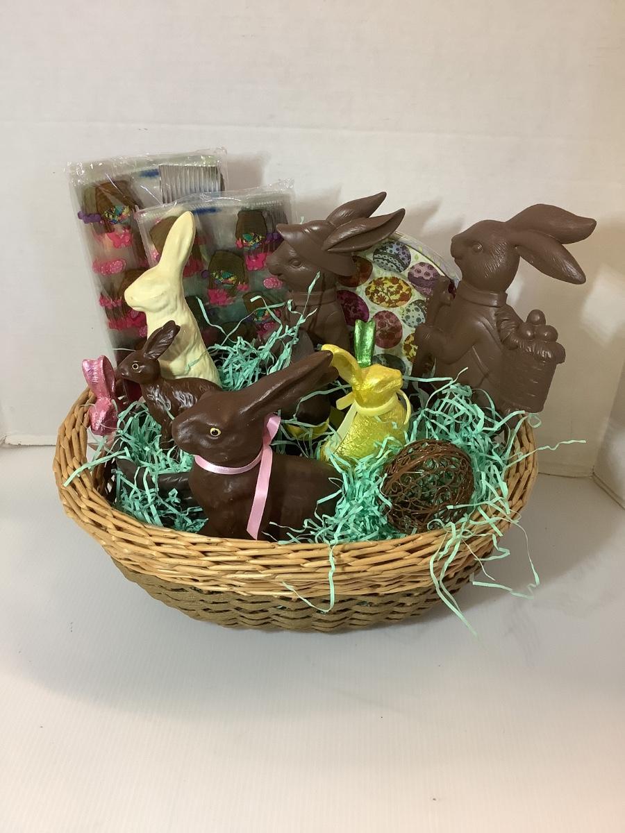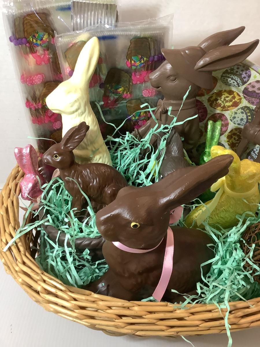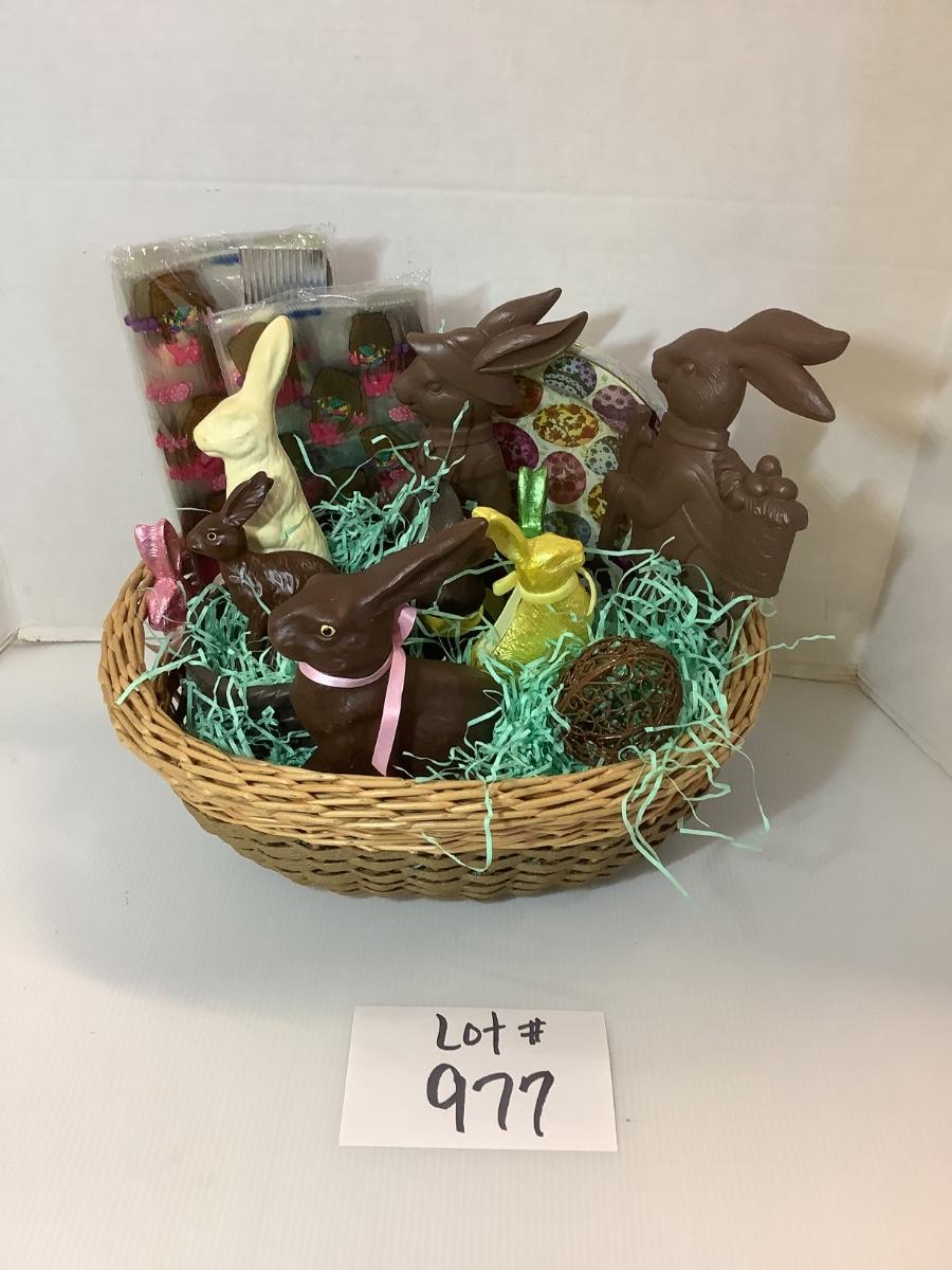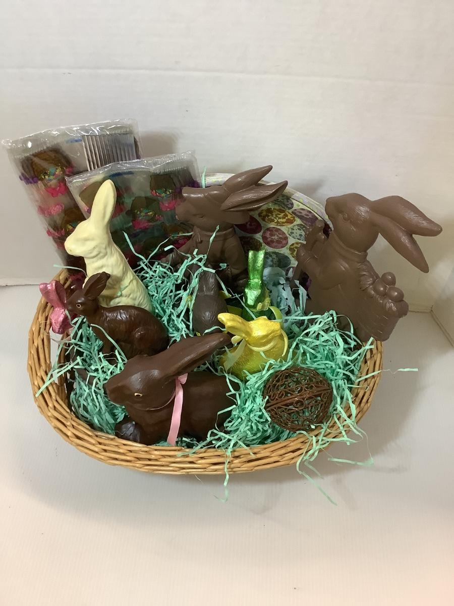 Lot 977. Basket Full of Faux Chocolate Easter Bunnies