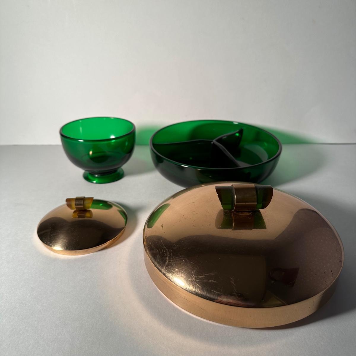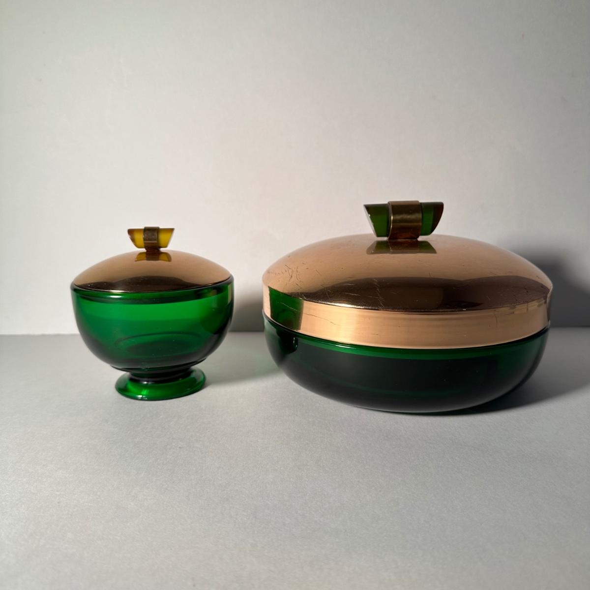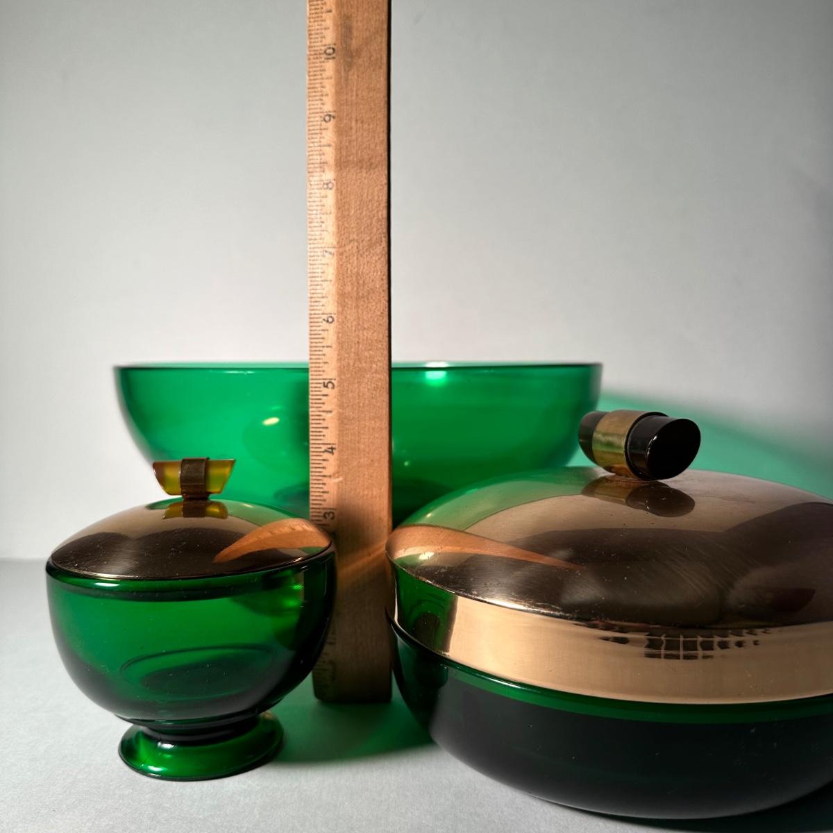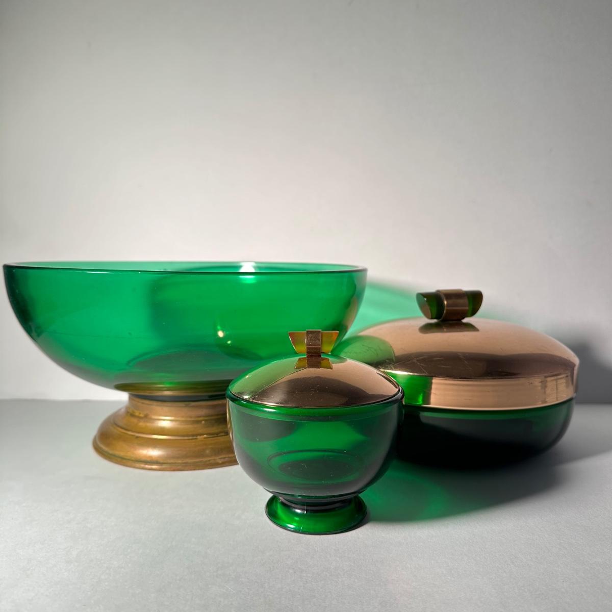 LOT 7F: Art Deco Emerald Glo Green Glass Console Bowl, Candy Dish & More