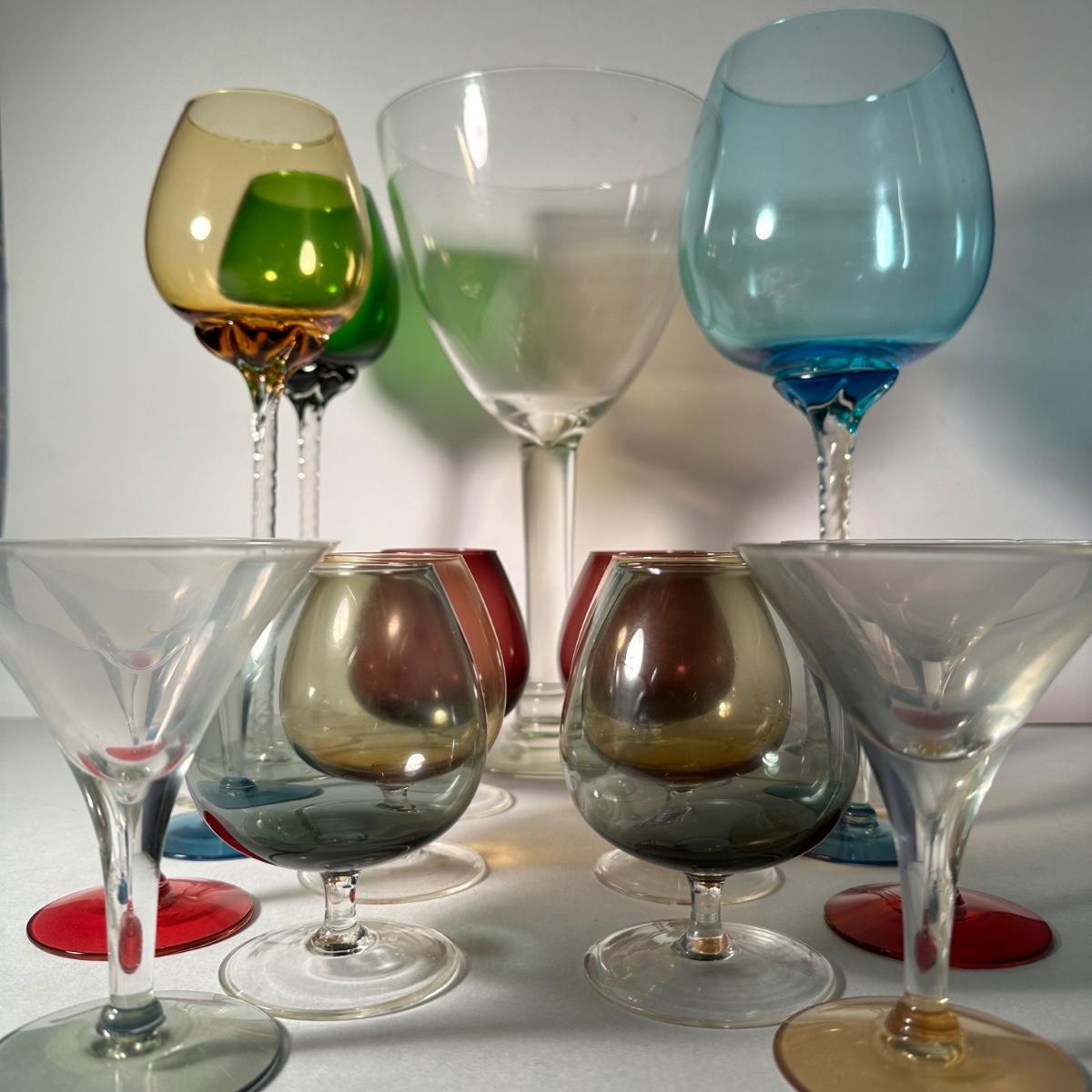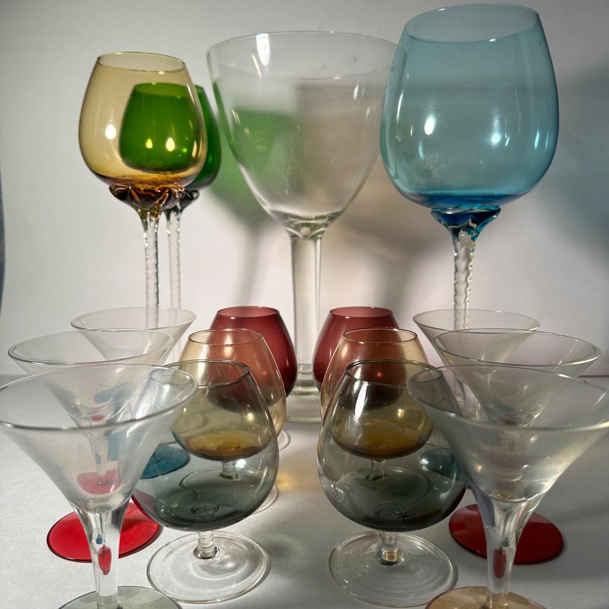 LOT 10F: Multi-Colored Wine & Martini Glasses