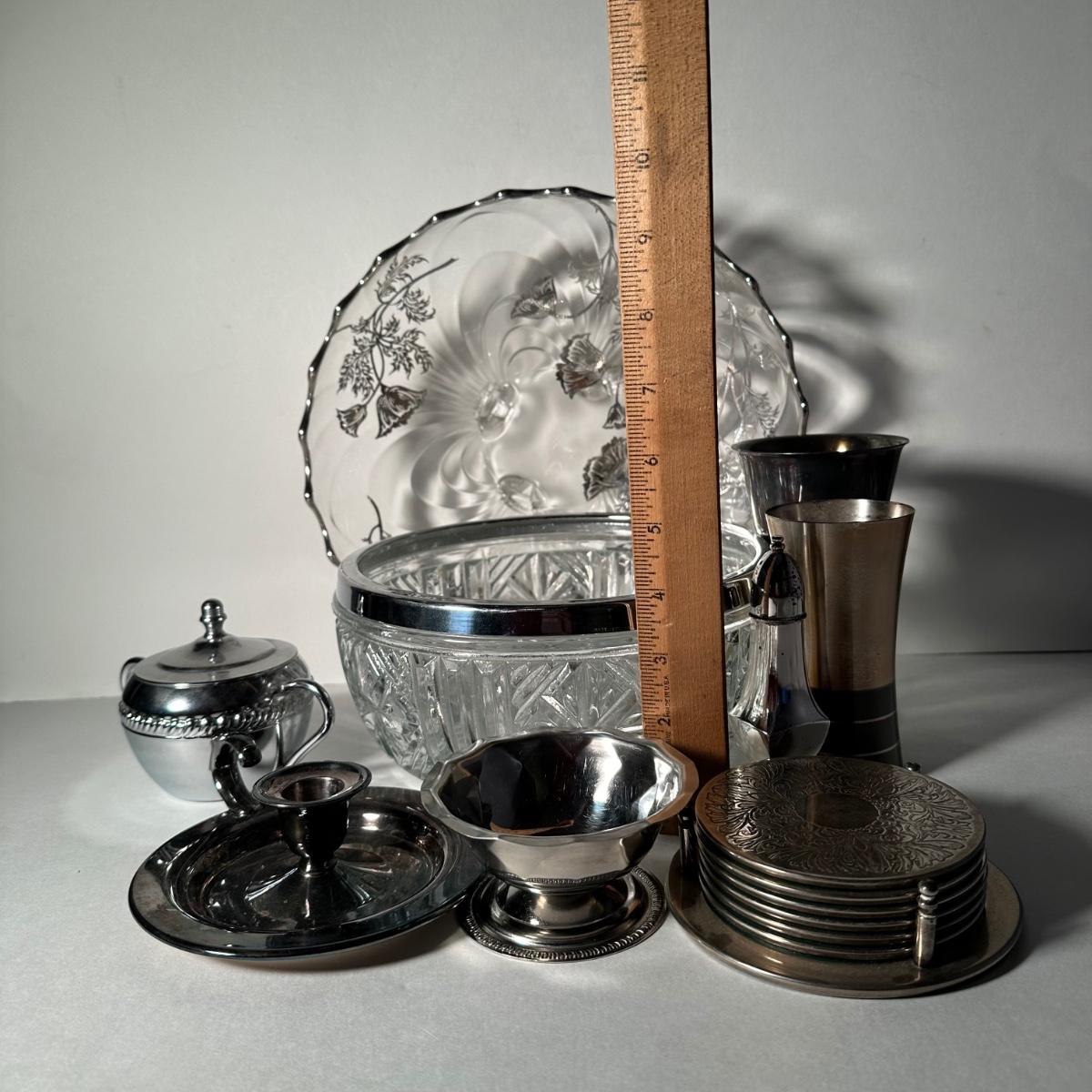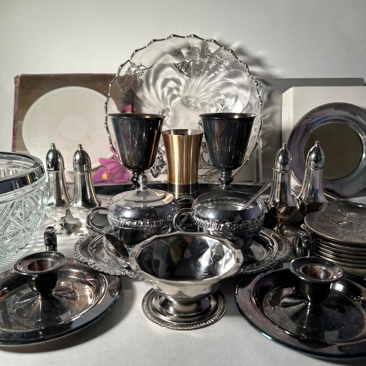 LOT 14F: Vintage Silver Plated Collection - Serving Trays, Shakers, Bowls, Coasters & More