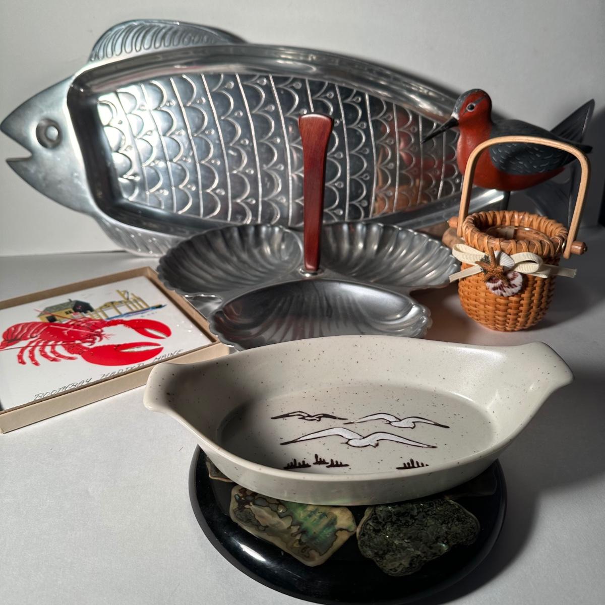 LOT 17F: Beach Themed Collection of Serving Trays, Candle Holder & More