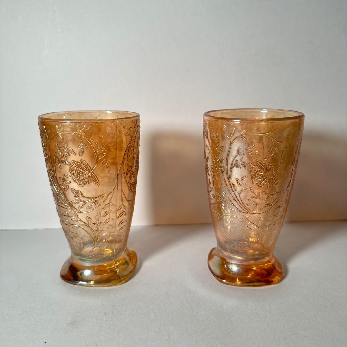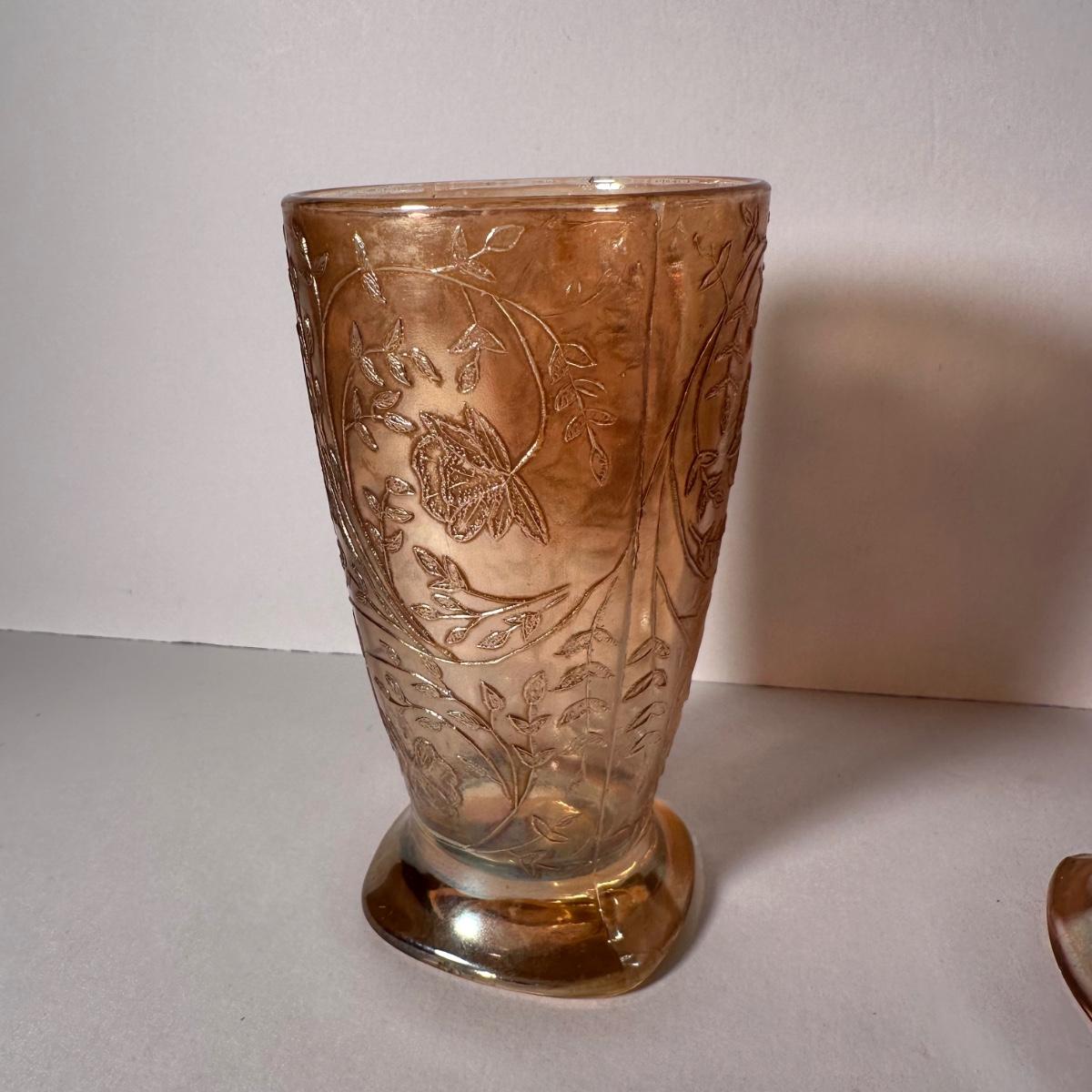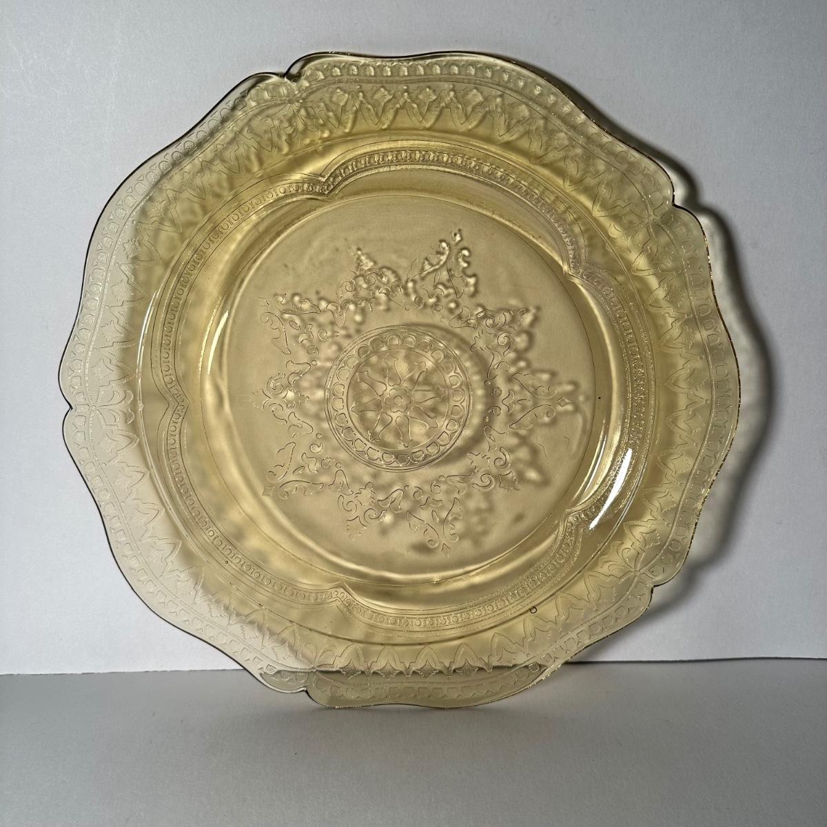 LOT 19F: Vintage Colored Depression Glass Collection - Salad Plates, Floral Glasses & More
