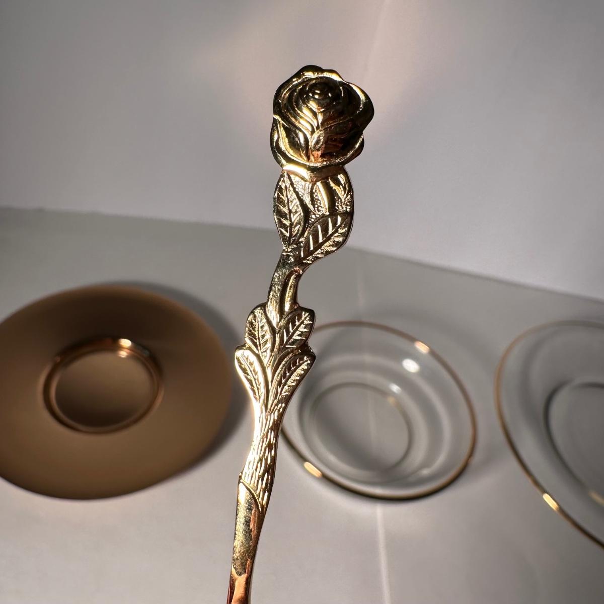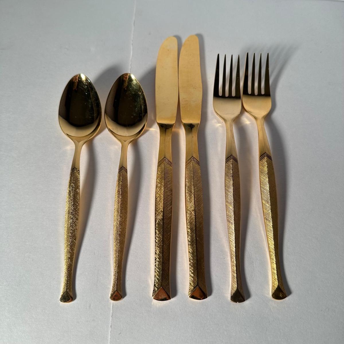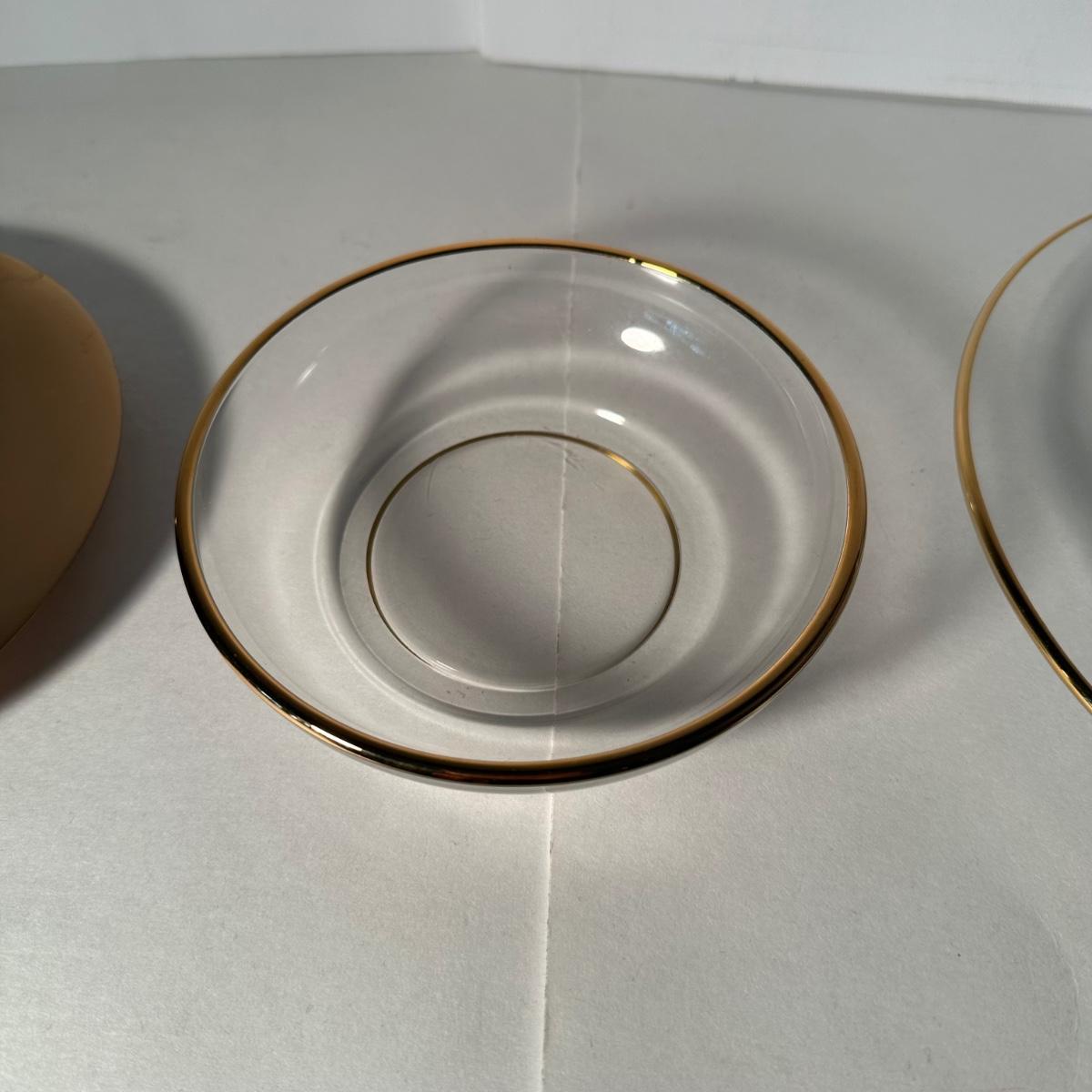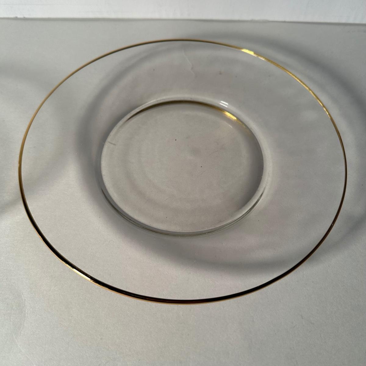 LOT 35L: Gold Rimed Crystal 3 Tier Serving Tray w/ Gold Leaf Champagne Glass, Vase, Silverware & More