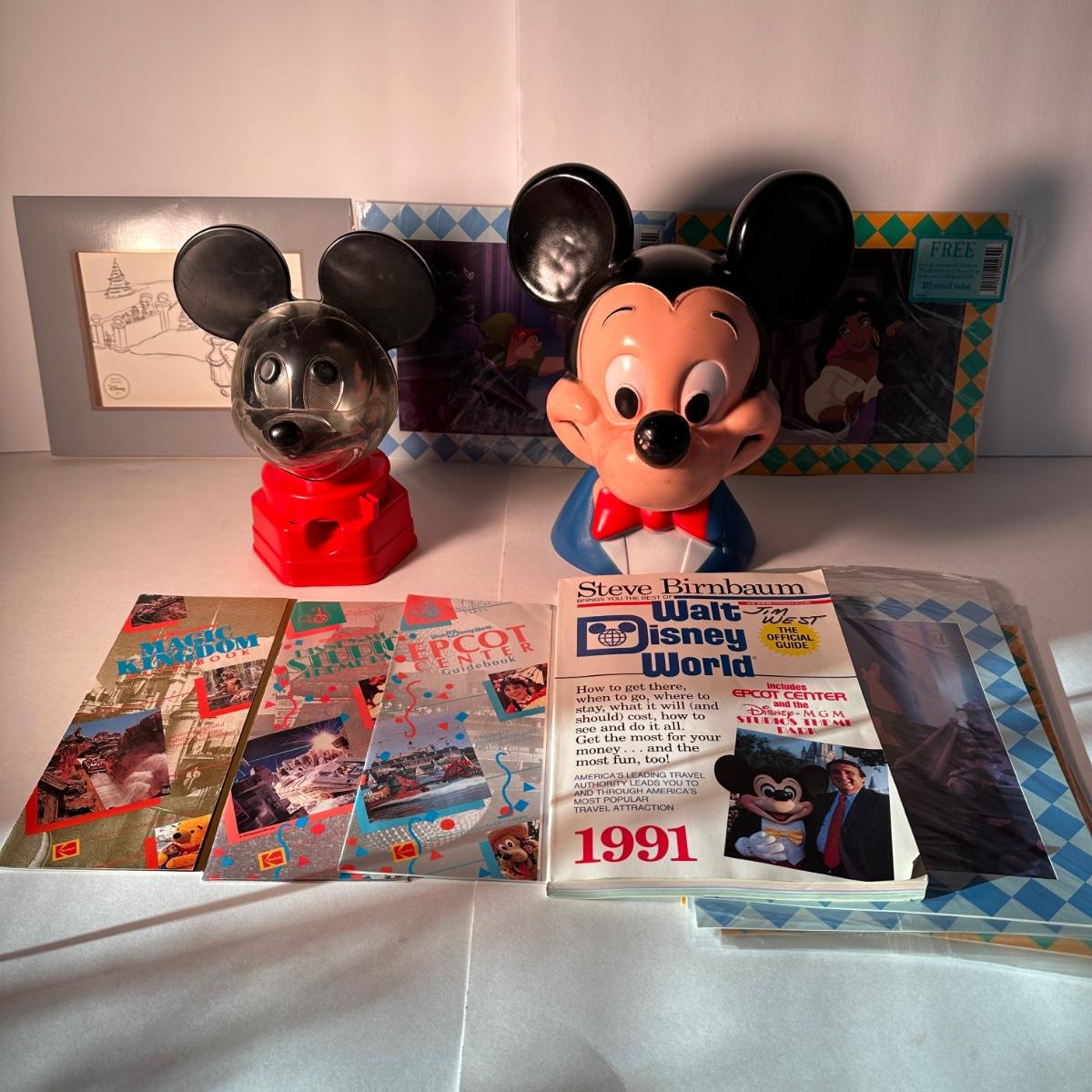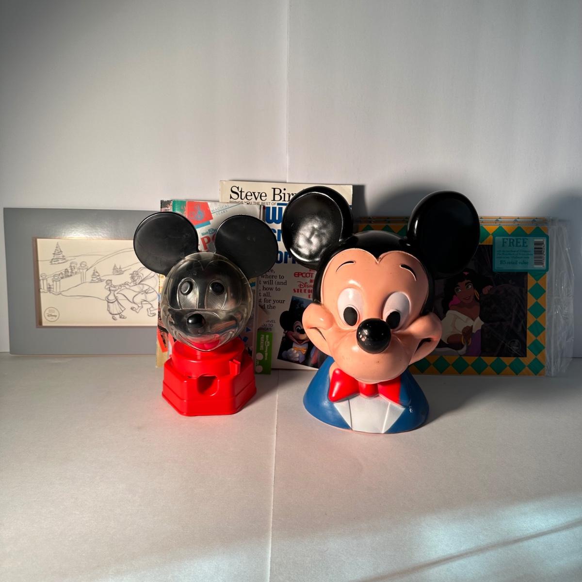 LOT 38F: Vintage Disney Collection- 1969 Hasbro Gumball Machine, Coin Bank, Guide Books & More