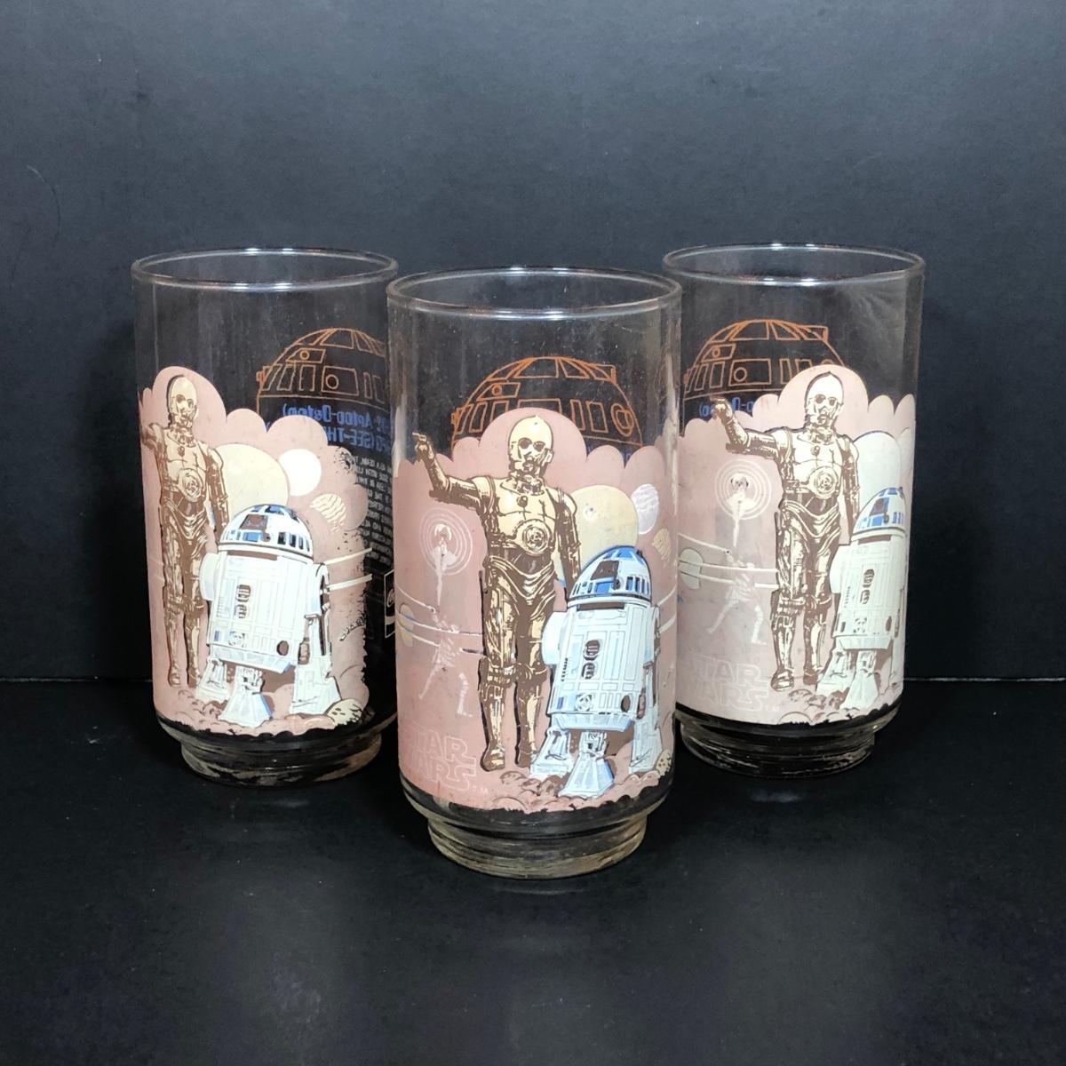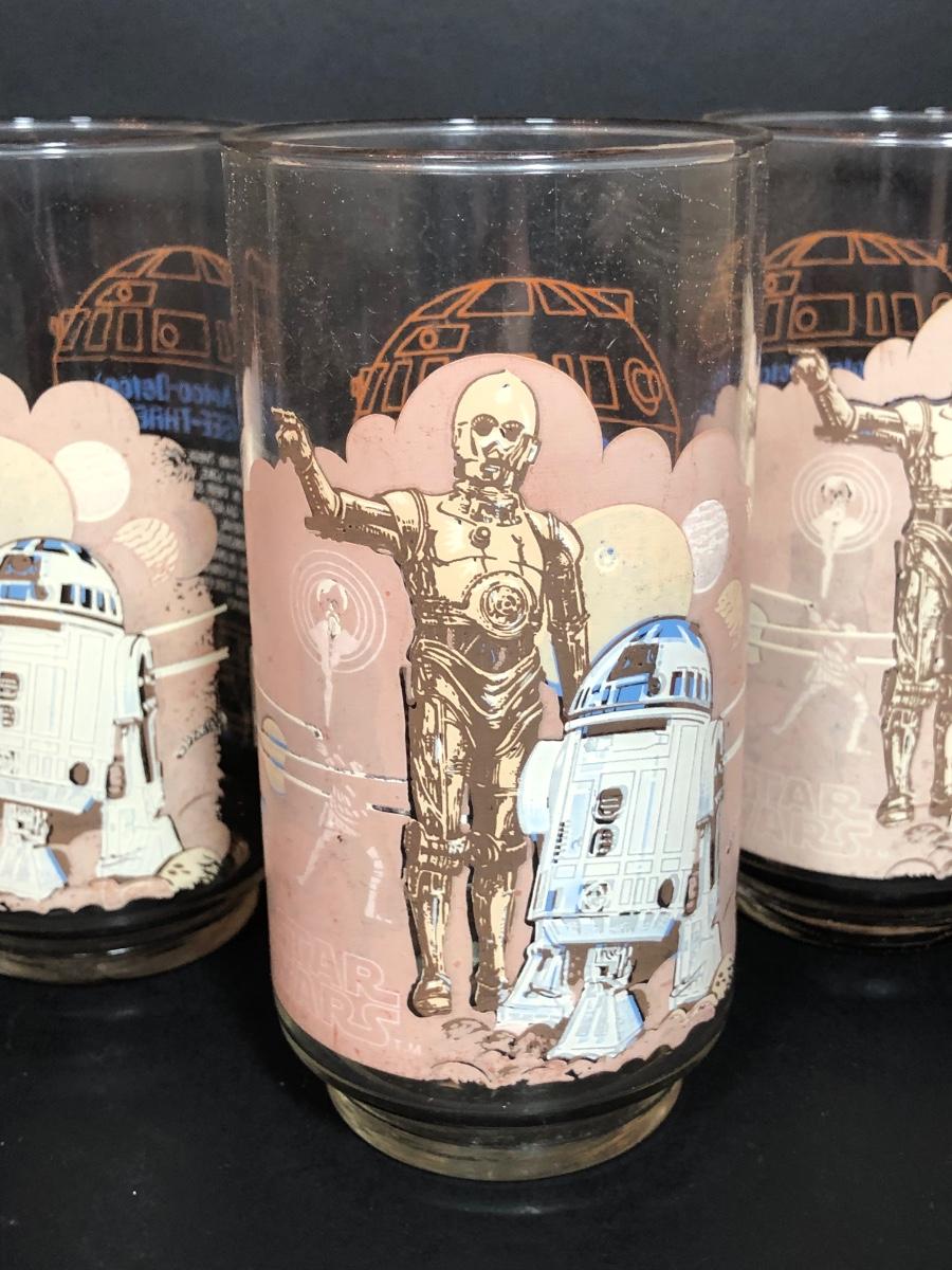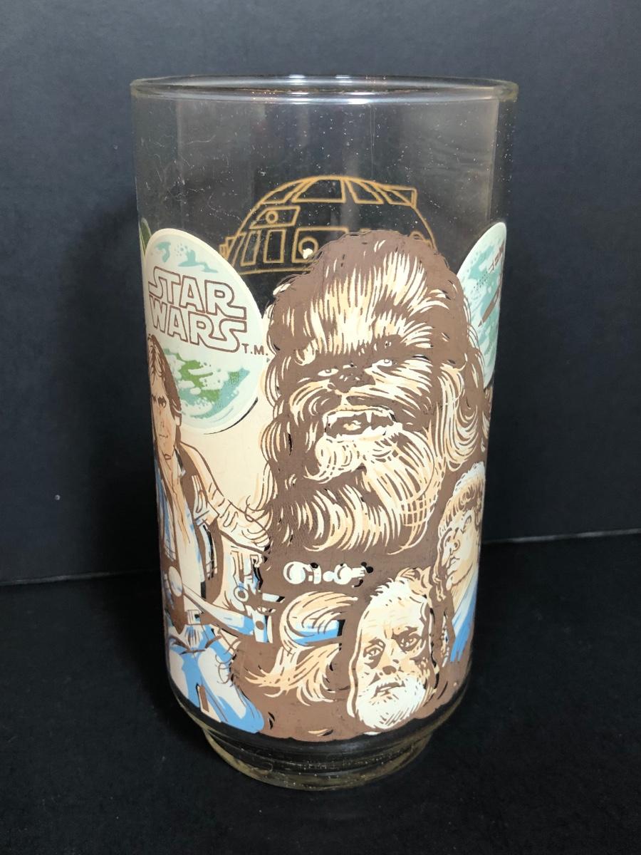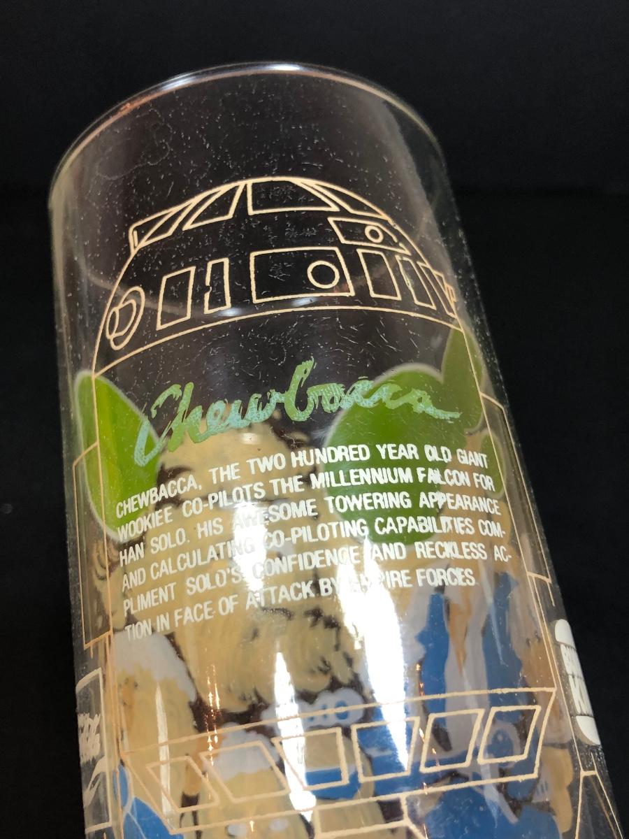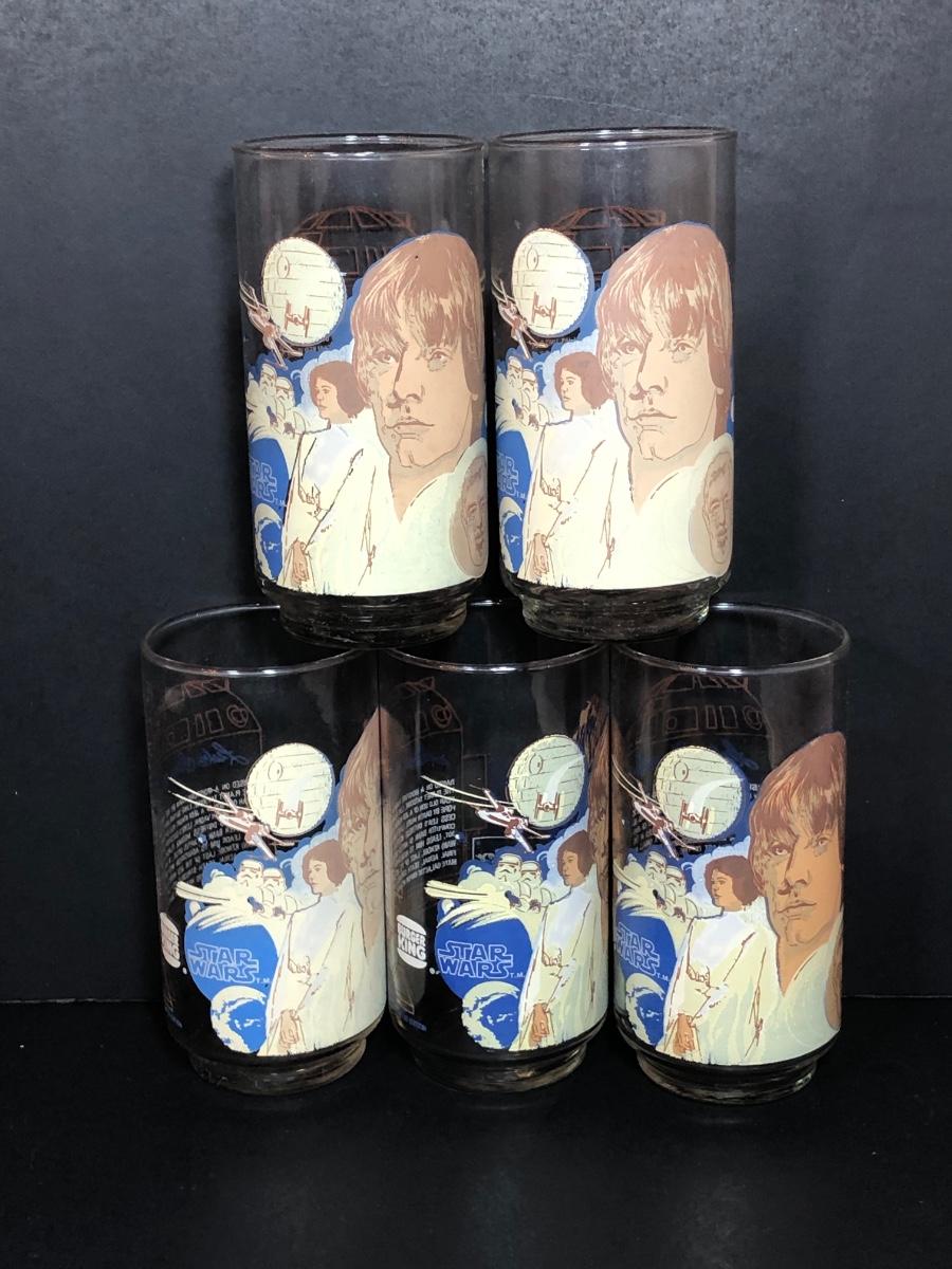 Glasses included: 1977 Luke Skywalker (5), 1977 R2-D2 & C3PO (3), 1977 Darth Vader (1), 1977 Chewbacca (3) & 1980 Empire Strikes Back Darth Vader.