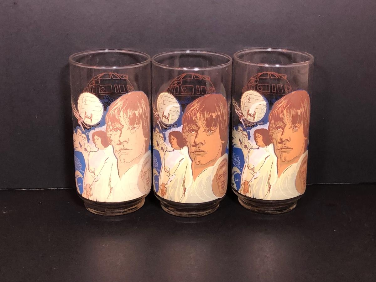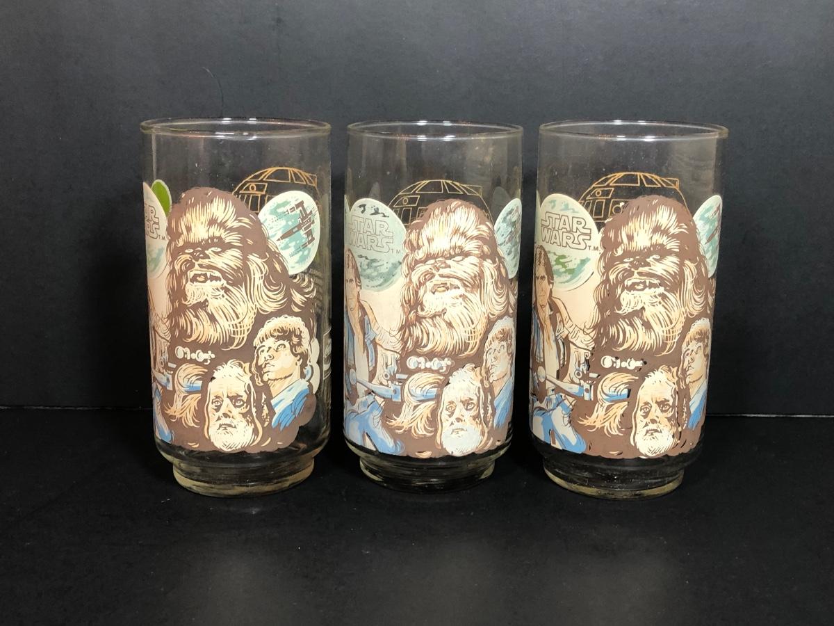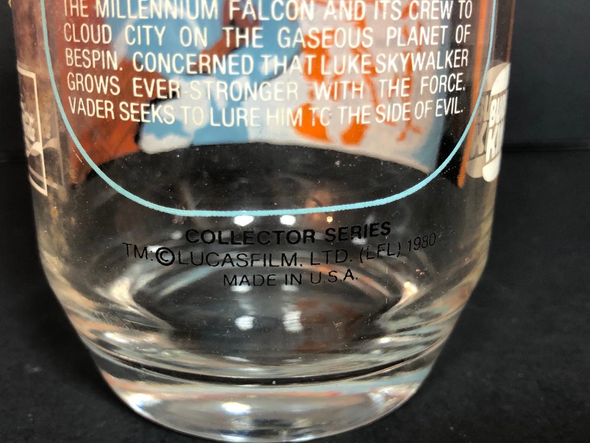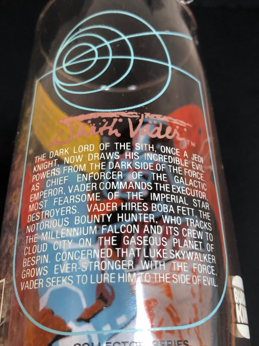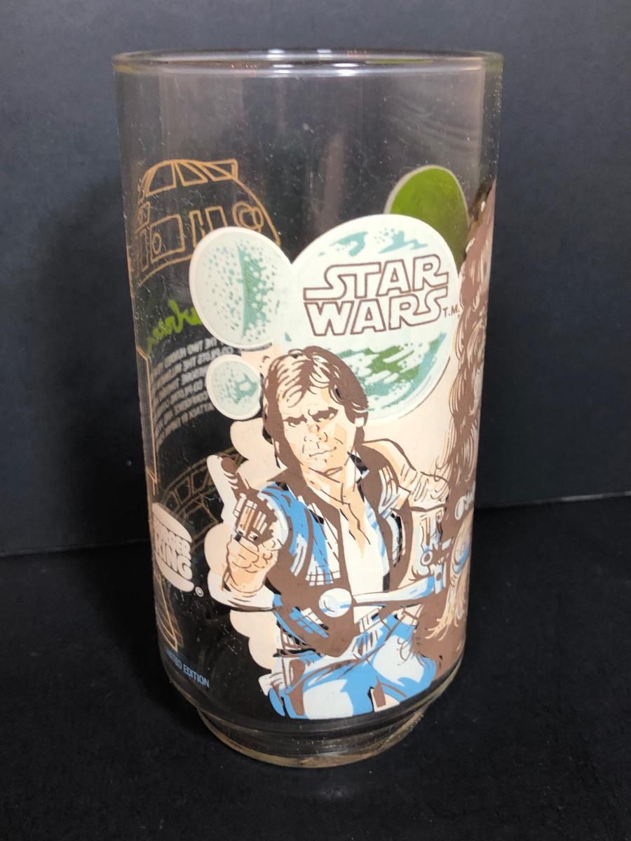 Glasses included: 1977 Luke Skywalker (5), 1977 R2-D2 & C3PO (3), 1977 Darth Vader (1), 1977 Chewbacca (3) & 1980 Empire Strikes Back Darth Vader.