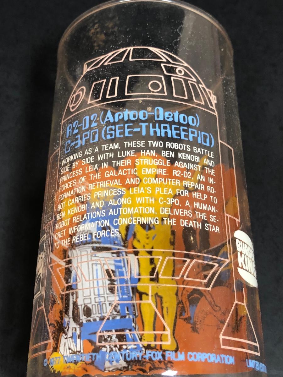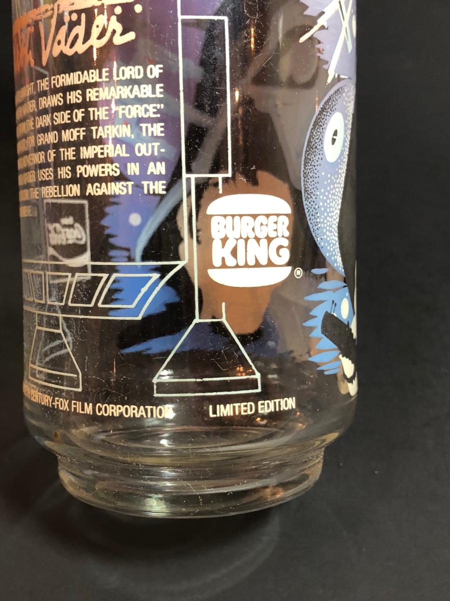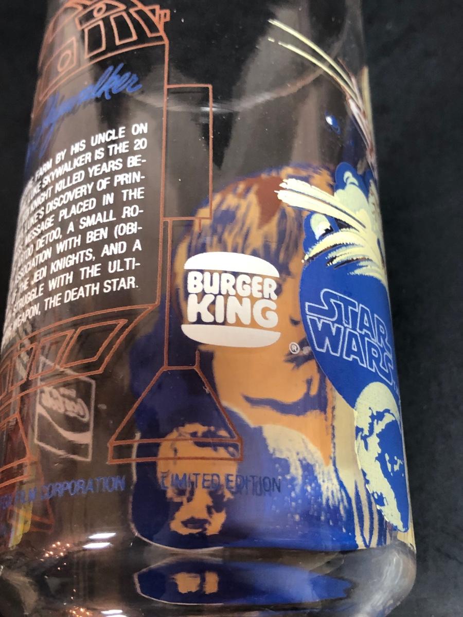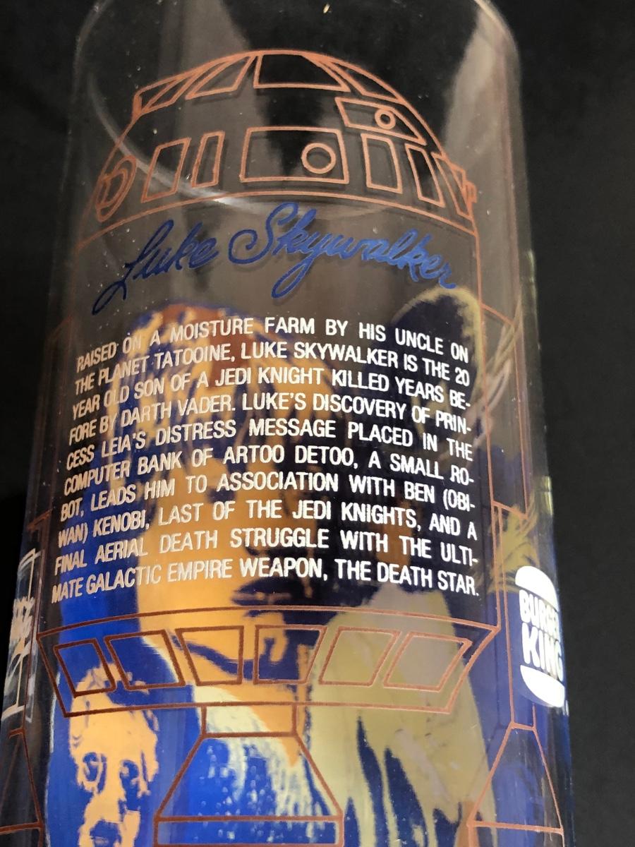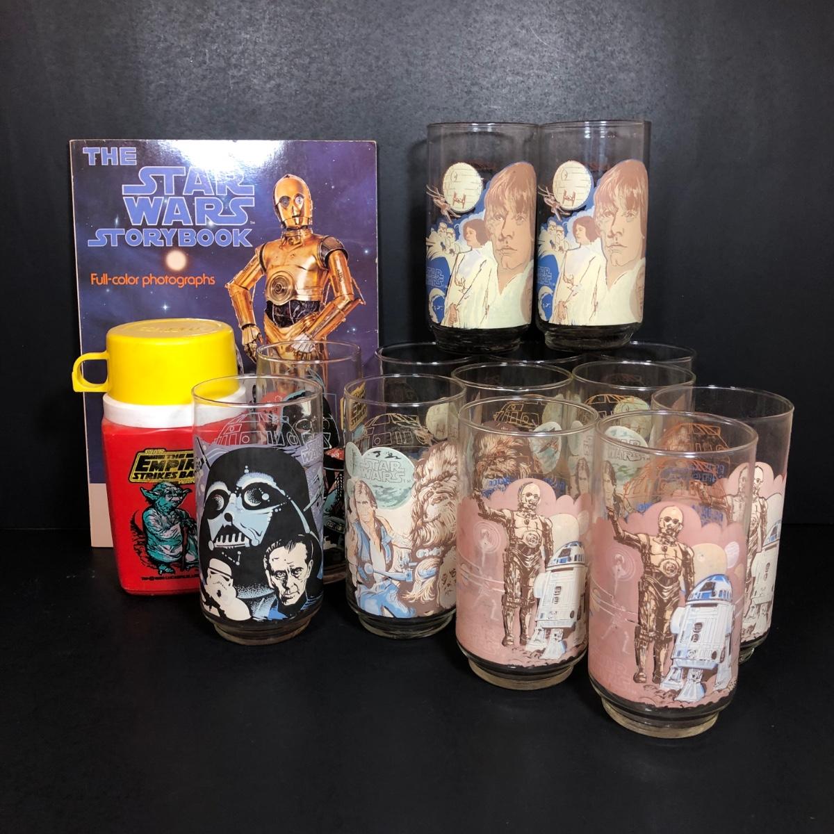 Glasses included: 1977 Luke Skywalker (5), 1977 R2-D2 & C3PO (3), 1977 Darth Vader (1), 1977 Chewbacca (3) & 1980 Empire Strikes Back Darth Vader.