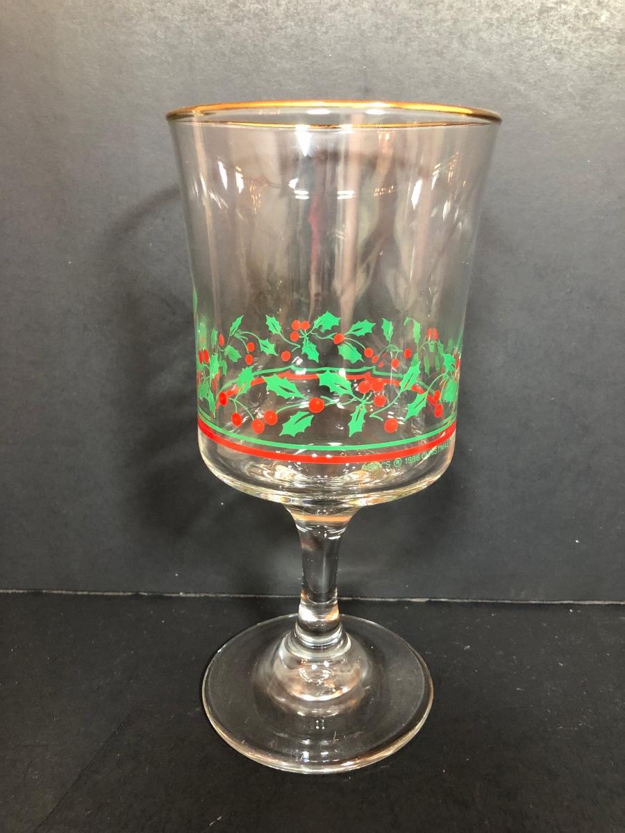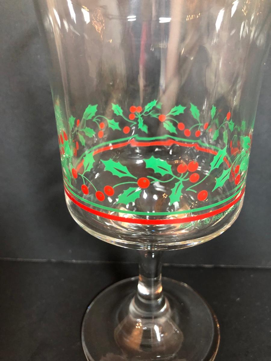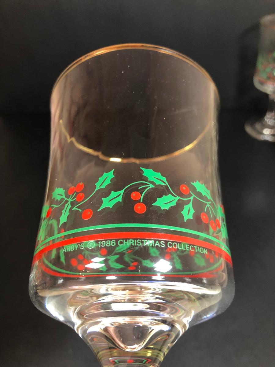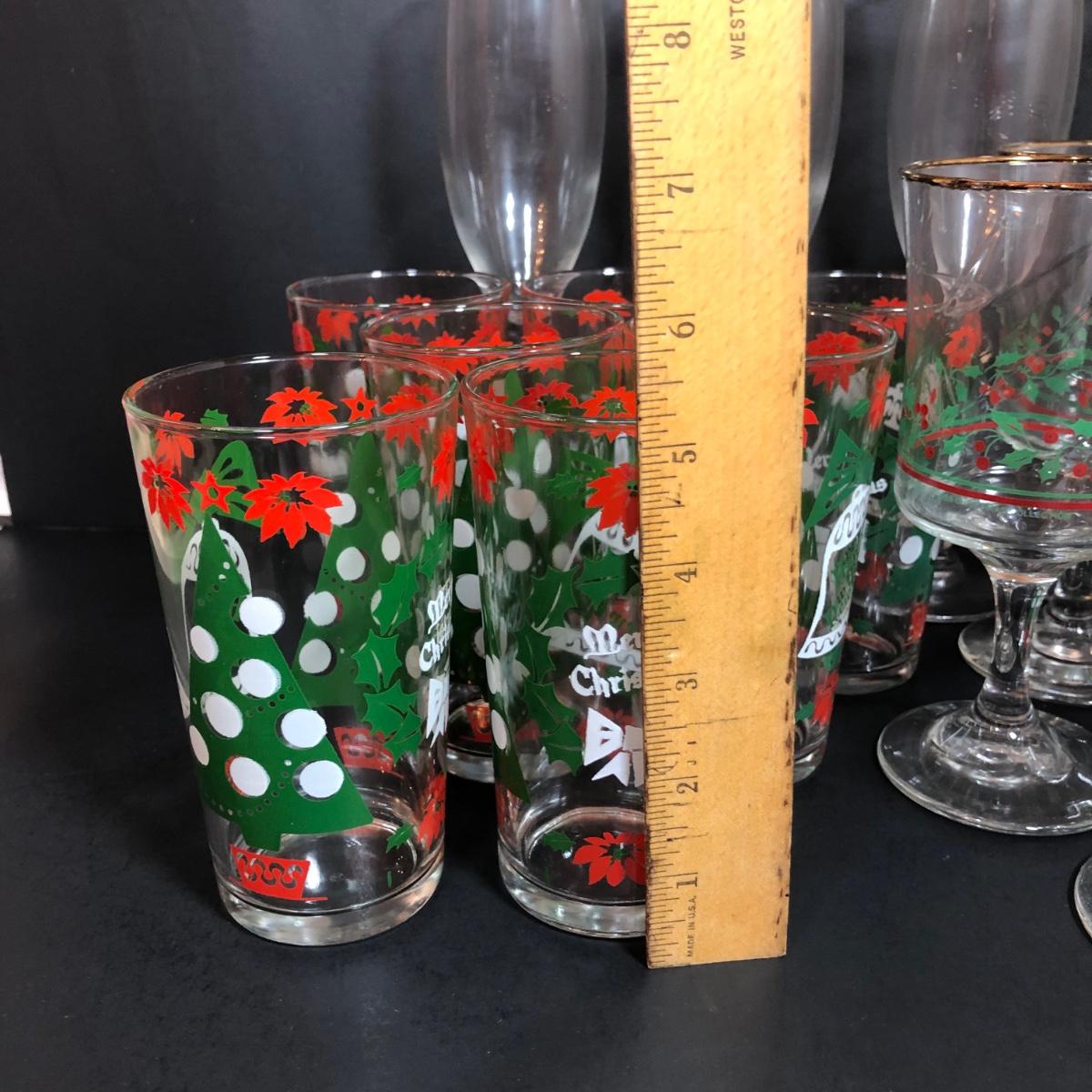 LOT 55F: Christmas Glassware - Noel Champagne Glasses (4), 1986 Arby's Christmas Series Glasses (8) & Holiday Tumblers (7)
