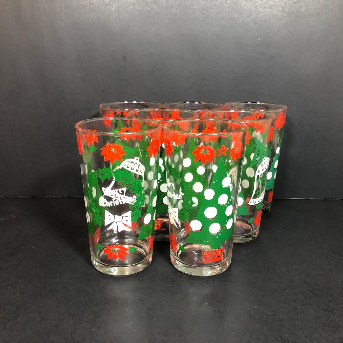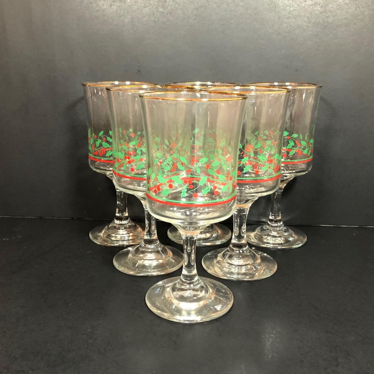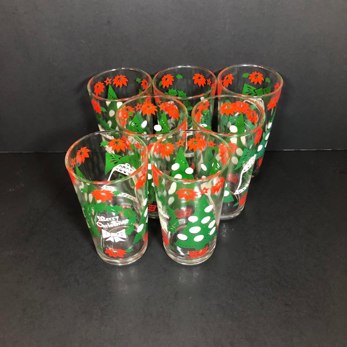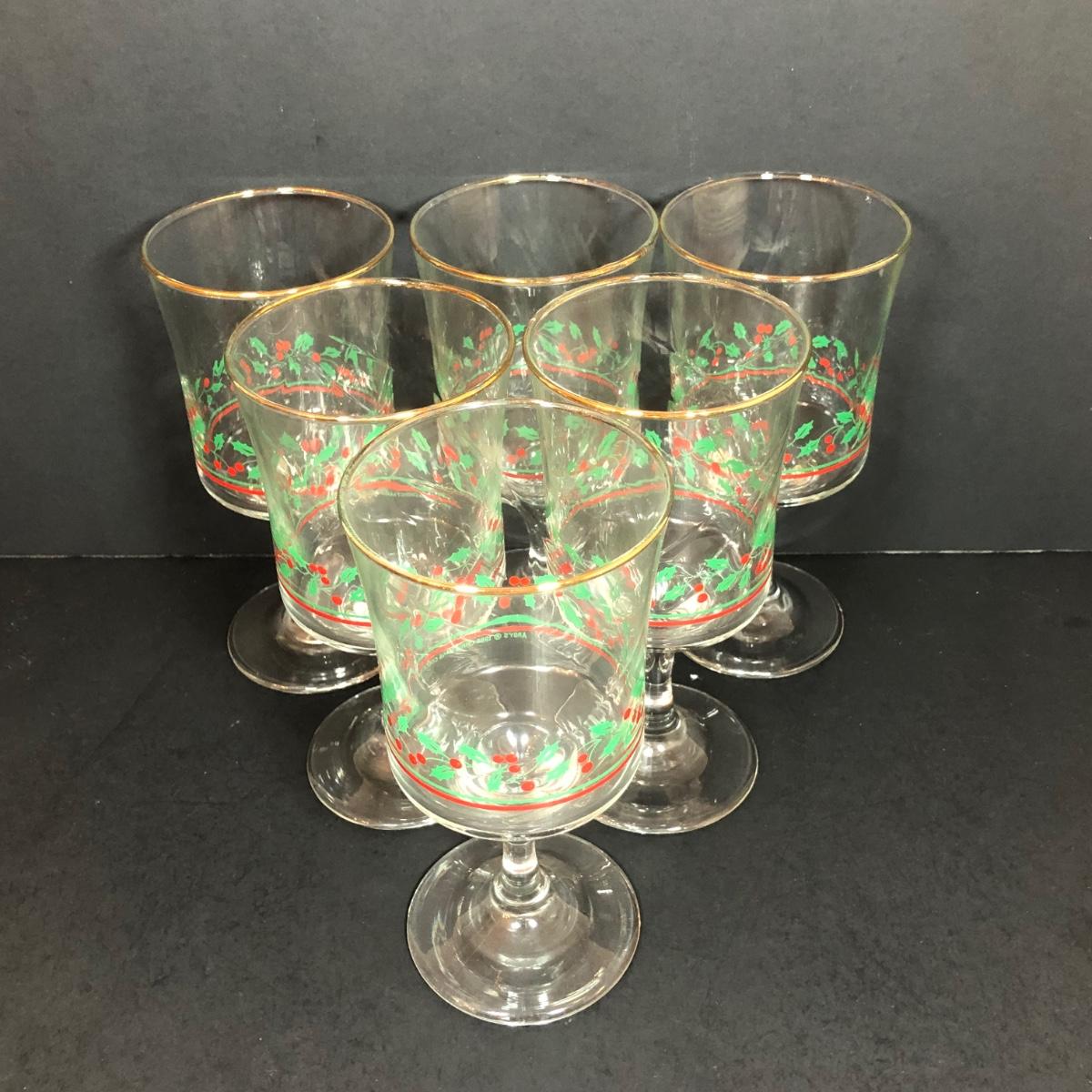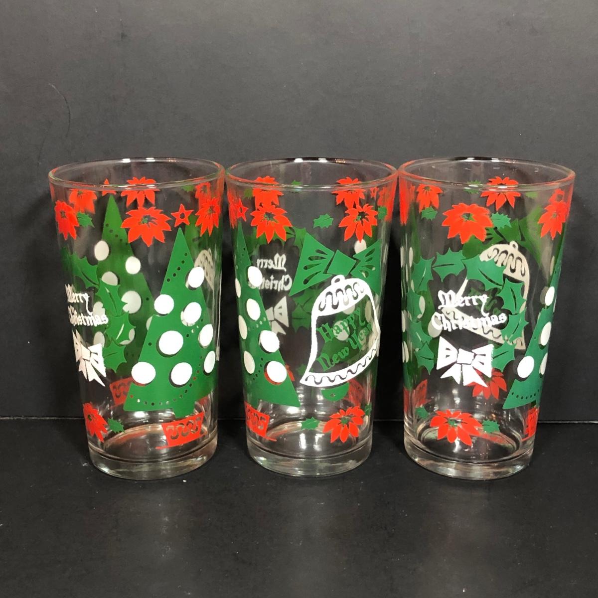 LOT 55F: Christmas Glassware - Noel Champagne Glasses (4), 1986 Arby's Christmas Series Glasses (8) & Holiday Tumblers (7)