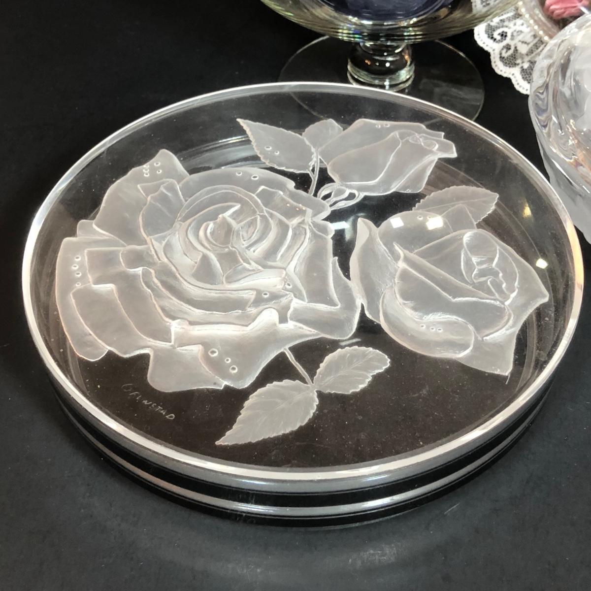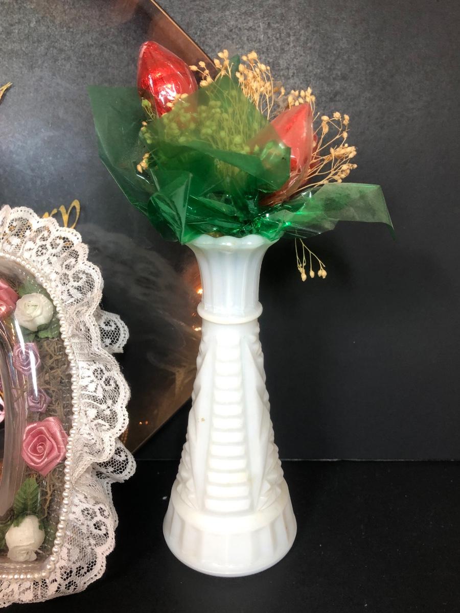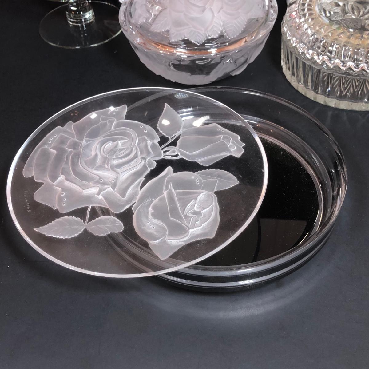 LOT 58L: Romantic Collection - Anniversary Mementos, Rose Lidded Glass Dishes, Milk Glass Vase, 1989 Enesco I Love You Plate & More