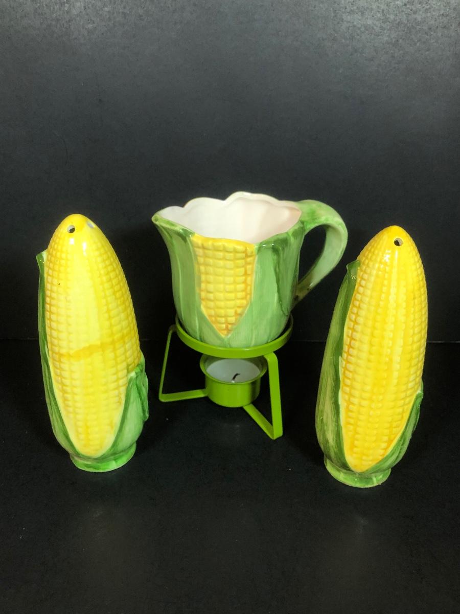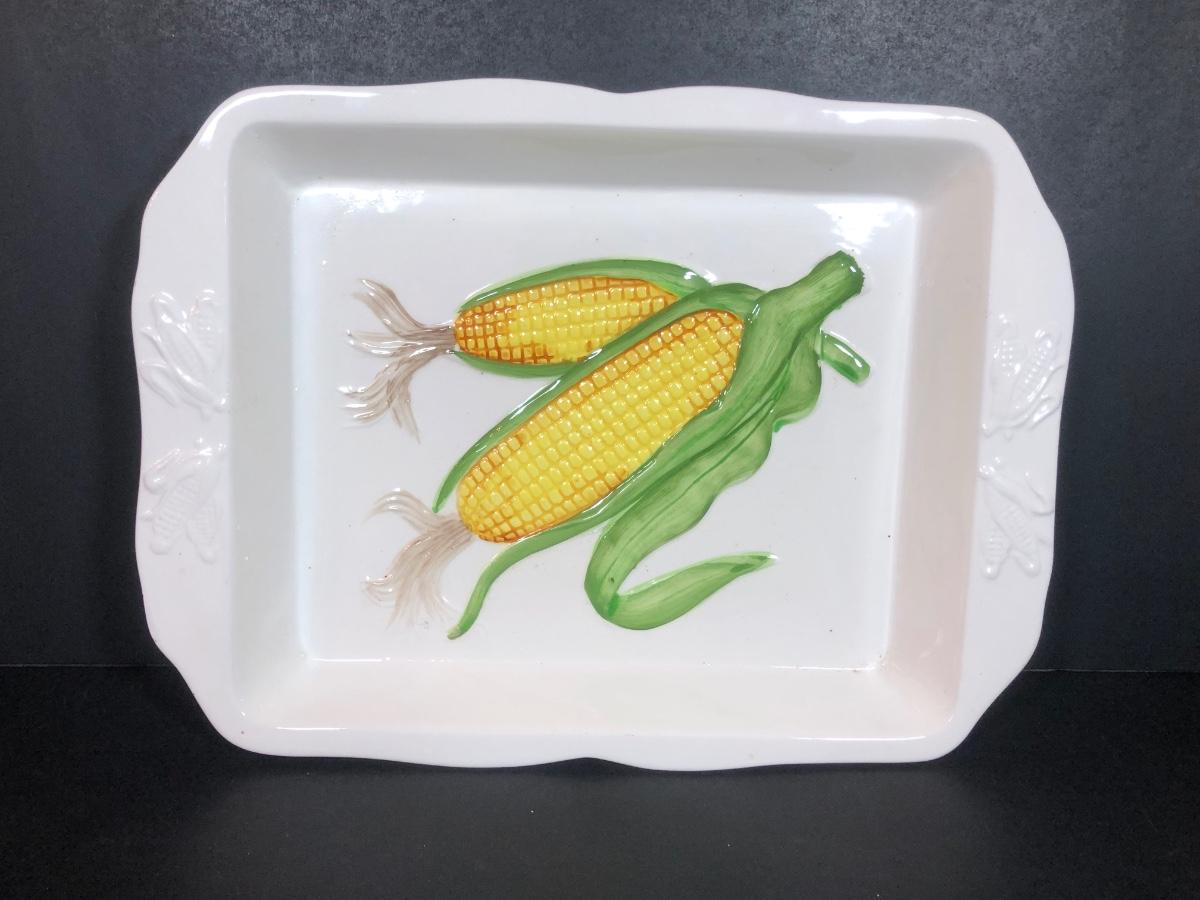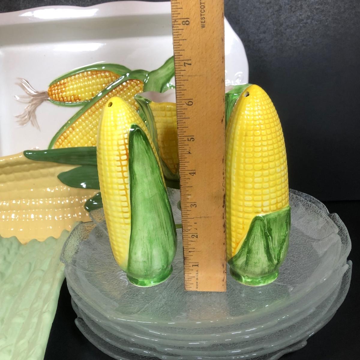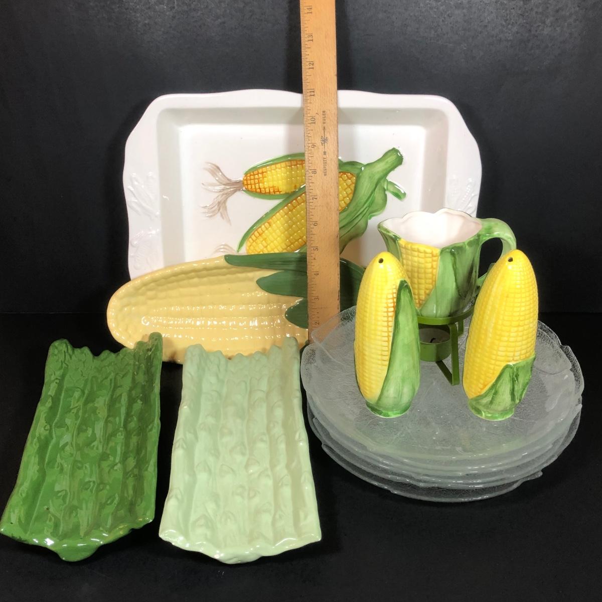 LOT 62K: Corn & Veggie Collection - Original JSC Design Baking Dish, S&P Shakers & Butter Warmer w/ Glass Lettuce Plates, Ceramic Asparagus Dishes
