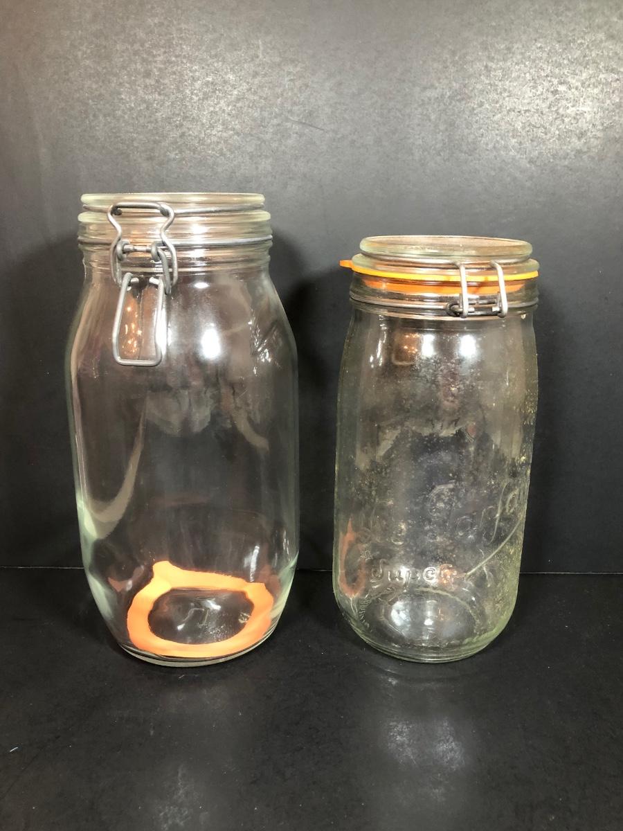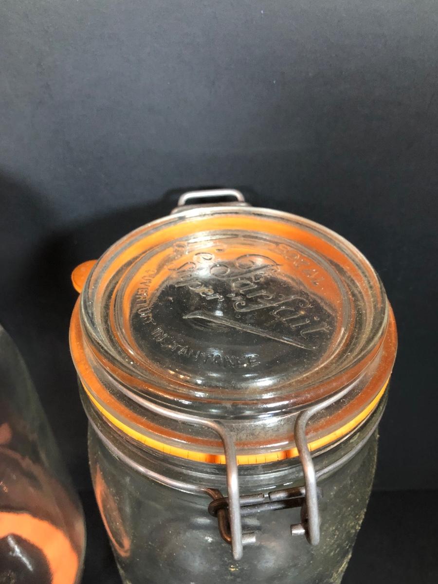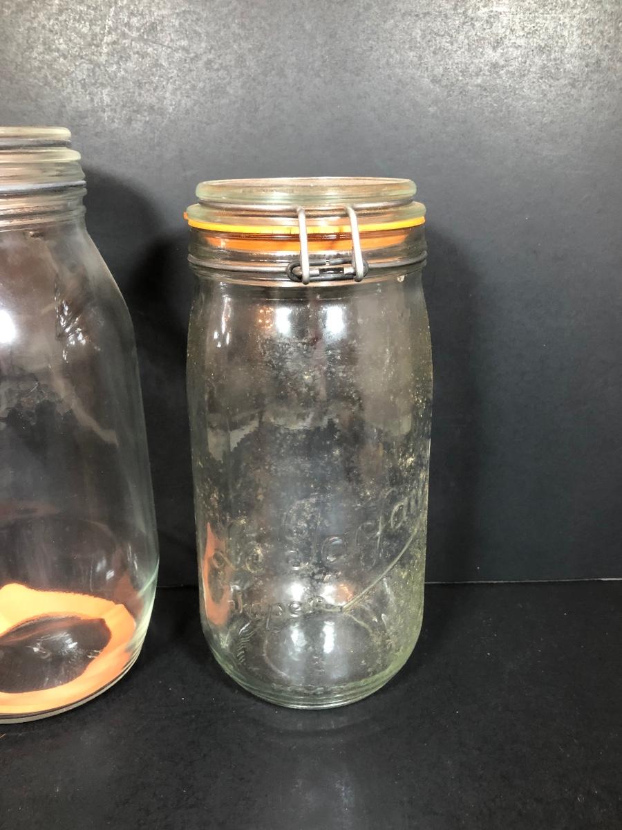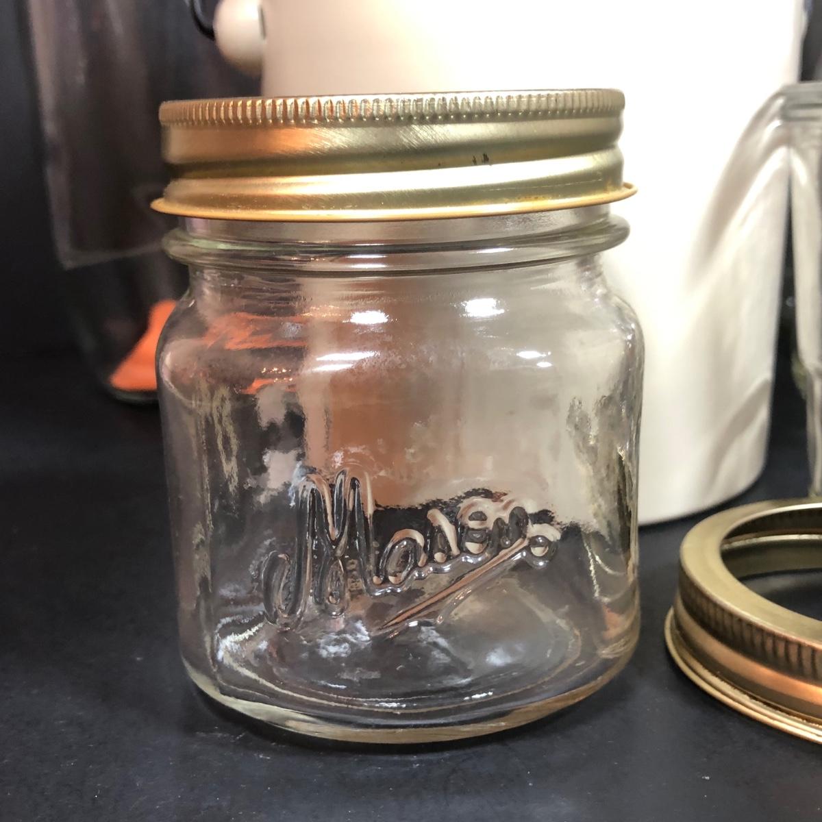 LOT 65F: Ball Juice Glasses, Arc & Parfait Glass Jar Canisters, Terra Cotta Trivets/Food Warmers & More