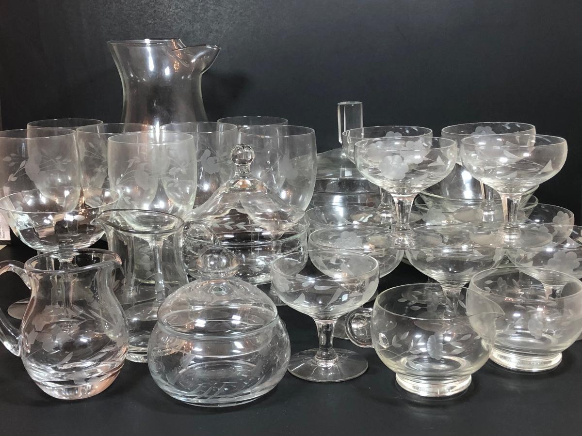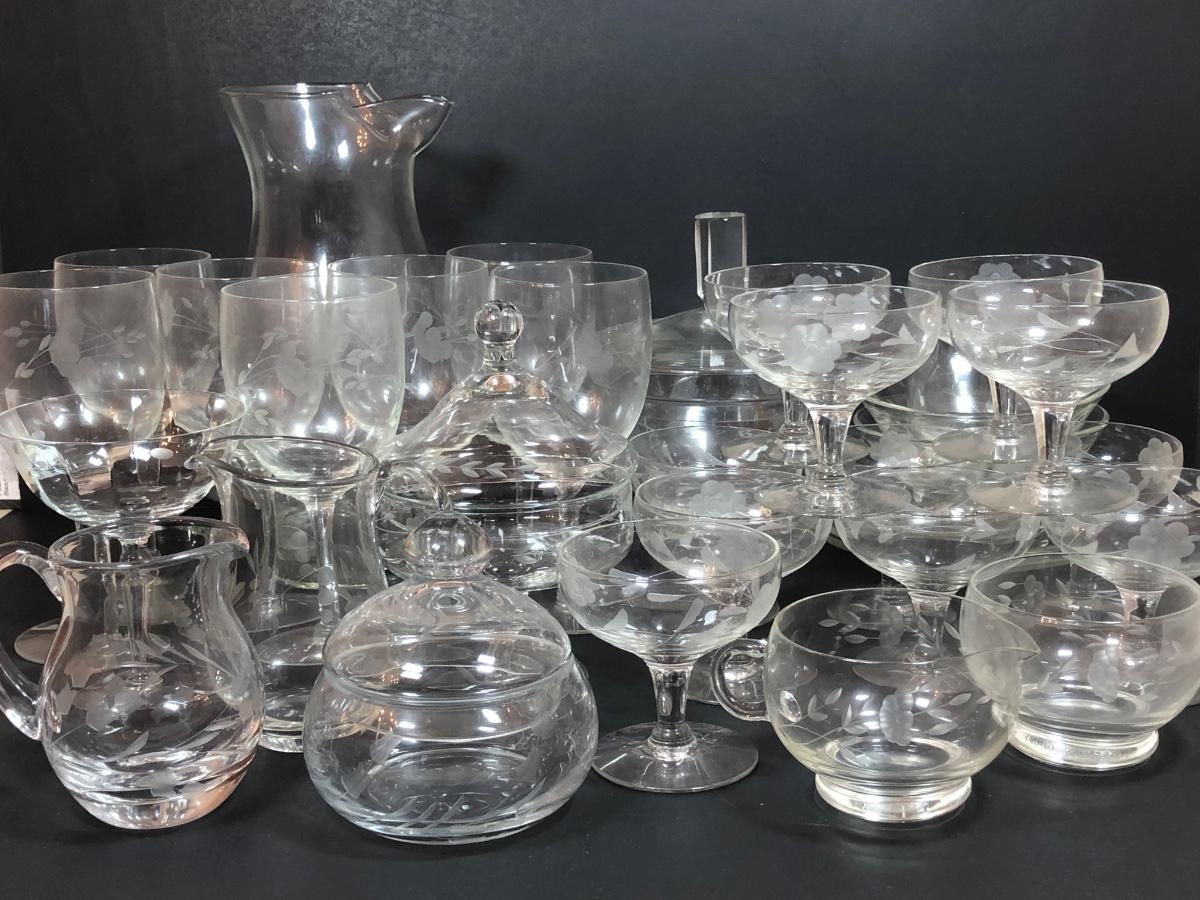 LOT 75F: Large Collection of Vintage Etched Glassware