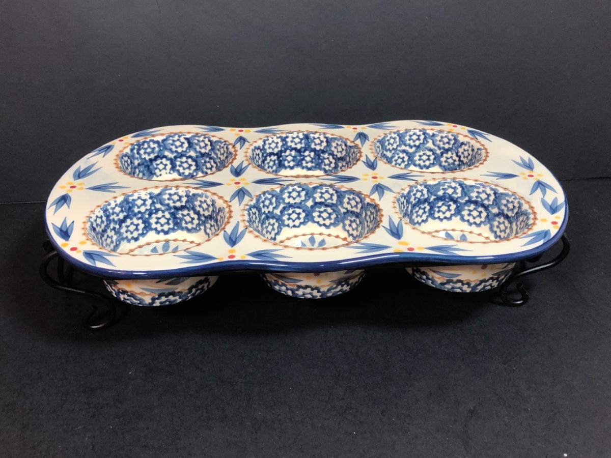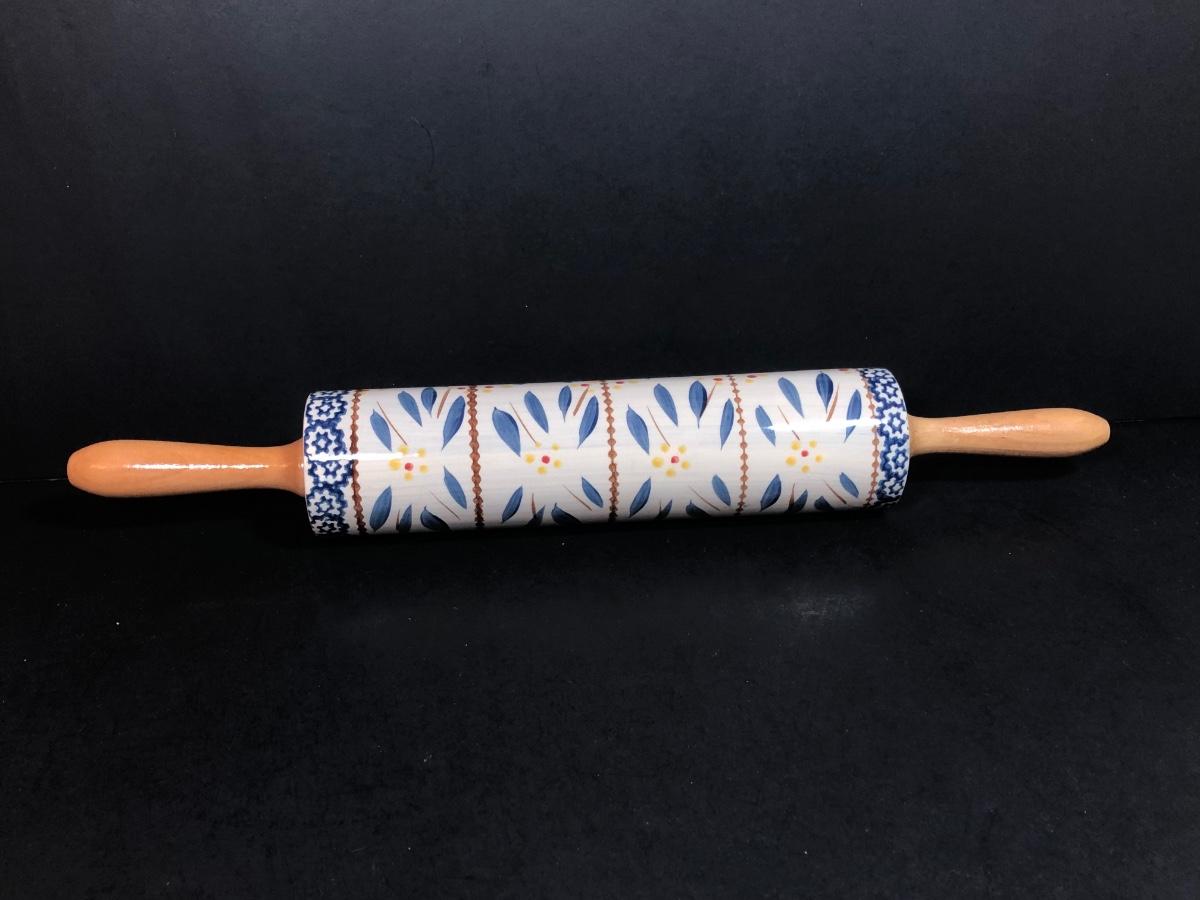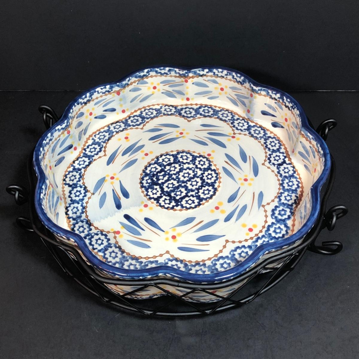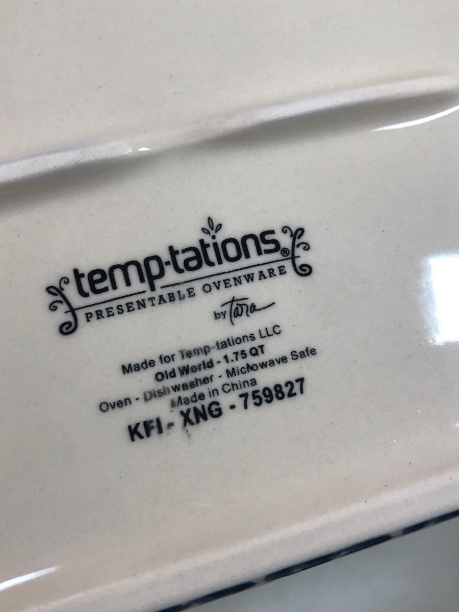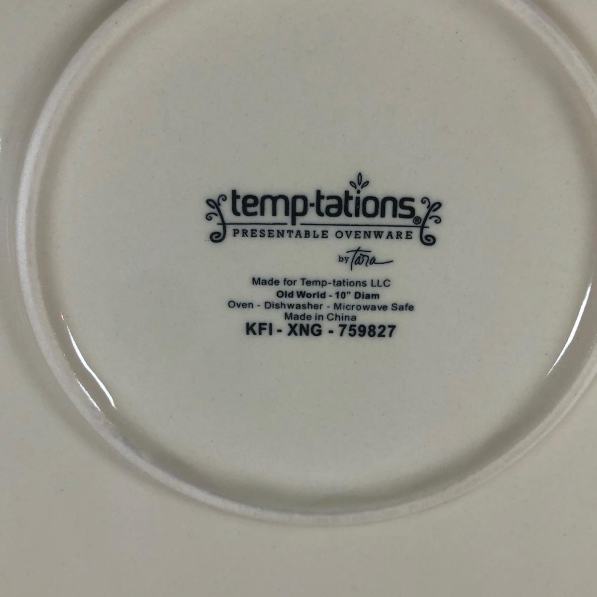 LOT 79K: Temp-Tations by Tara Blue Old World Baking Set - Cupcake/Muffin Pan, Loaf Pan, Rolling Pin & 10" Dish
