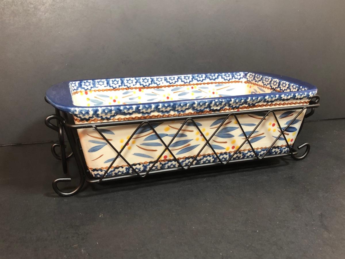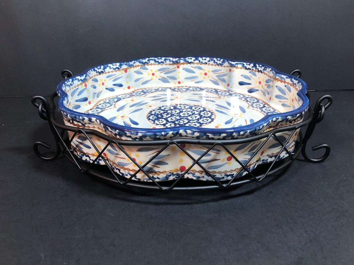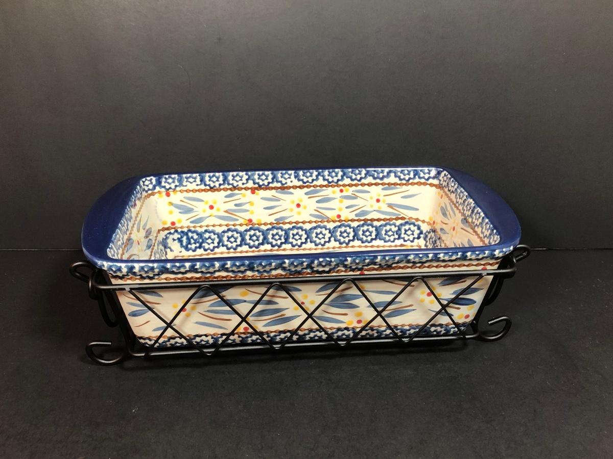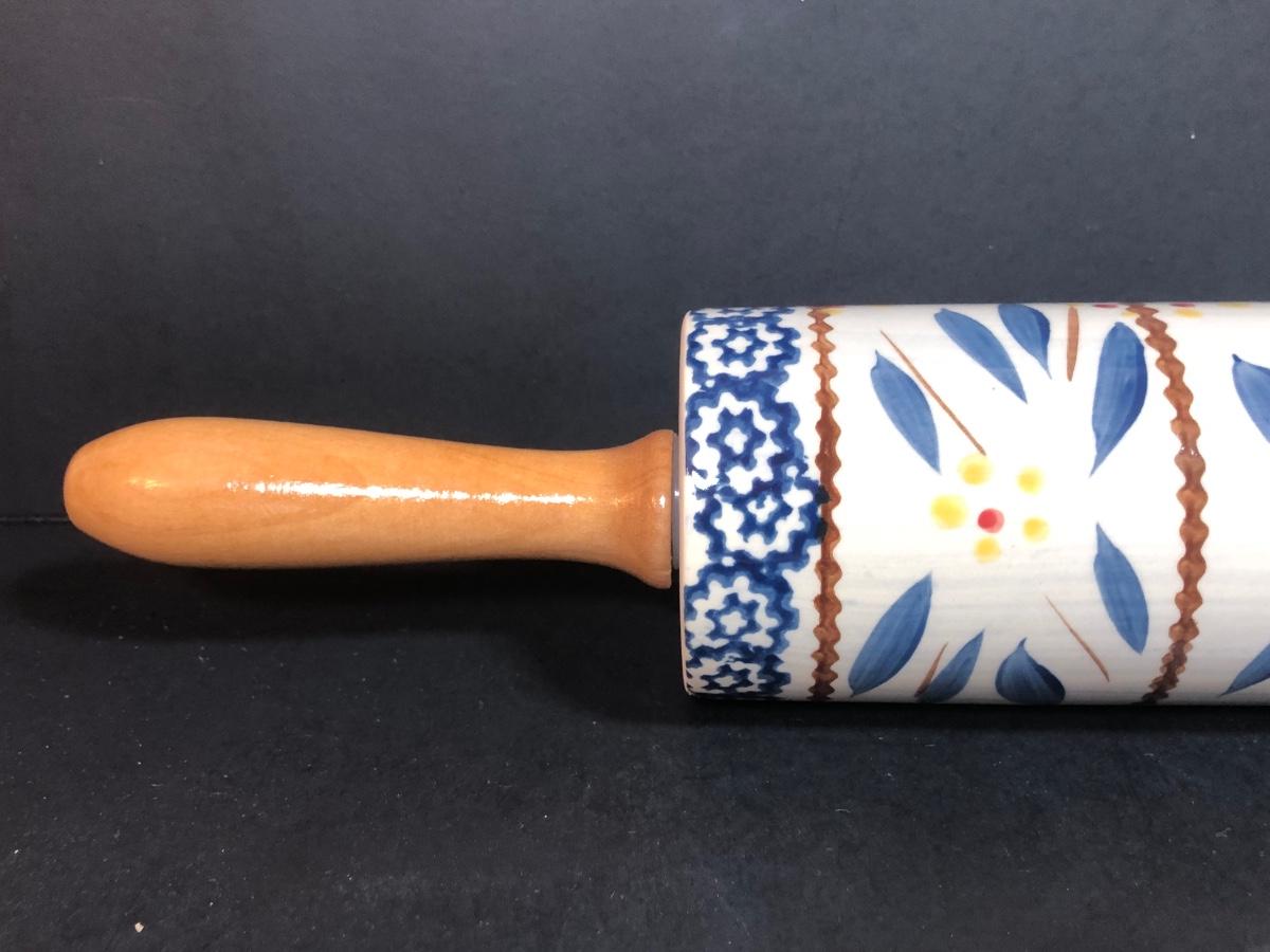 LOT 79K: Temp-Tations by Tara Blue Old World Baking Set - Cupcake/Muffin Pan, Loaf Pan, Rolling Pin & 10" Dish