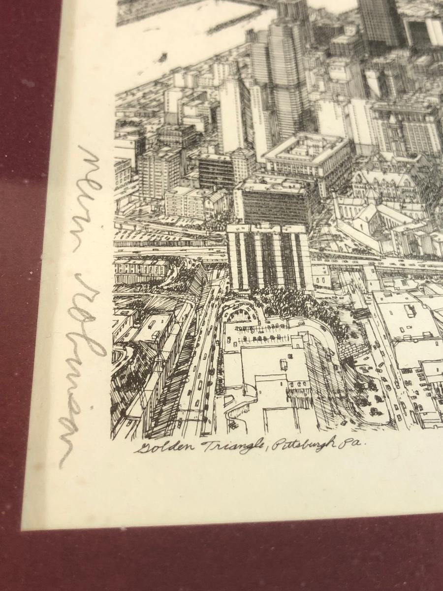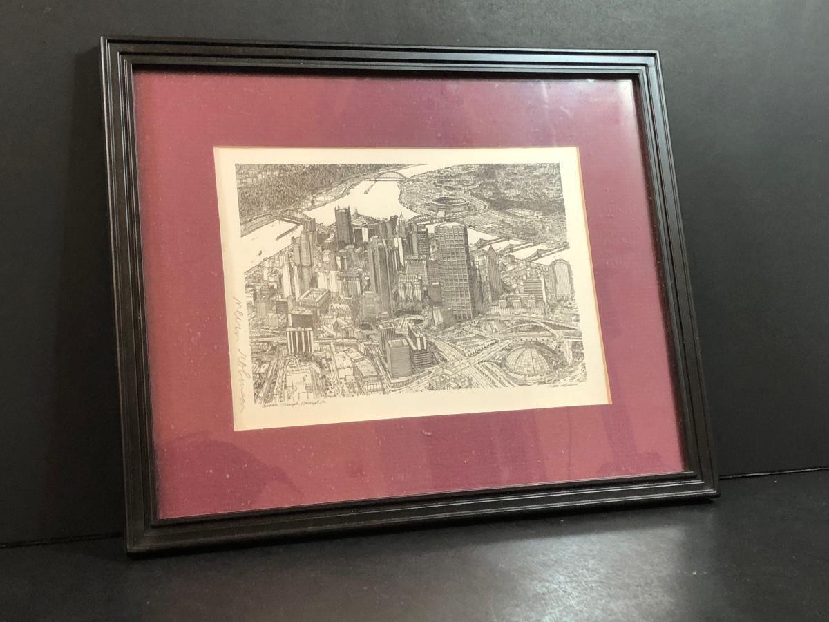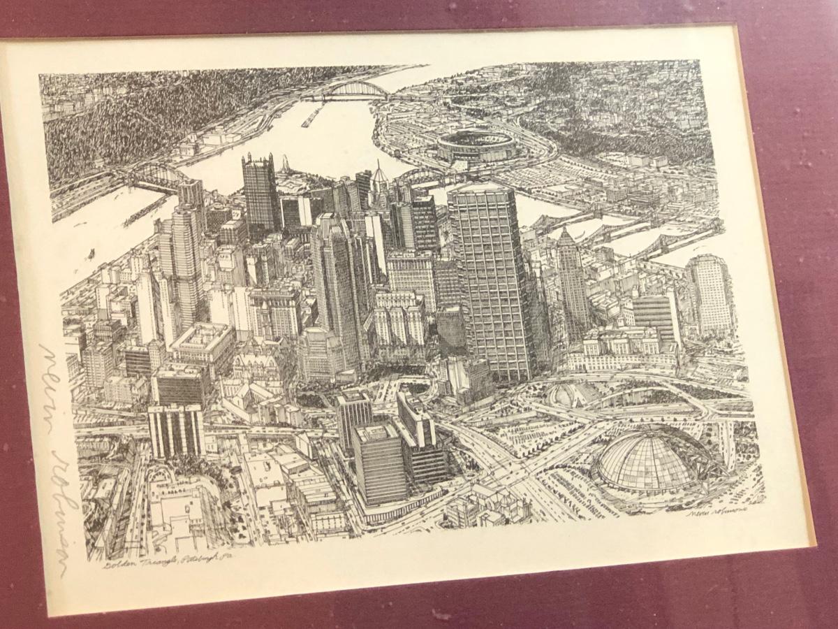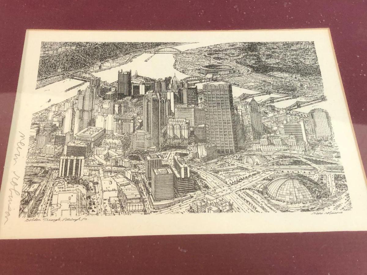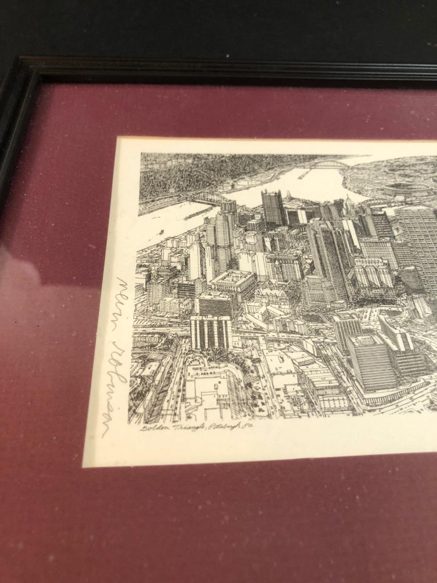 LOT 85F: Framed Pittsburgh, Pennsylvania Ink Drawing Prints