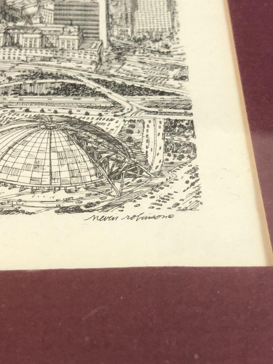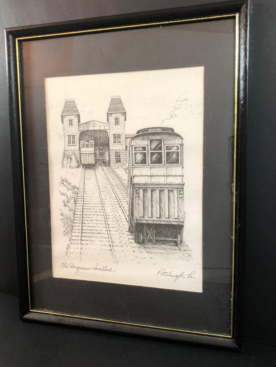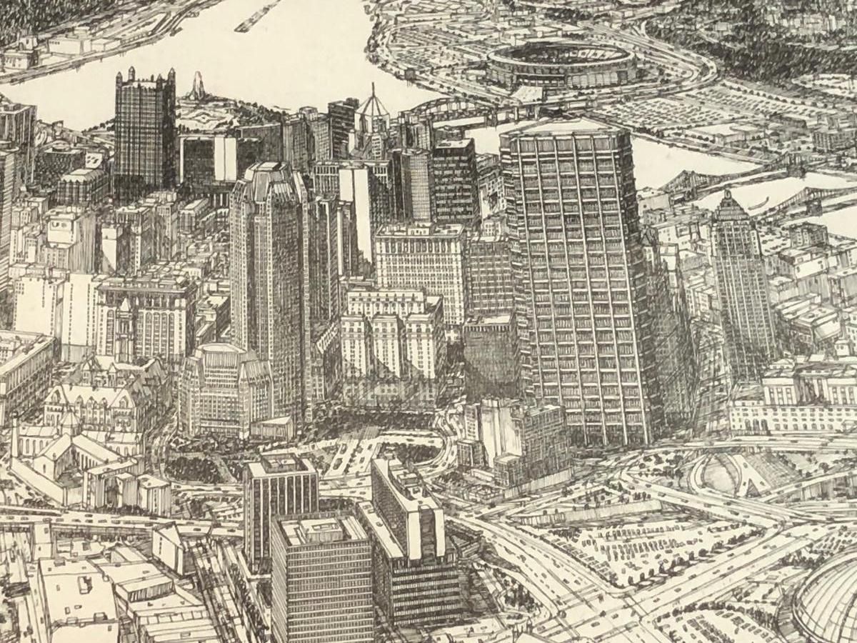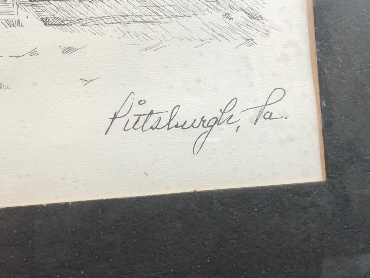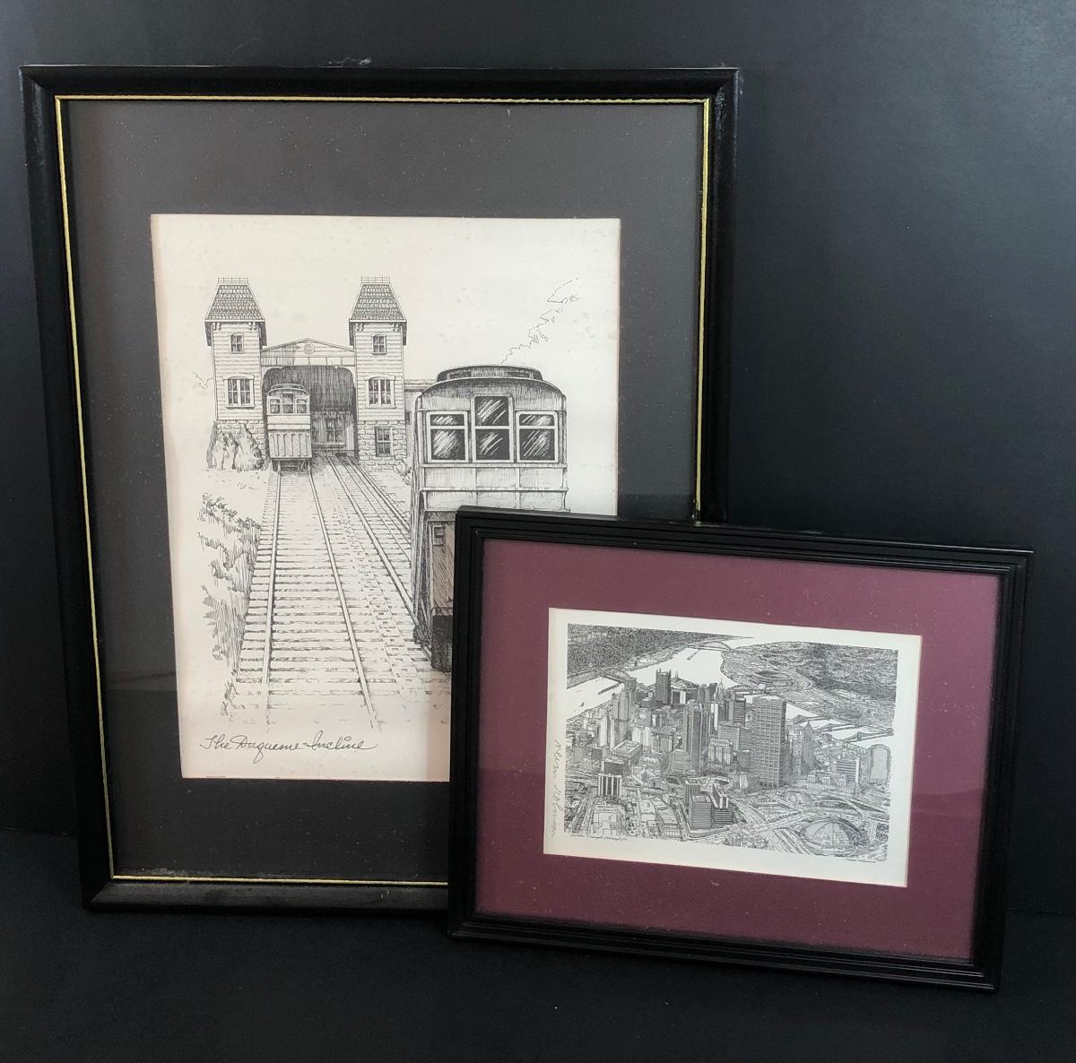 LOT 85F: Framed Pittsburgh, Pennsylvania Ink Drawing Prints