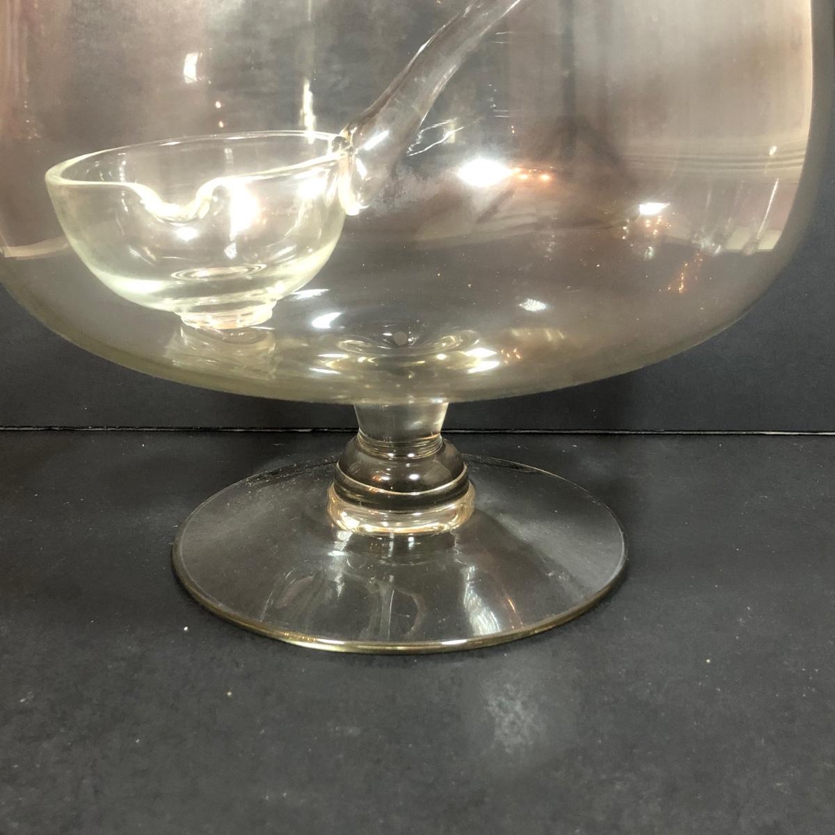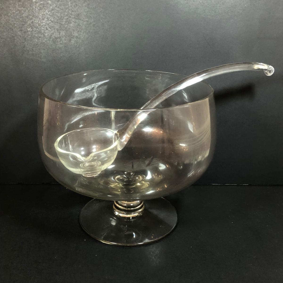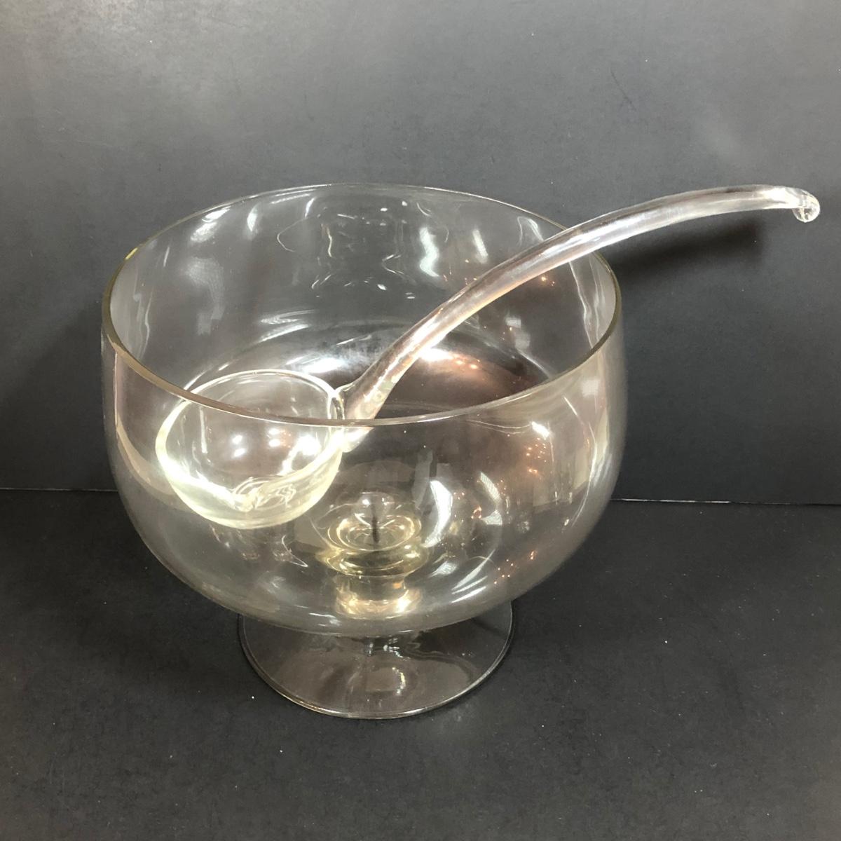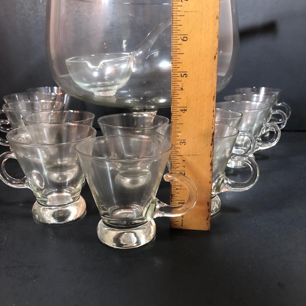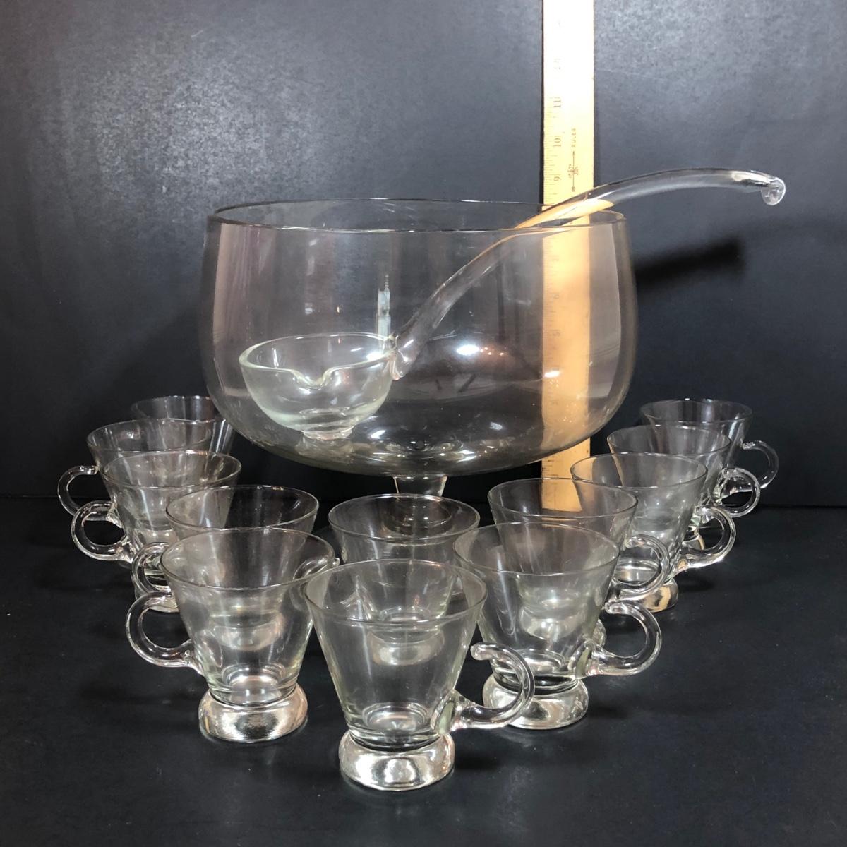 LOT 86D: Vintage Louie Glass Company Punch Bowl w/ Glass Ladle & 12 Cups