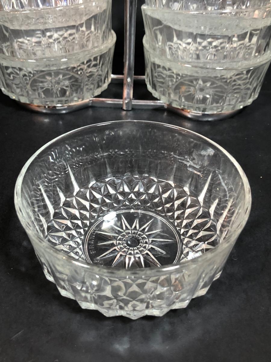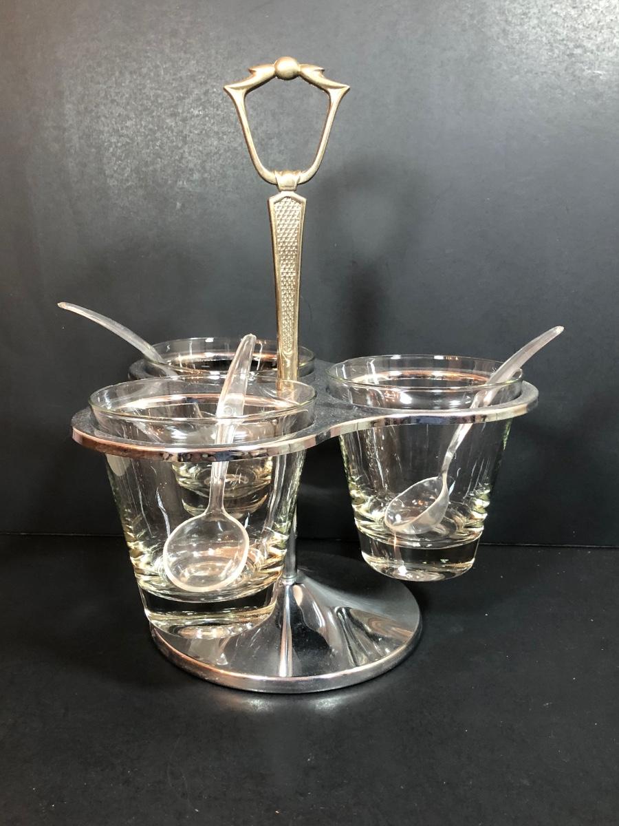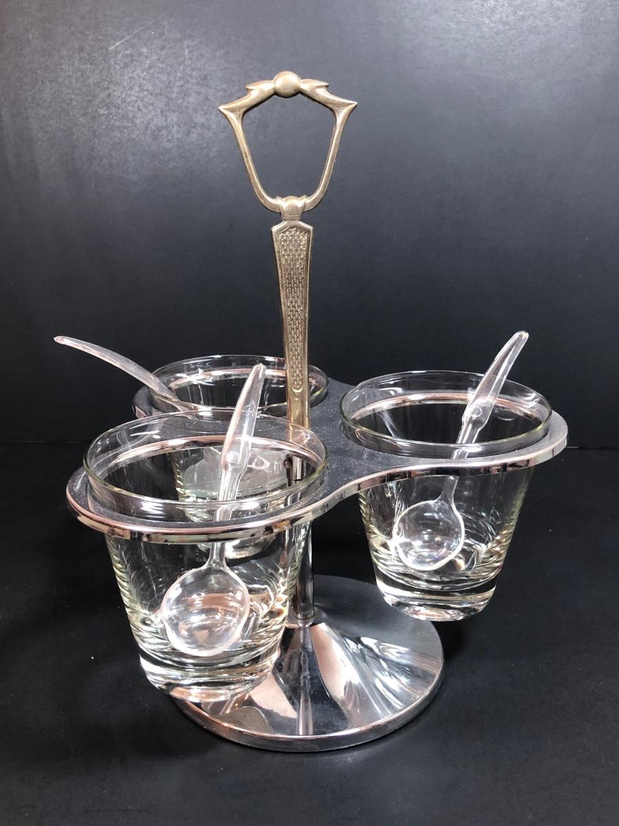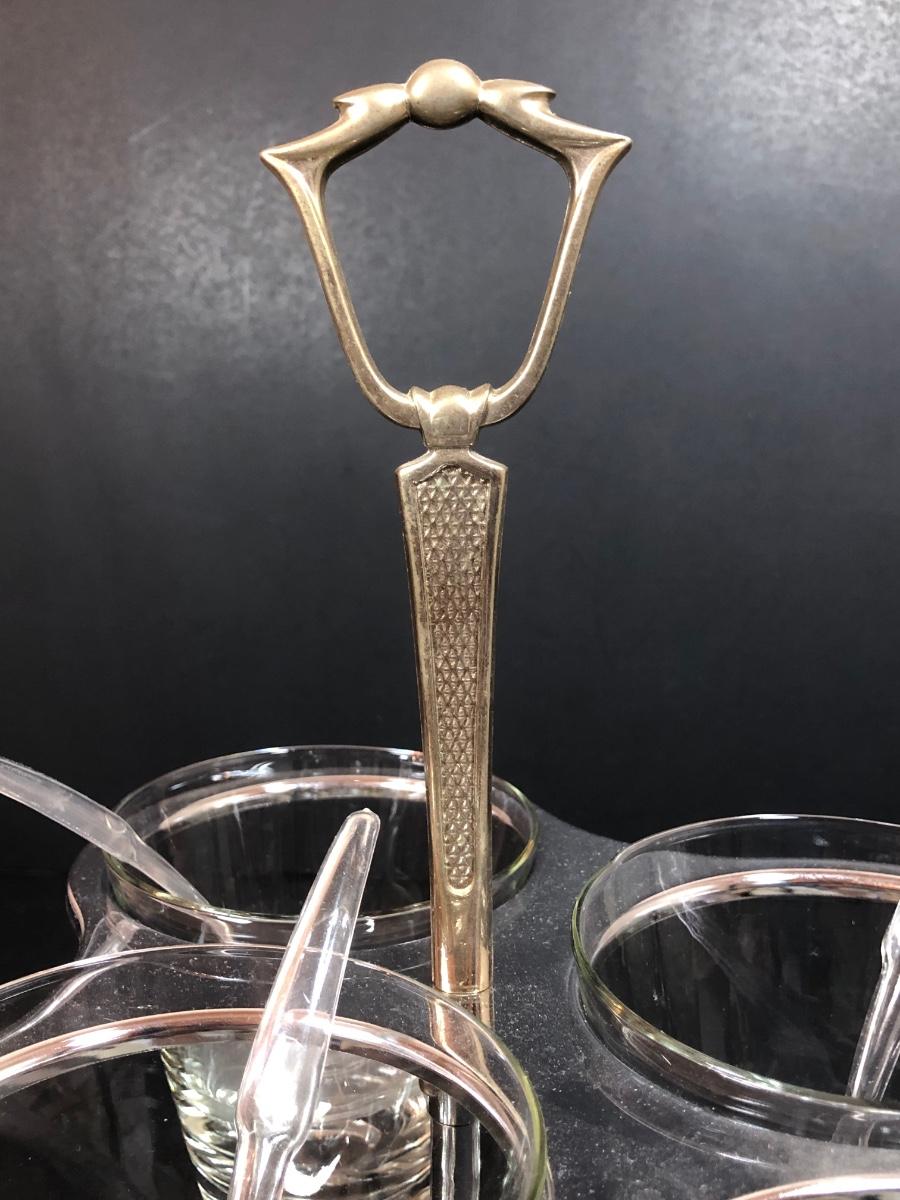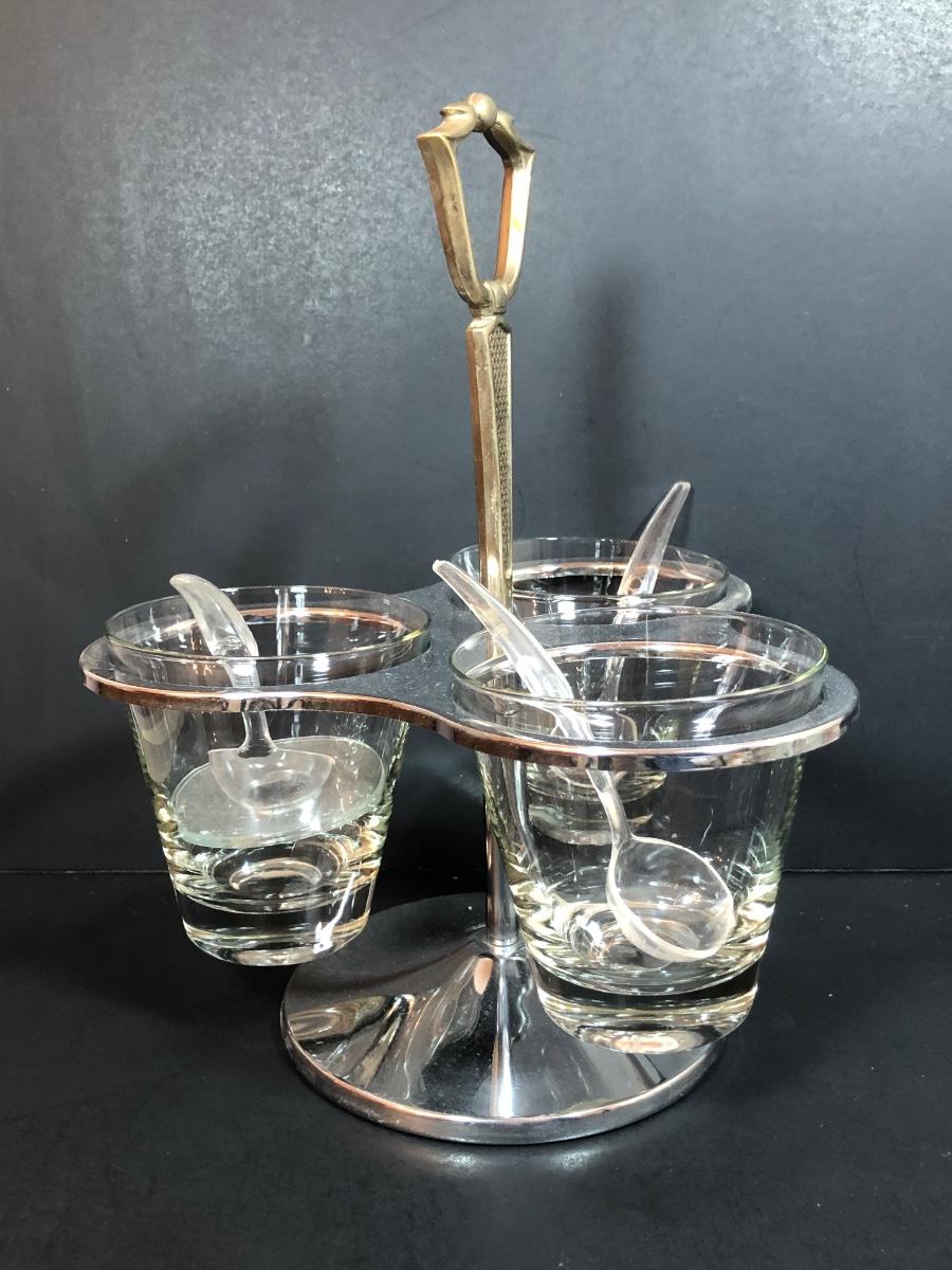 LOT 88F: Kromex Rotating Triple Condiment Server, Crystal Bowls w/ Rack & More