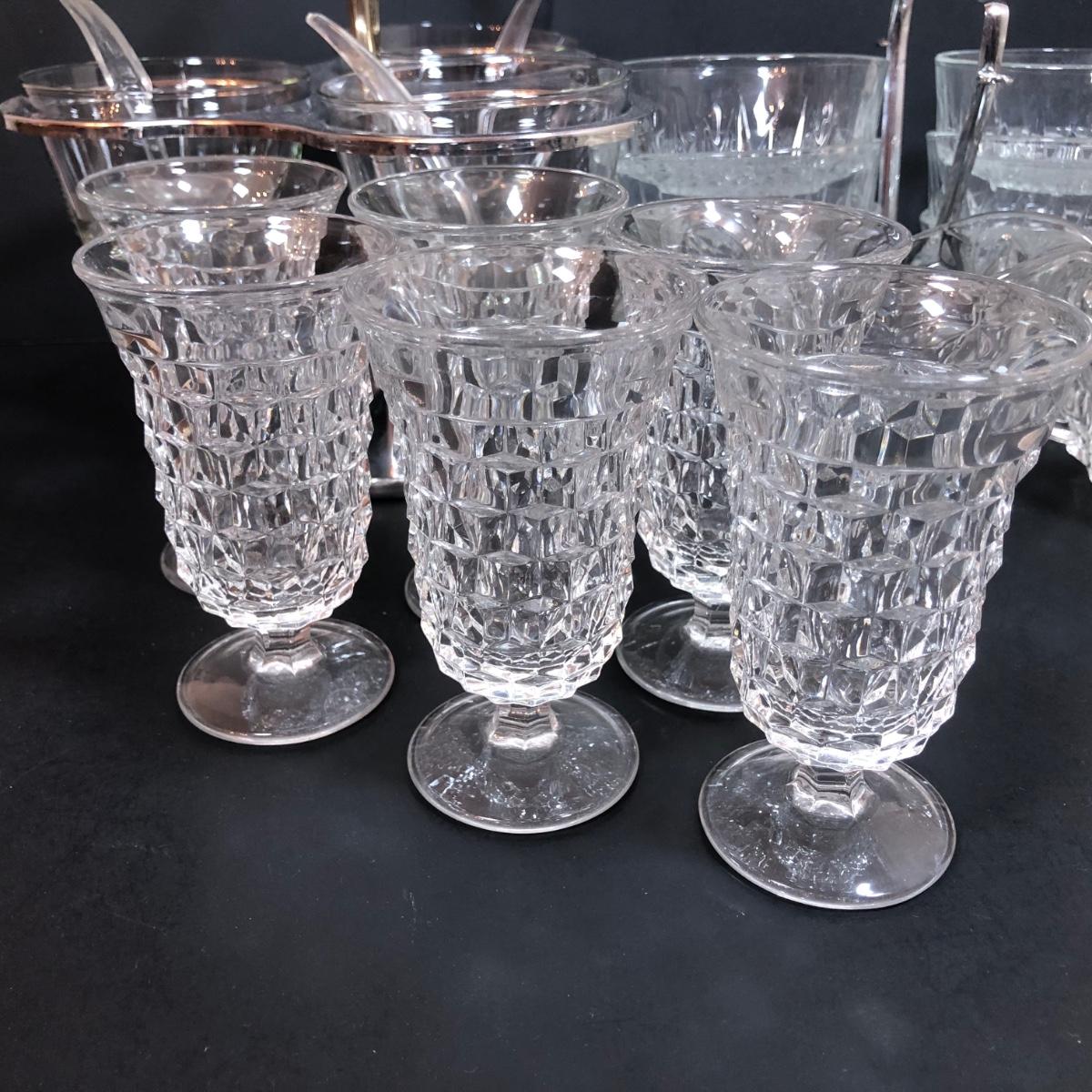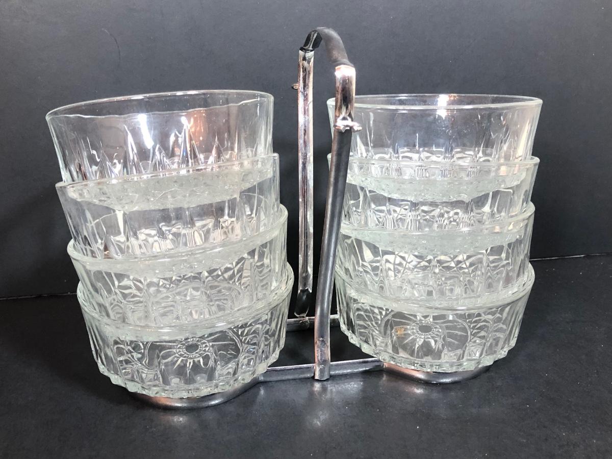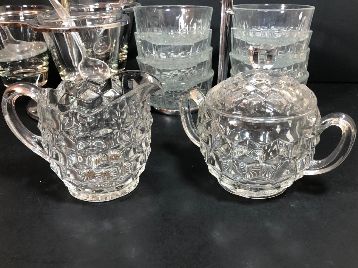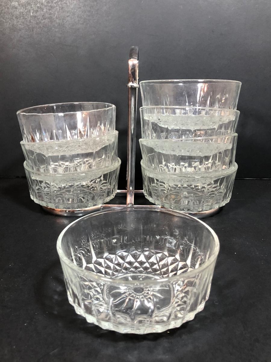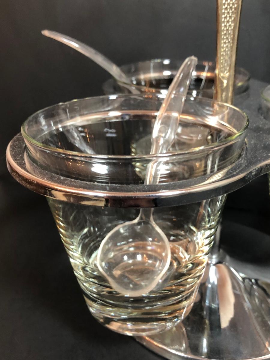 LOT 88F: Kromex Rotating Triple Condiment Server, Crystal Bowls w/ Rack & More