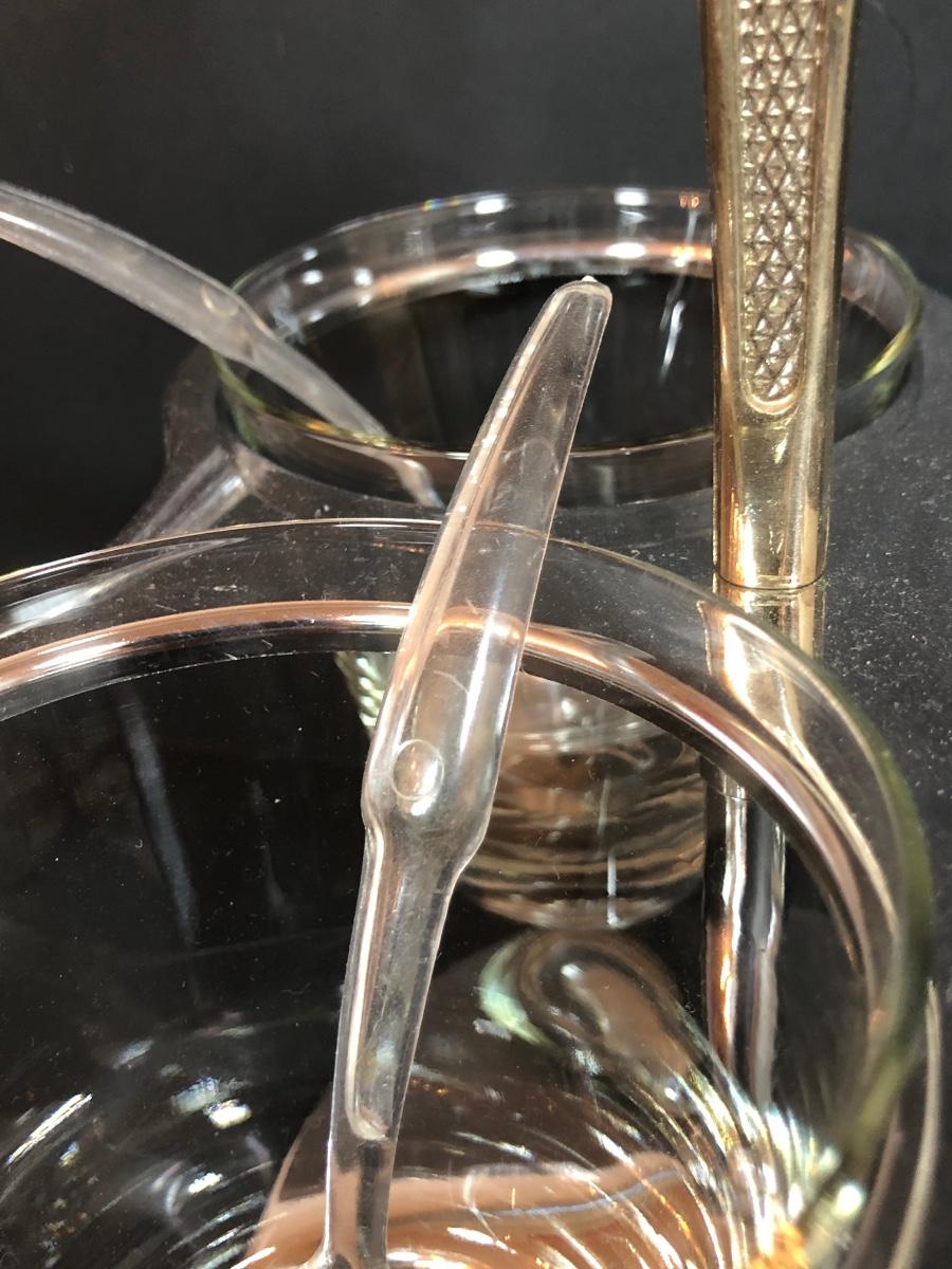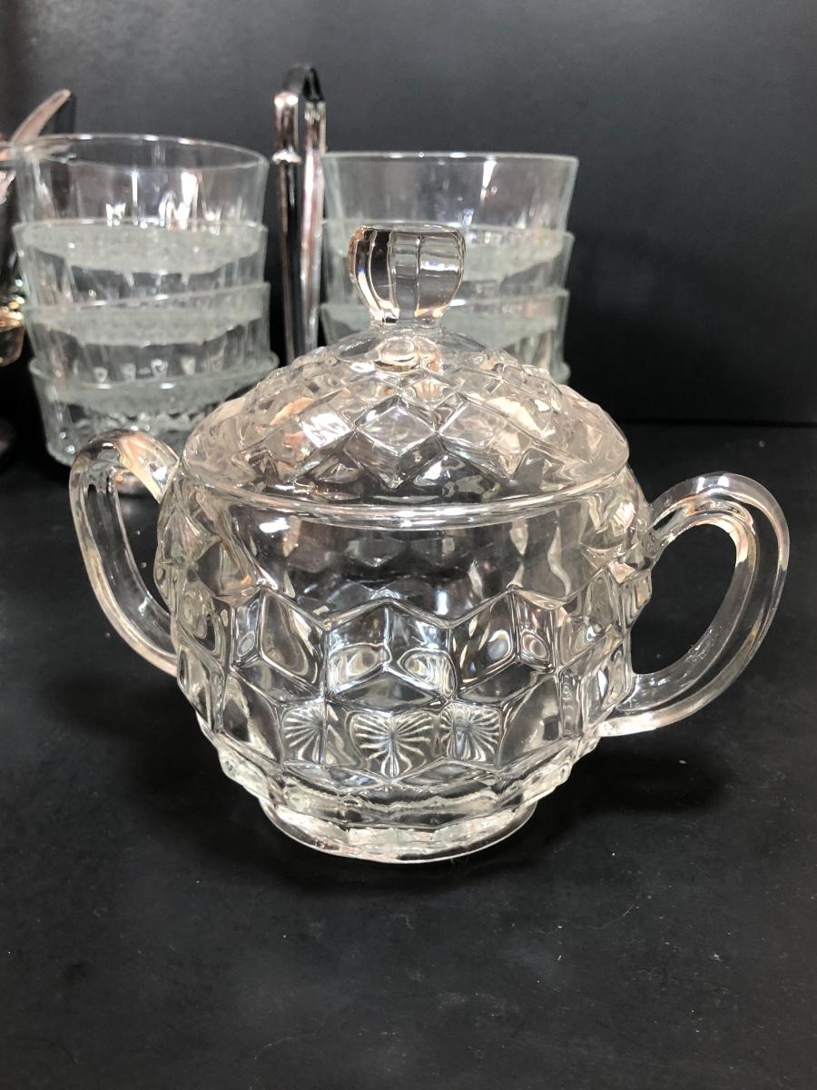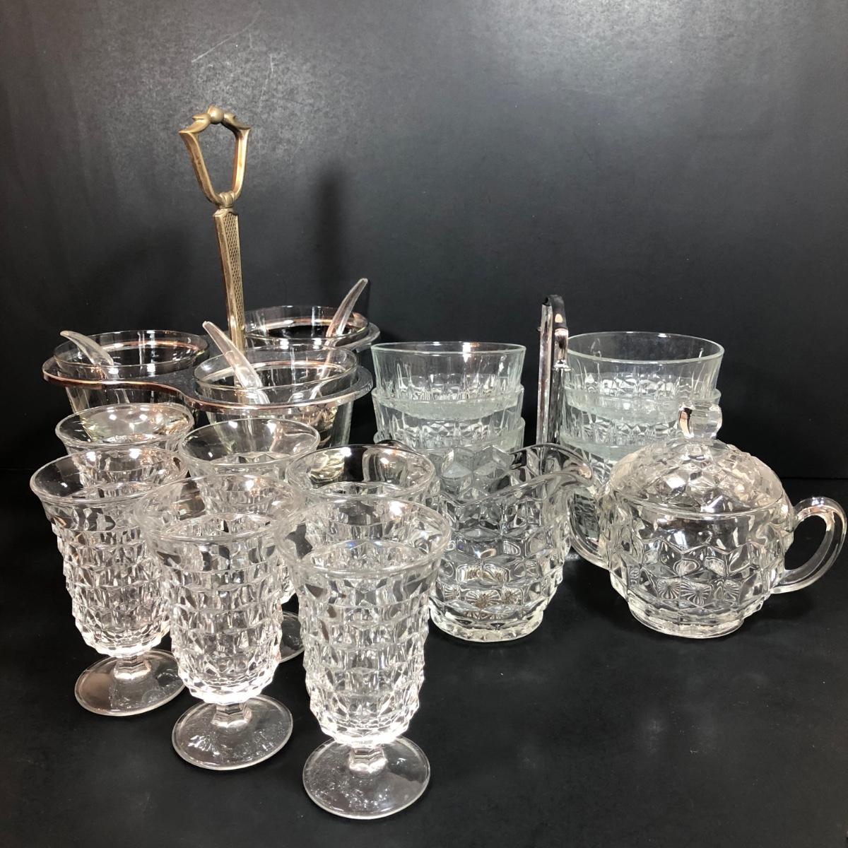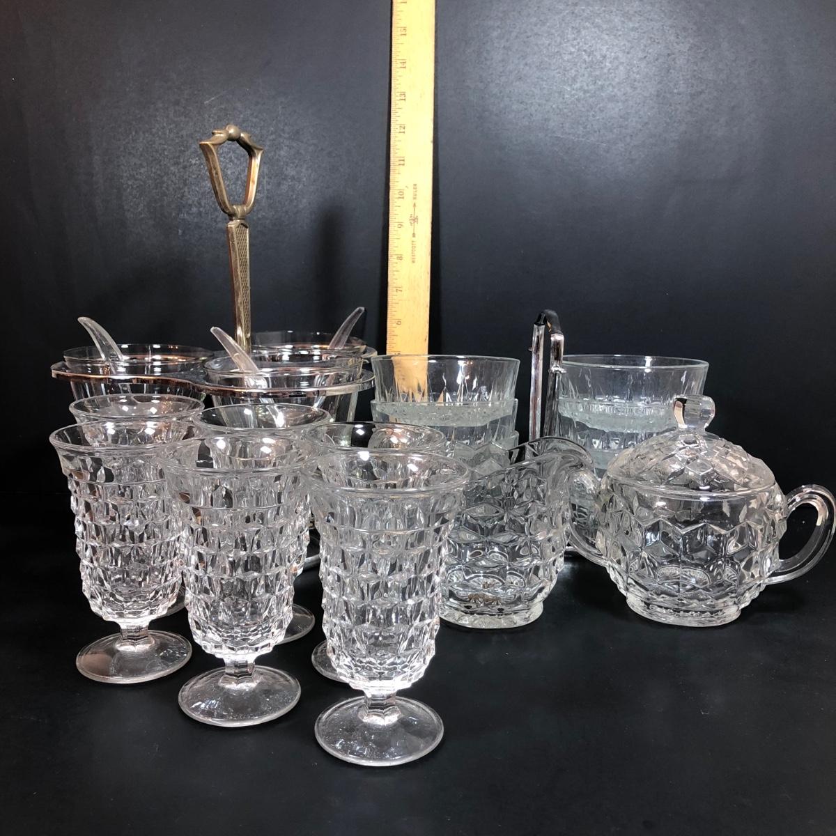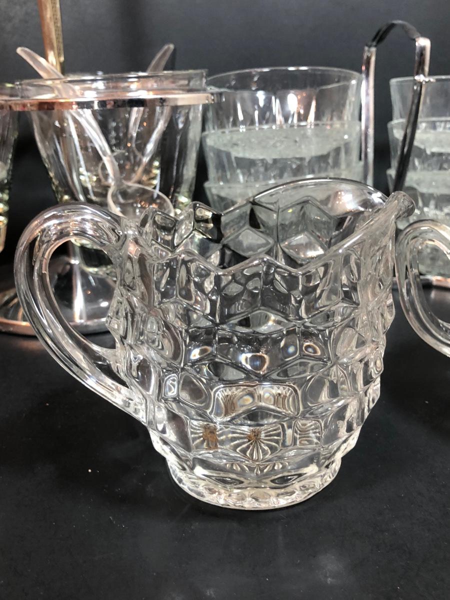 LOT 88F: Kromex Rotating Triple Condiment Server, Crystal Bowls w/ Rack & More