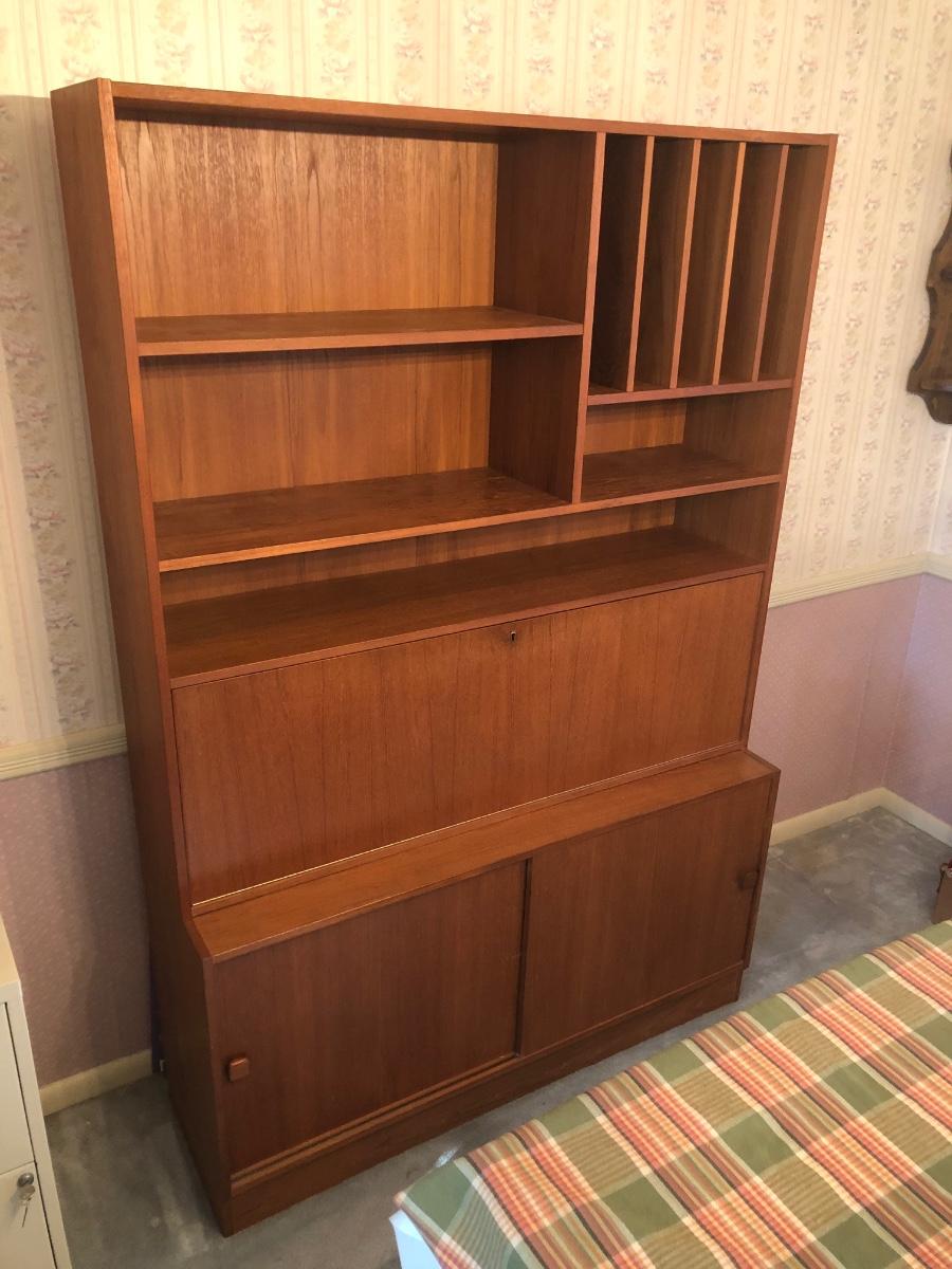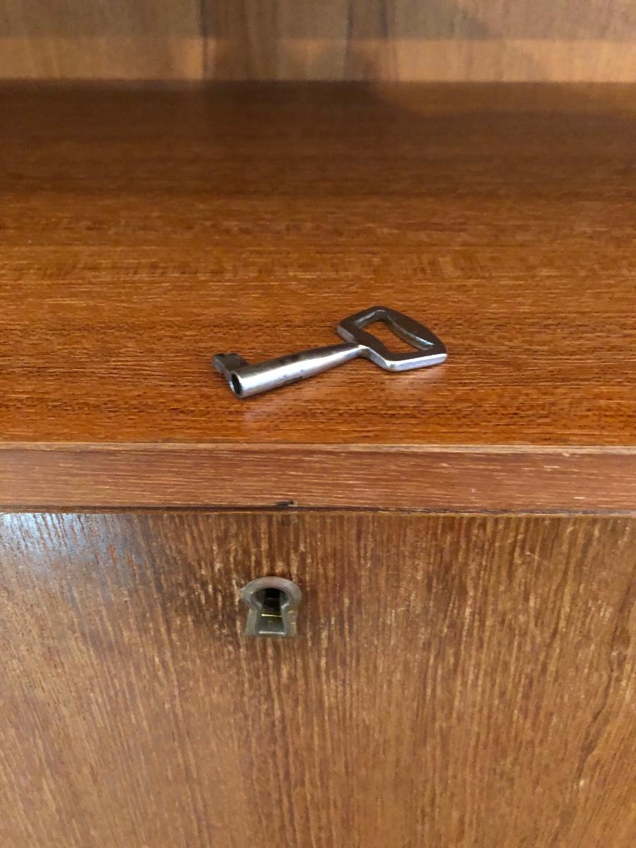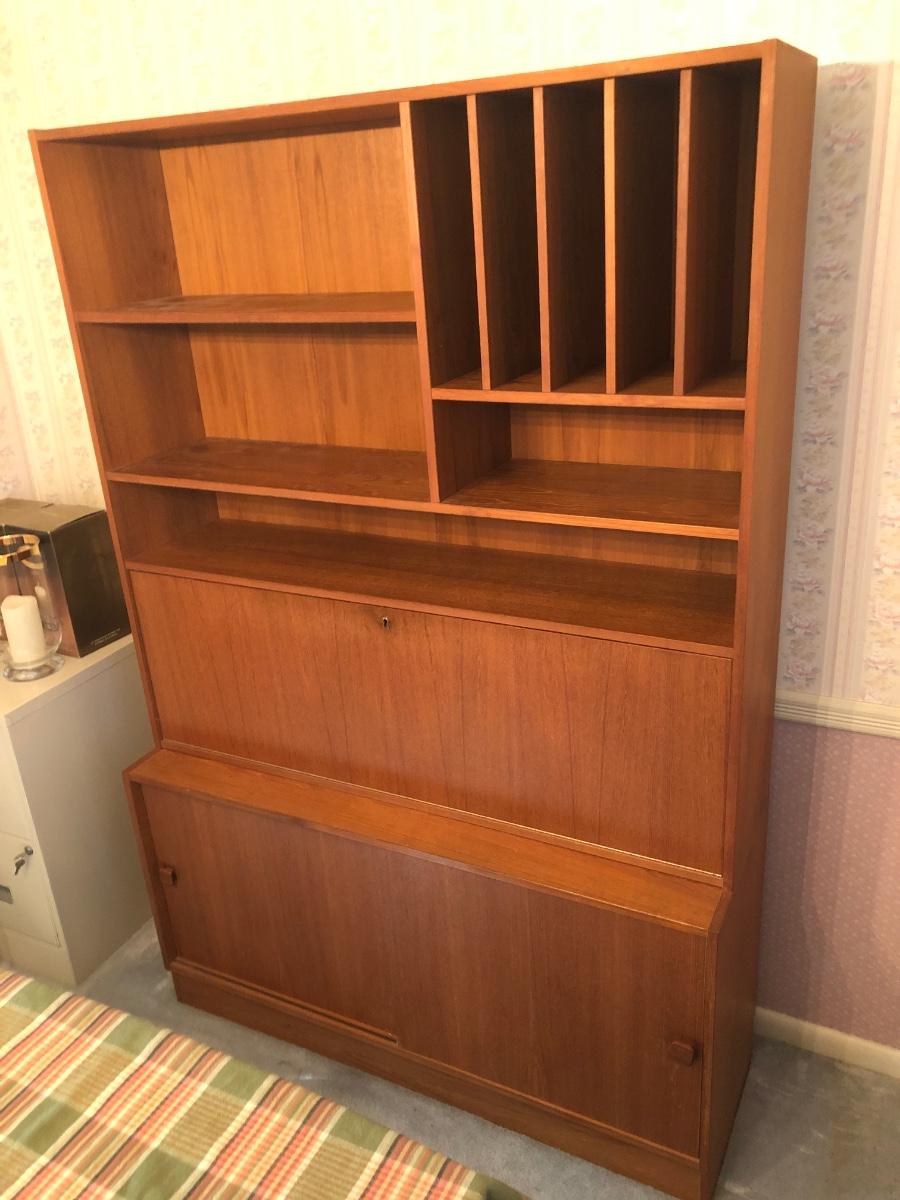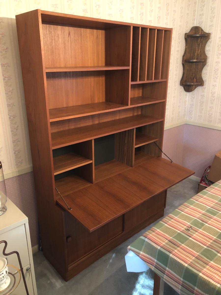 LOT 91D: Vintage/Mid-Century Modern Wooden Drop Front Desk w/ Key & Shelving
