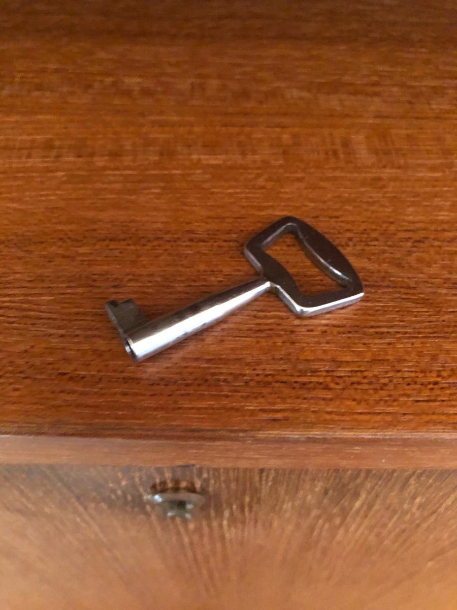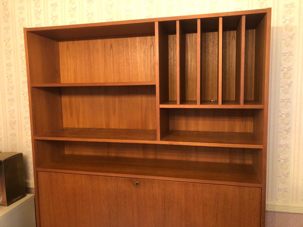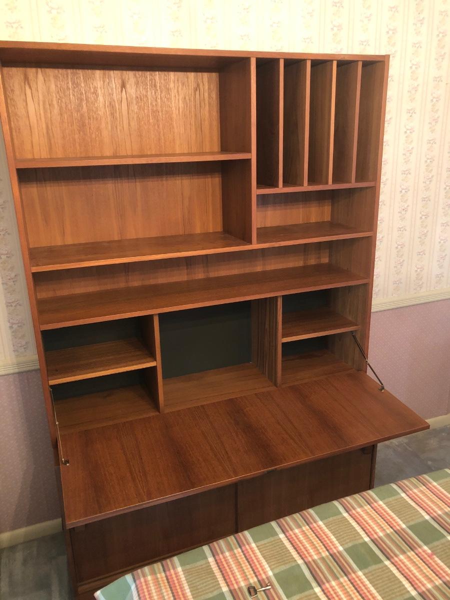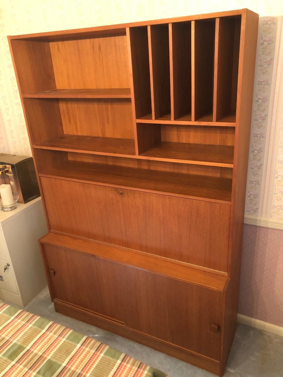 LOT 91D: Vintage/Mid-Century Modern Wooden Drop Front Desk w/ Key & Shelving