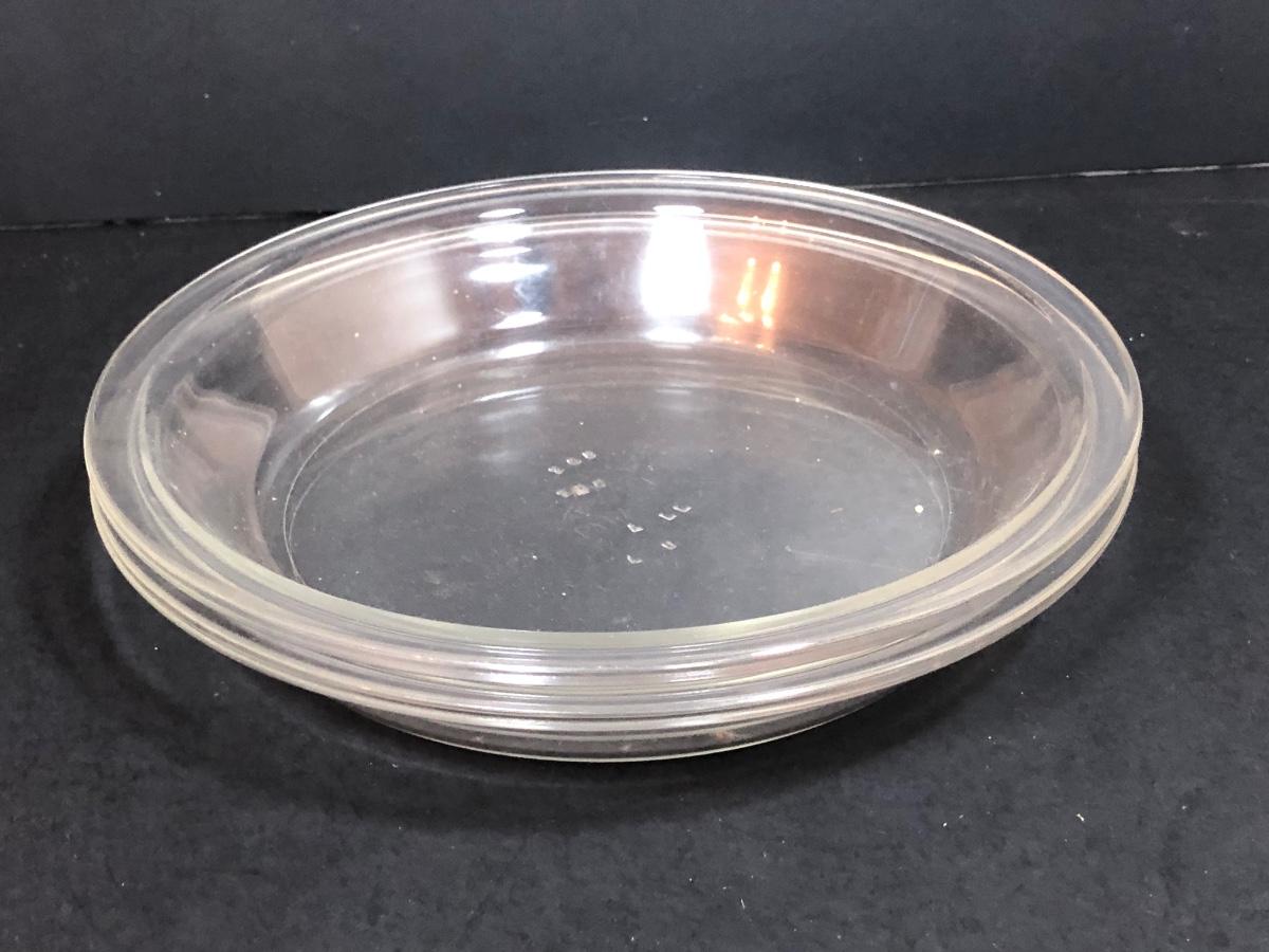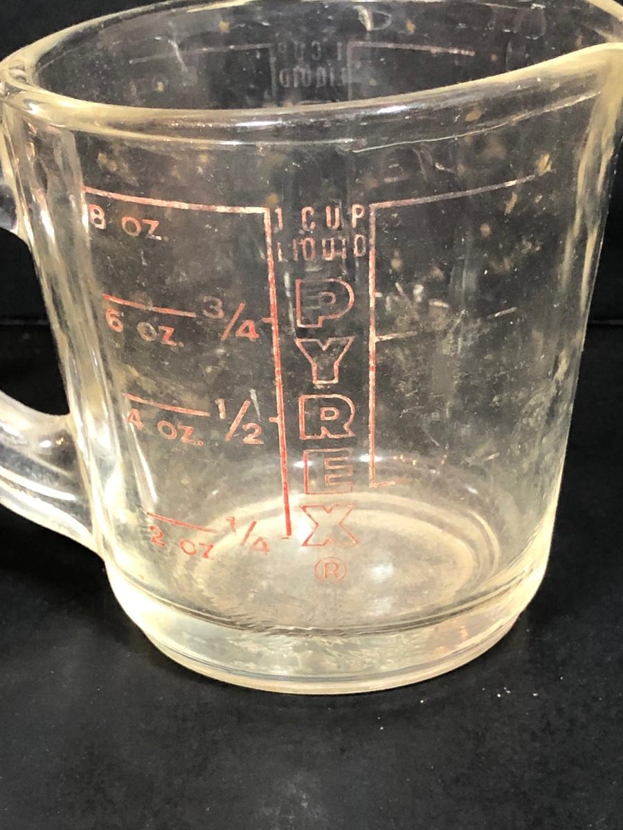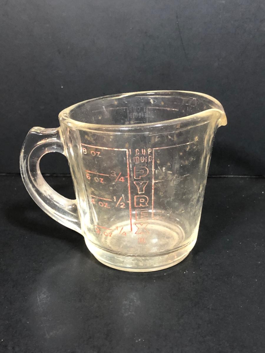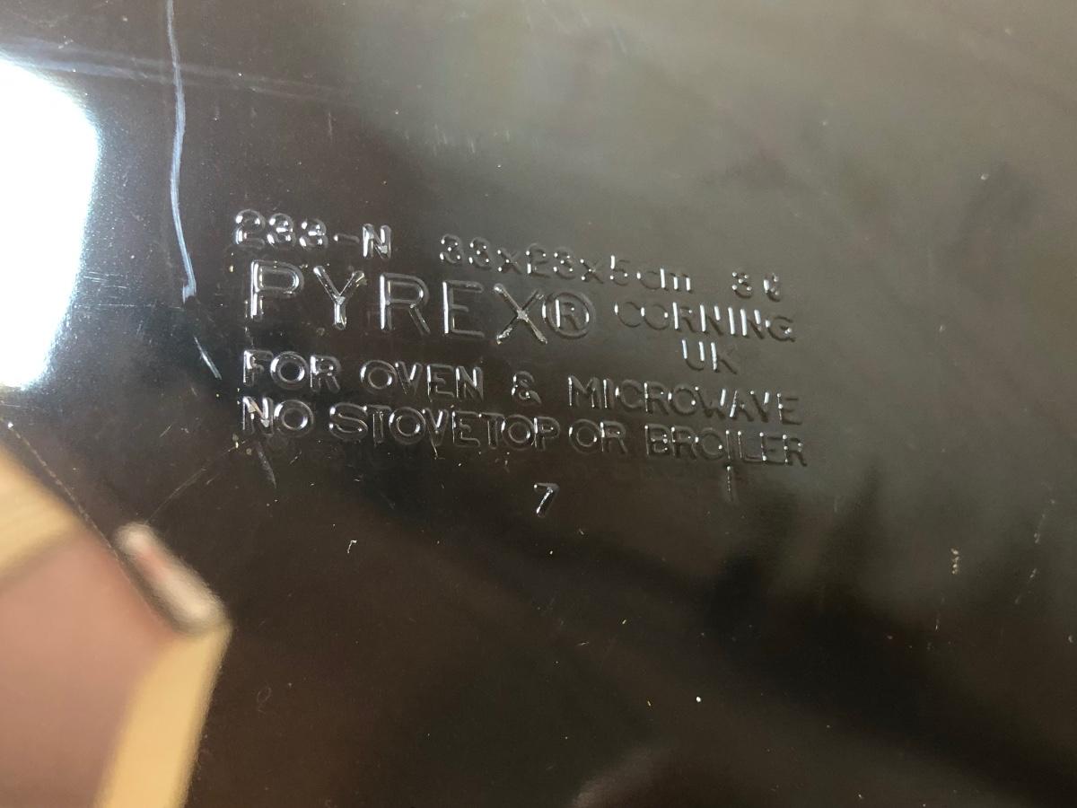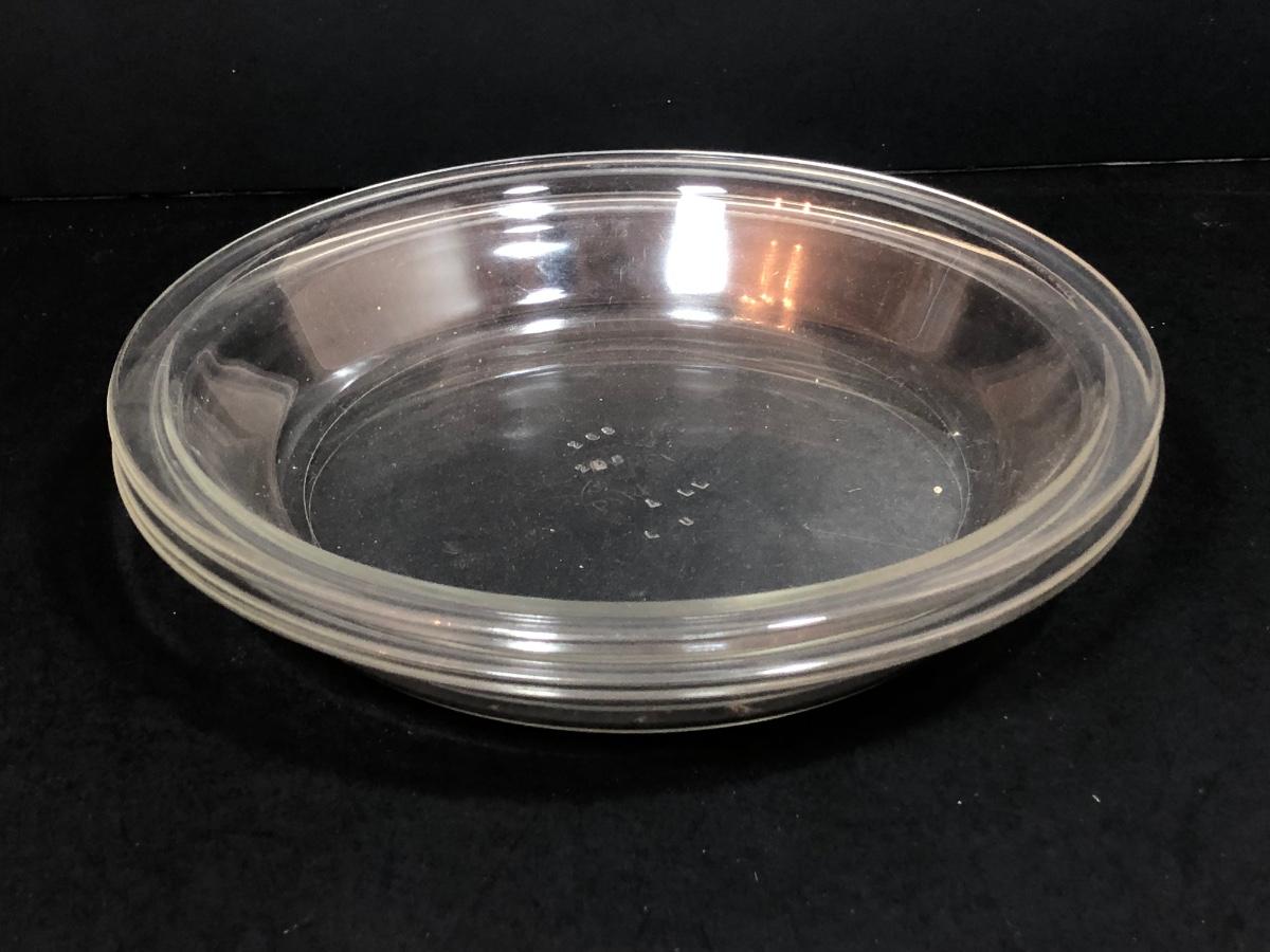 LOT 93K: Glass Pyrex Collection - Square & Round Baking Dishes, Measuring Cup & Tinted Casserole Dish w/ Cork Bottom Basket