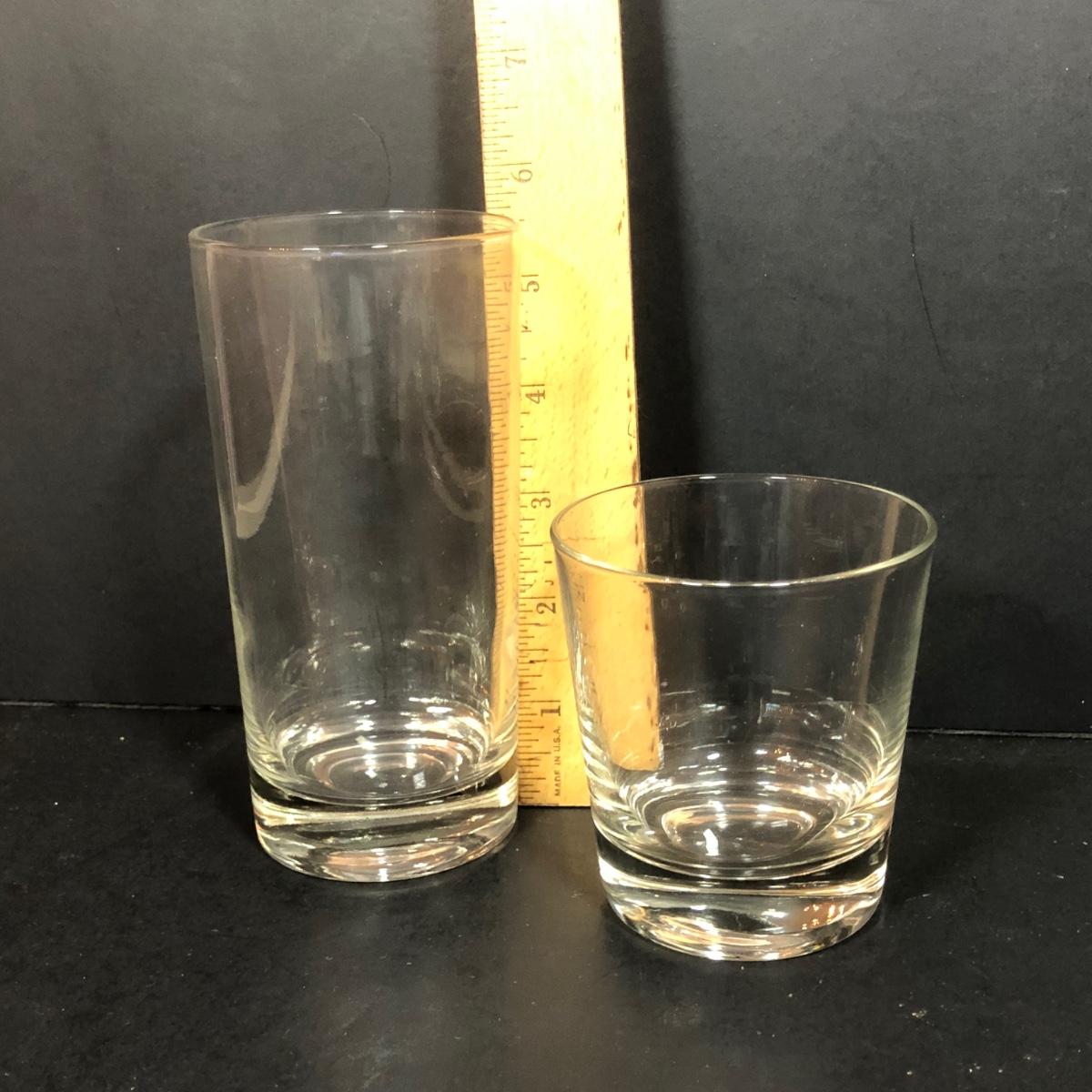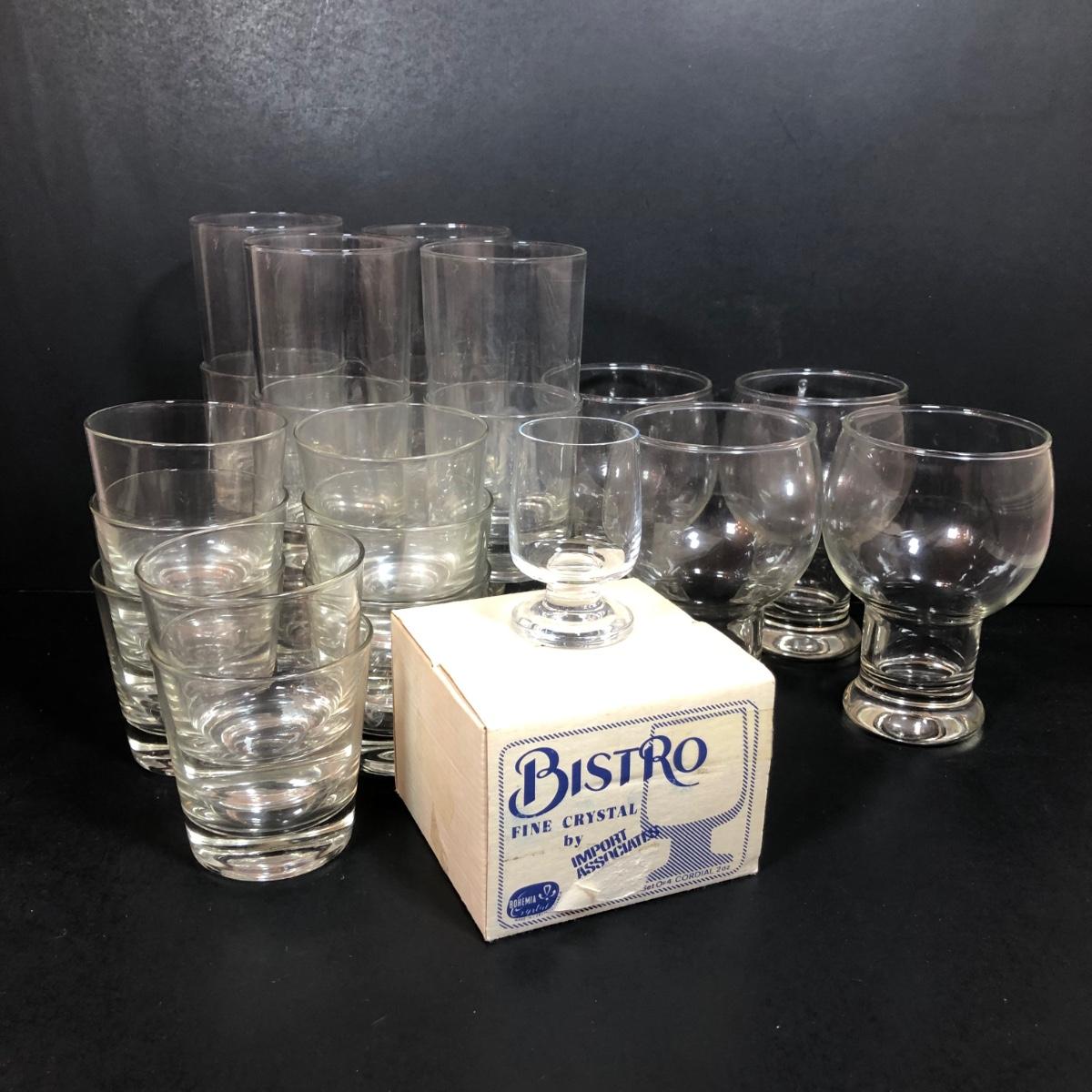 LOT 95F: MCM Clear Hollow Stem 16oz Beer Glasses, Bistro Fine Crystal Cordial Cups, Classic High & Lowball Glasses