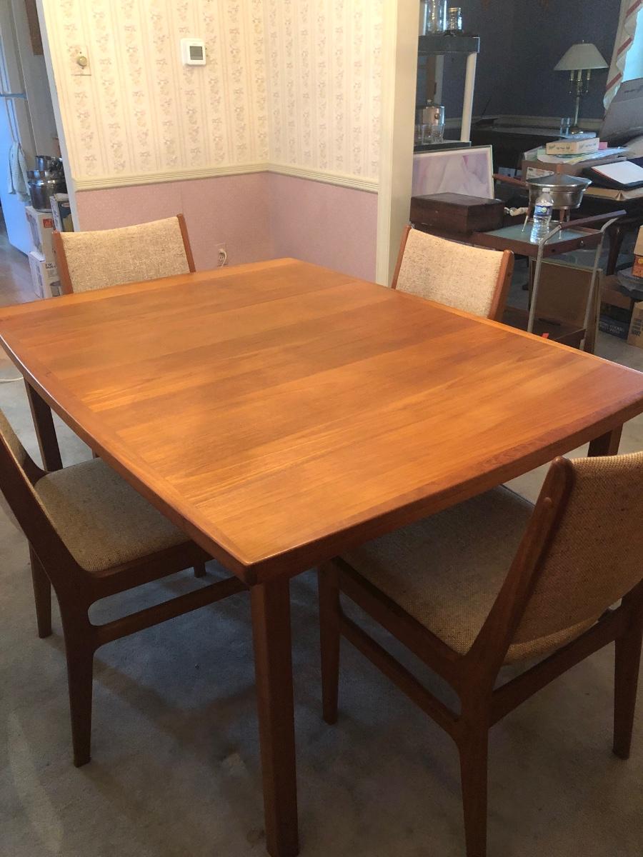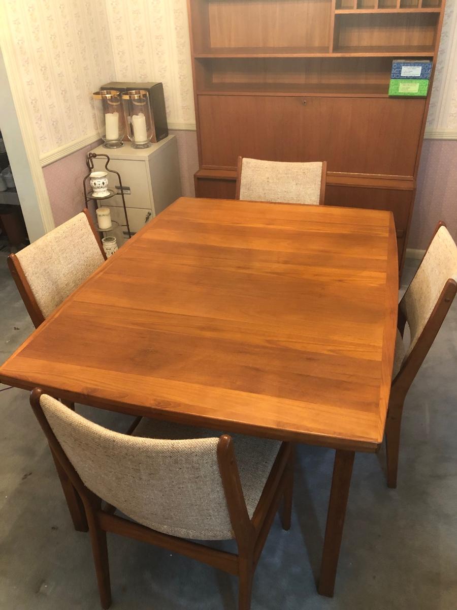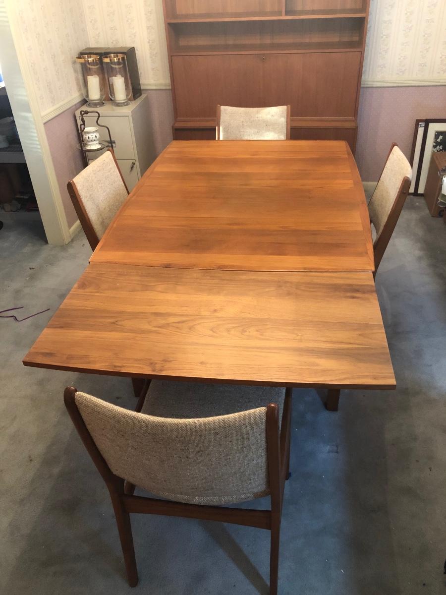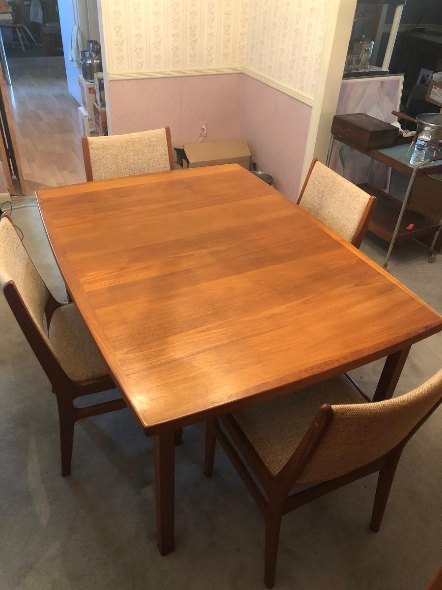 LOT 98D: Vintage/Mid-Century Modern Dining Table w/ 4 Chairs & 2 Pull-out Extensions