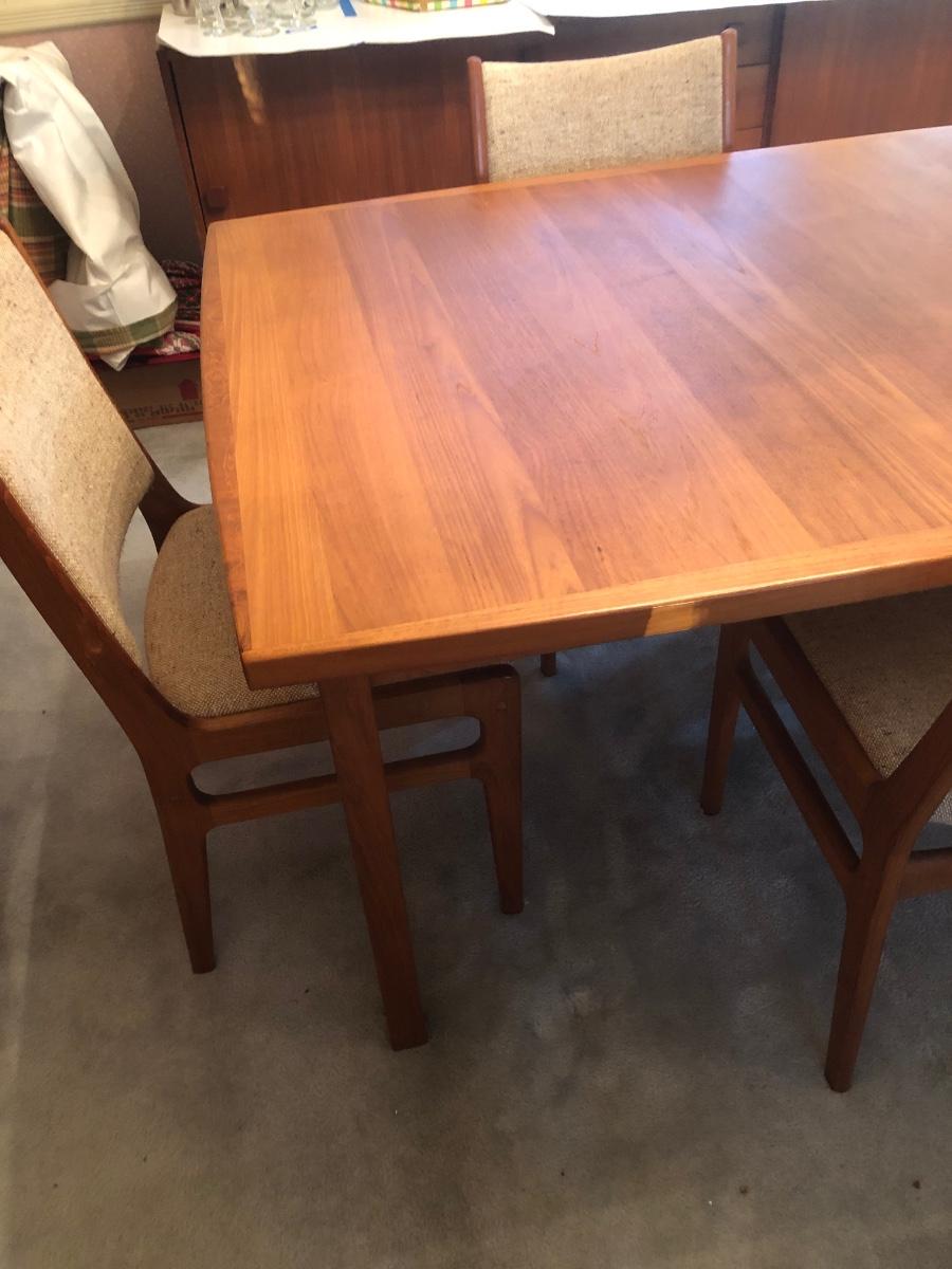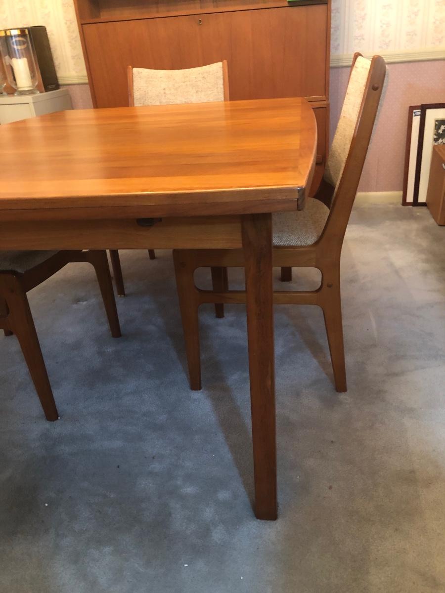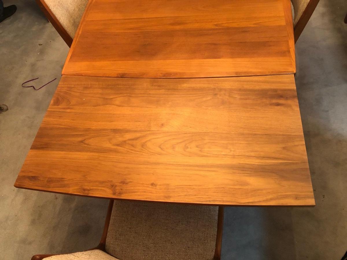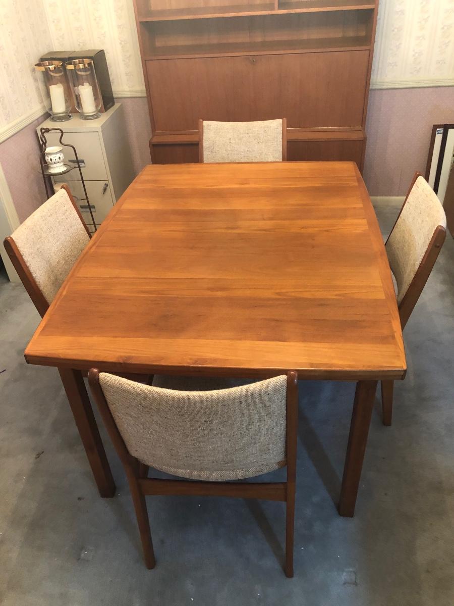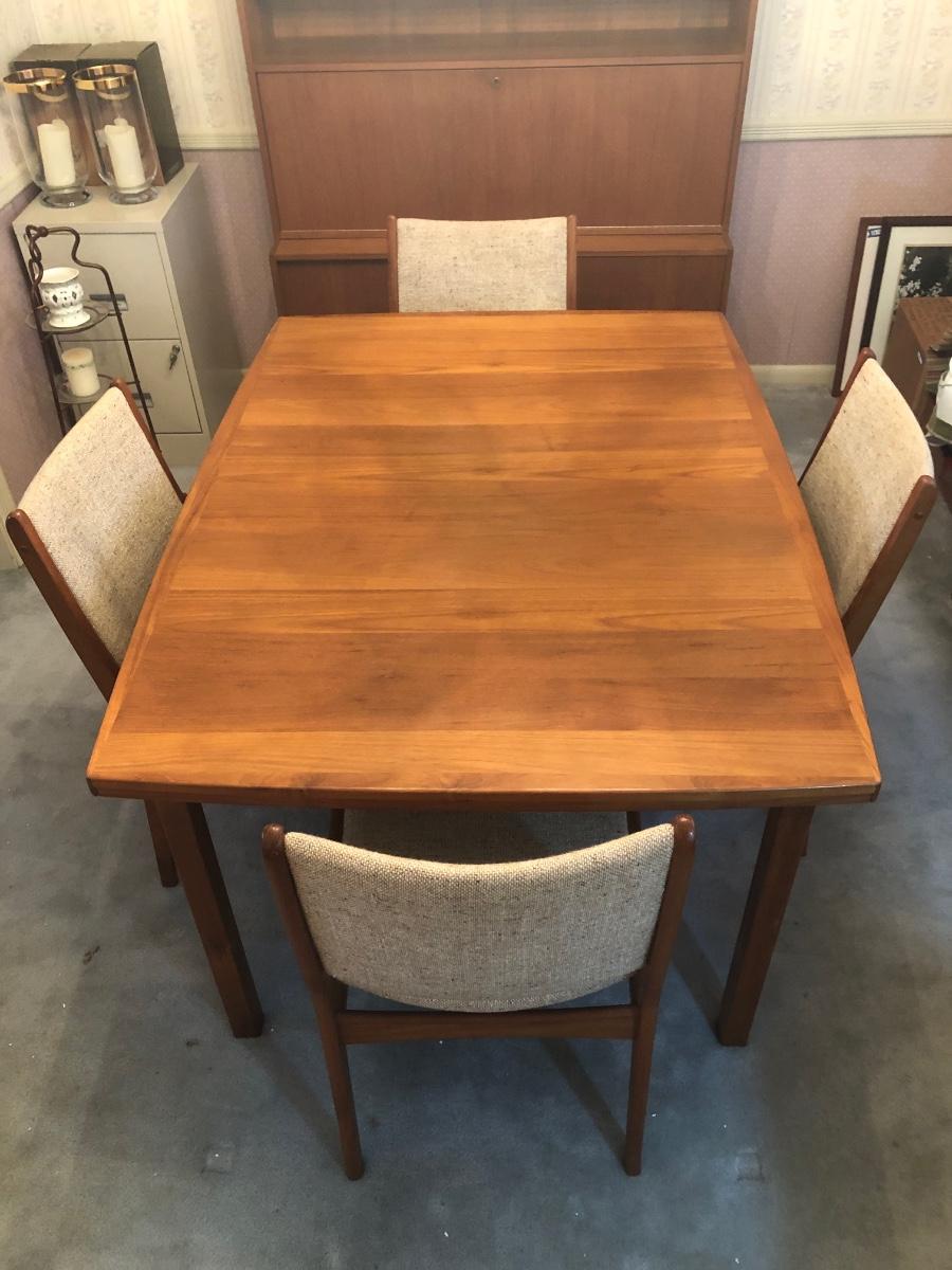 LOT 98D: Vintage/Mid-Century Modern Dining Table w/ 4 Chairs & 2 Pull-out Extensions