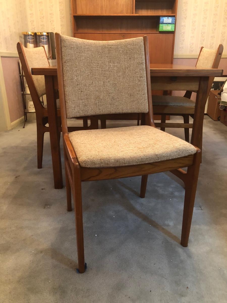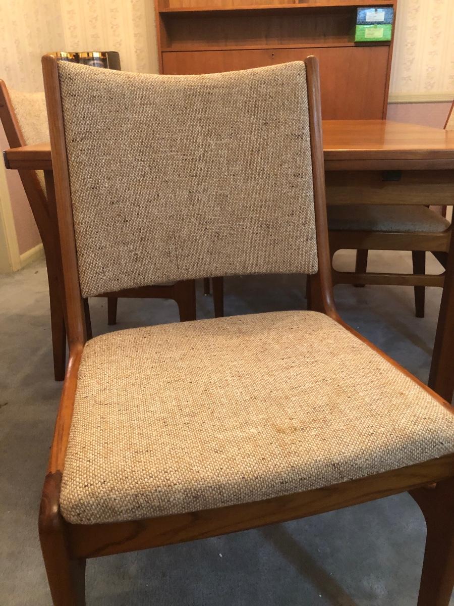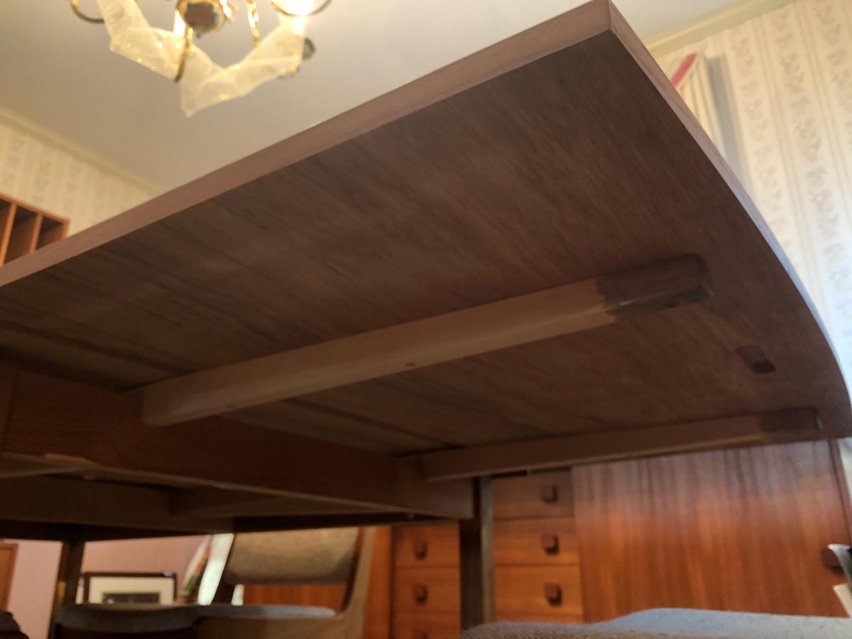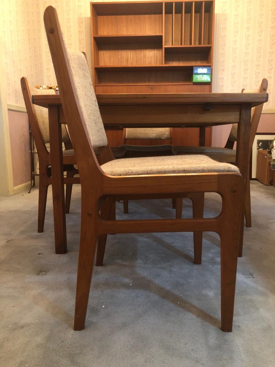 LOT 98D: Vintage/Mid-Century Modern Dining Table w/ 4 Chairs & 2 Pull-out Extensions