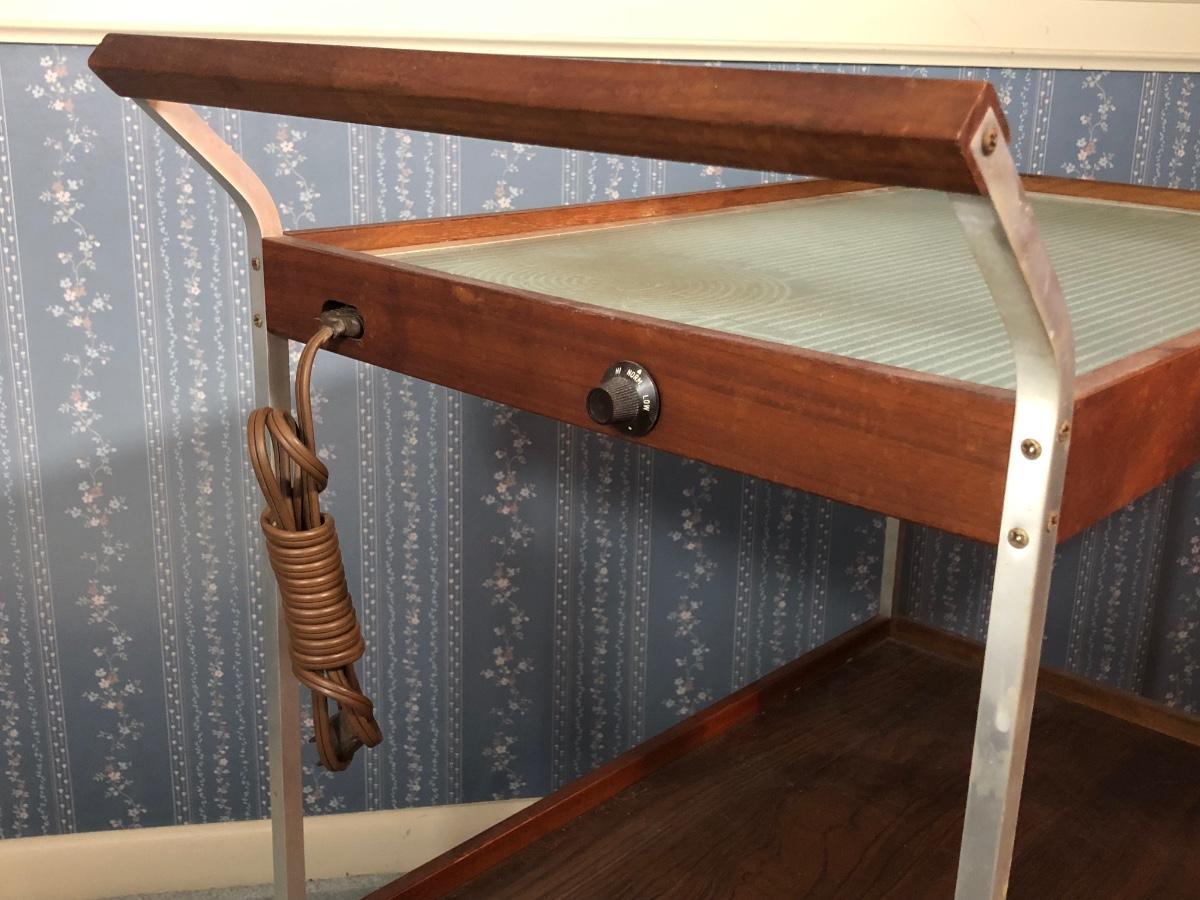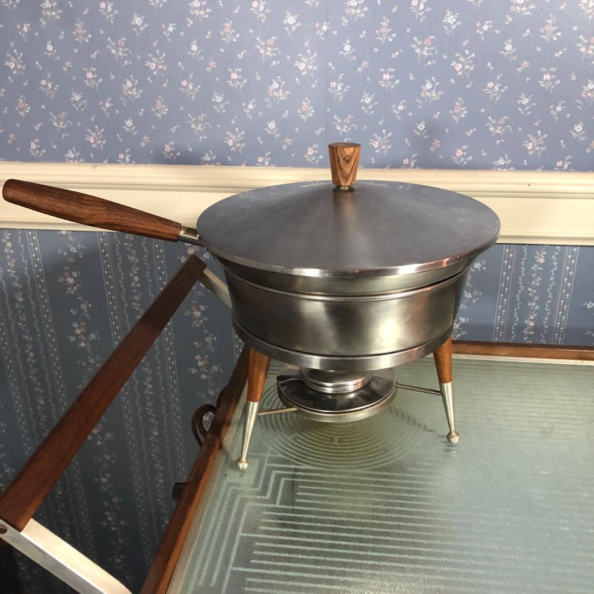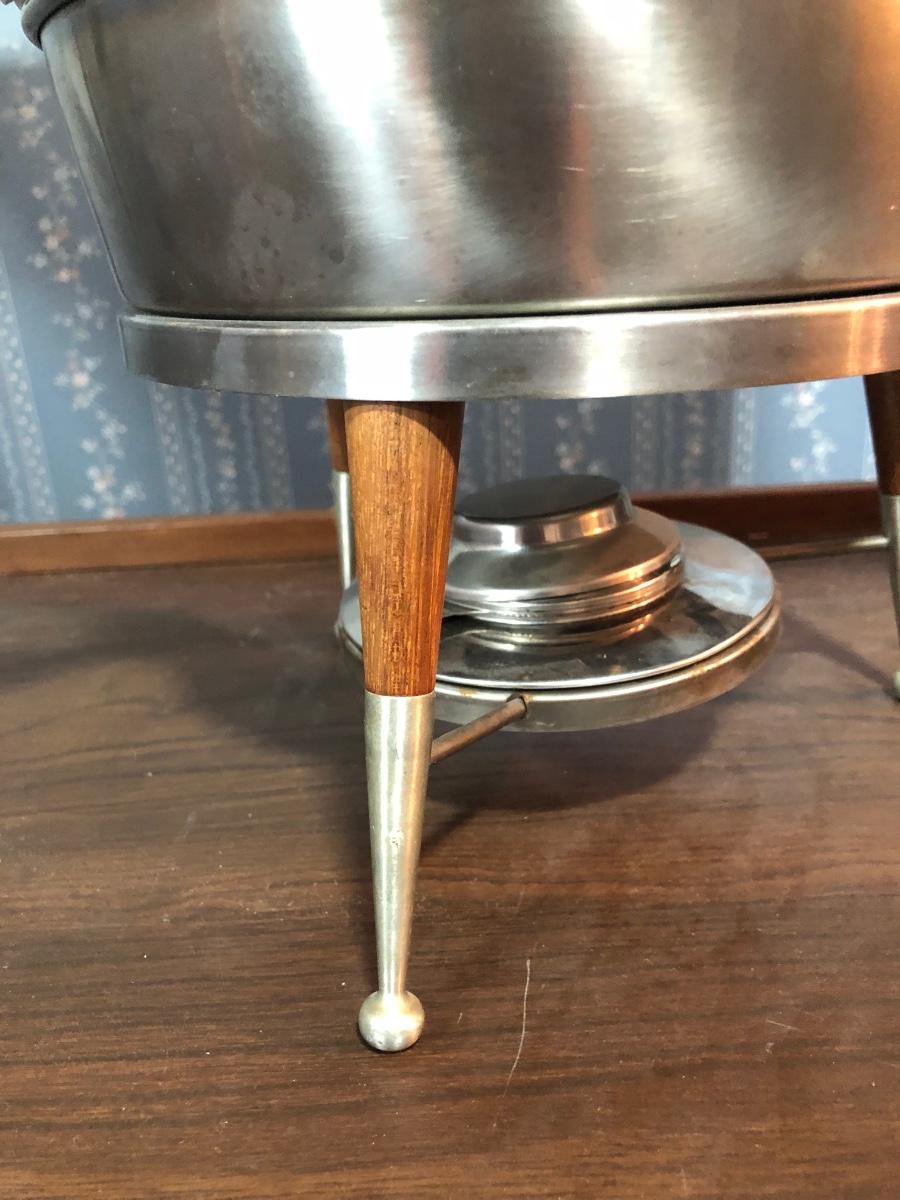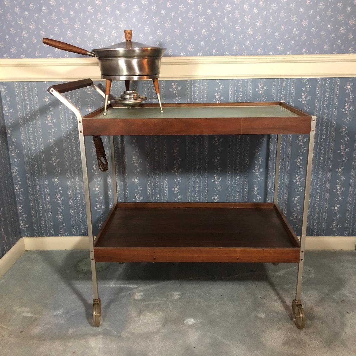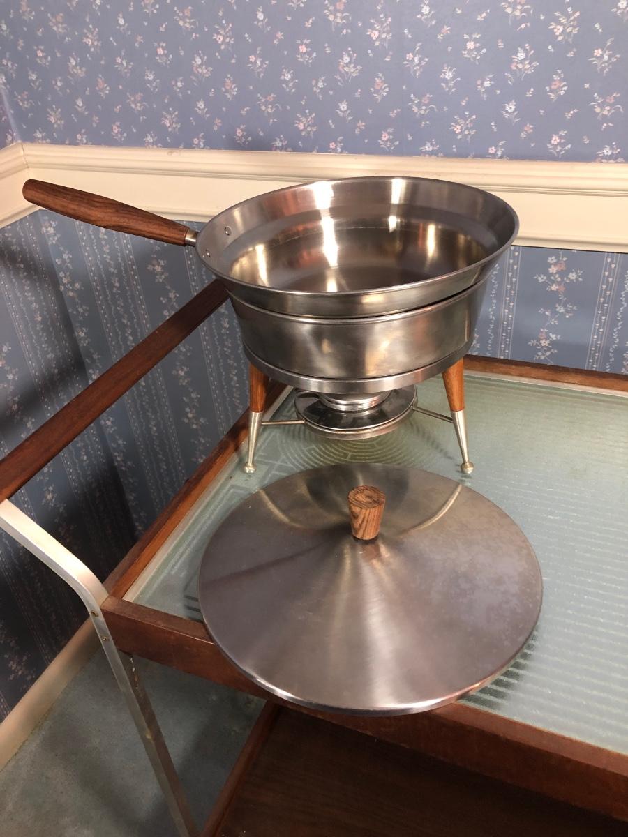 LOT 108F: Vintage/Mid-Century Modern Hotray Heating Cart w/ Wheels & MCM Chaffing Dish