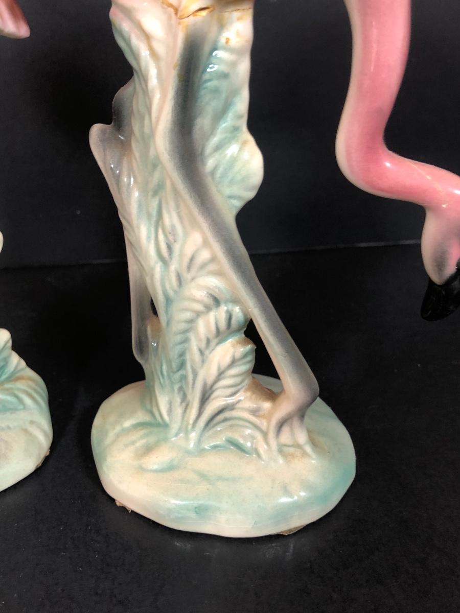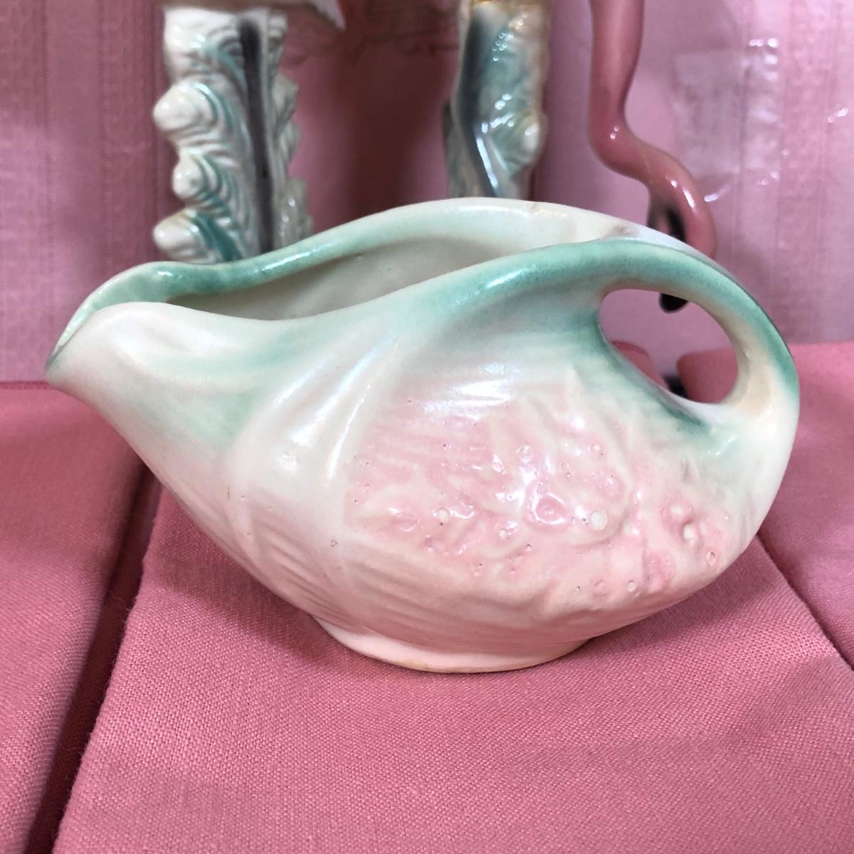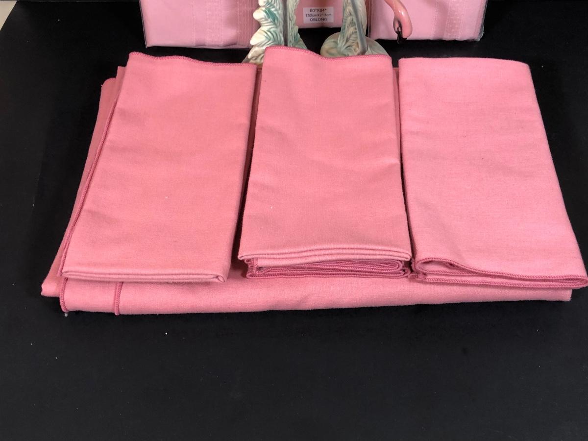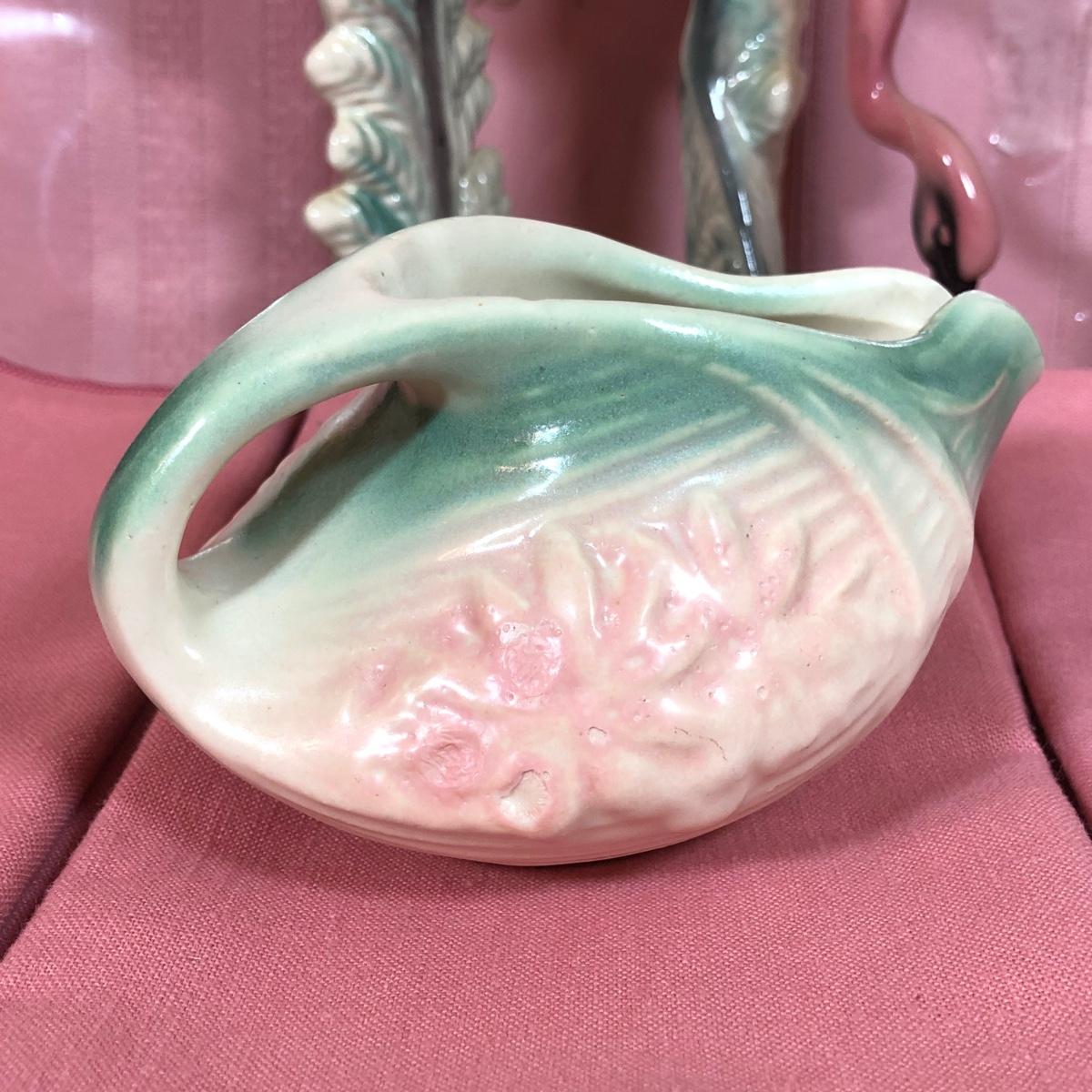 LOT 110K: Vintage 1940s McCoy Pottery Pink/Green Daisy Creamer, Brad Keeler Flamingo Pottery Sculptures & Pink Cloth Napkins & Table Cloths (Some NIP)