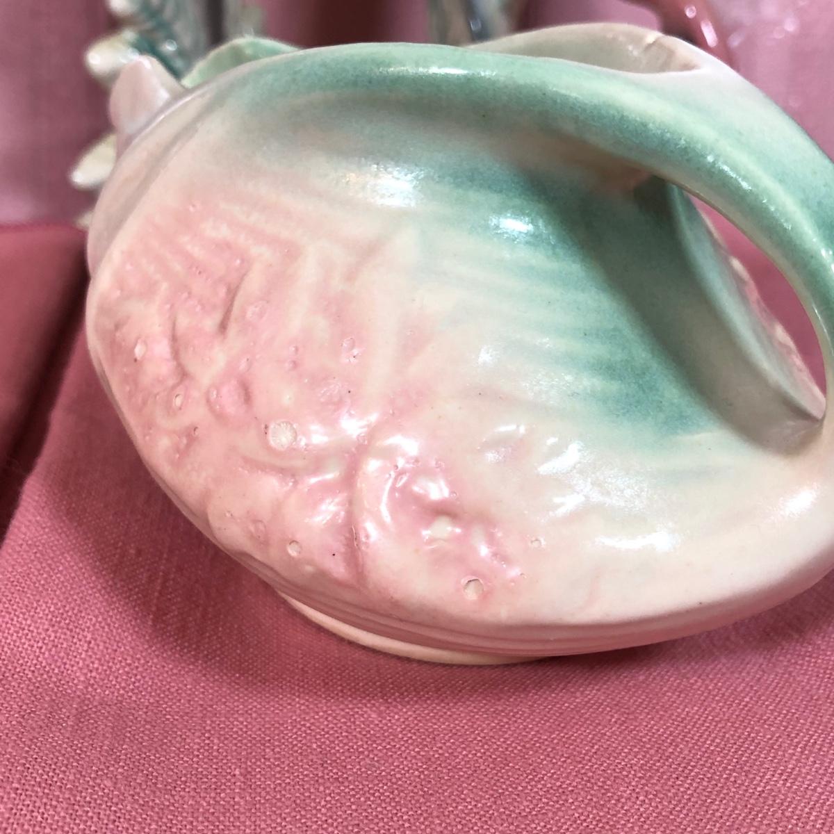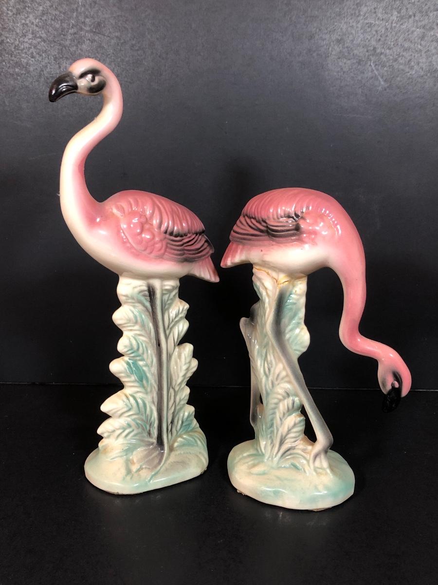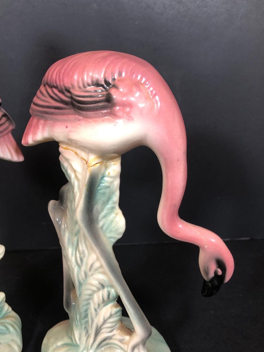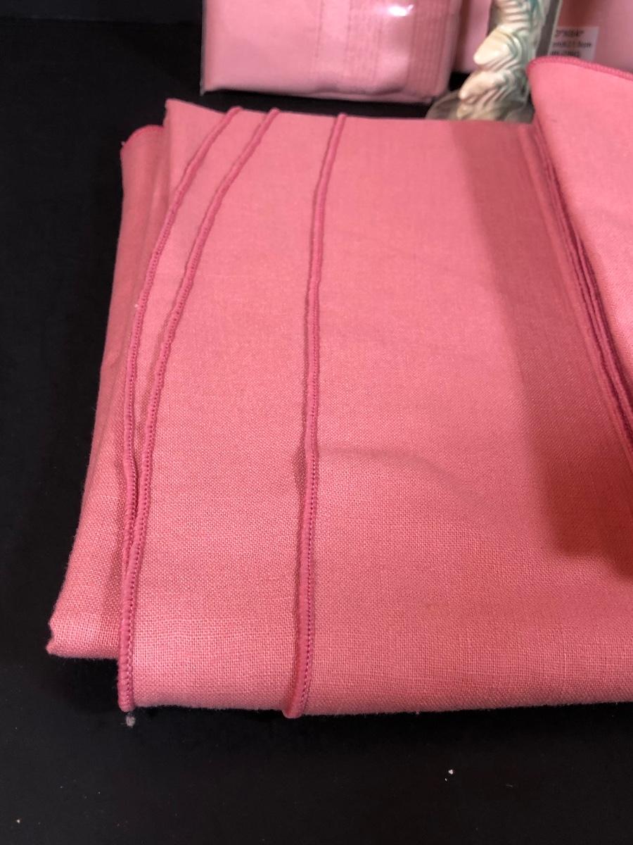 LOT 110K: Vintage 1940s McCoy Pottery Pink/Green Daisy Creamer, Brad Keeler Flamingo Pottery Sculptures & Pink Cloth Napkins & Table Cloths (Some NIP)