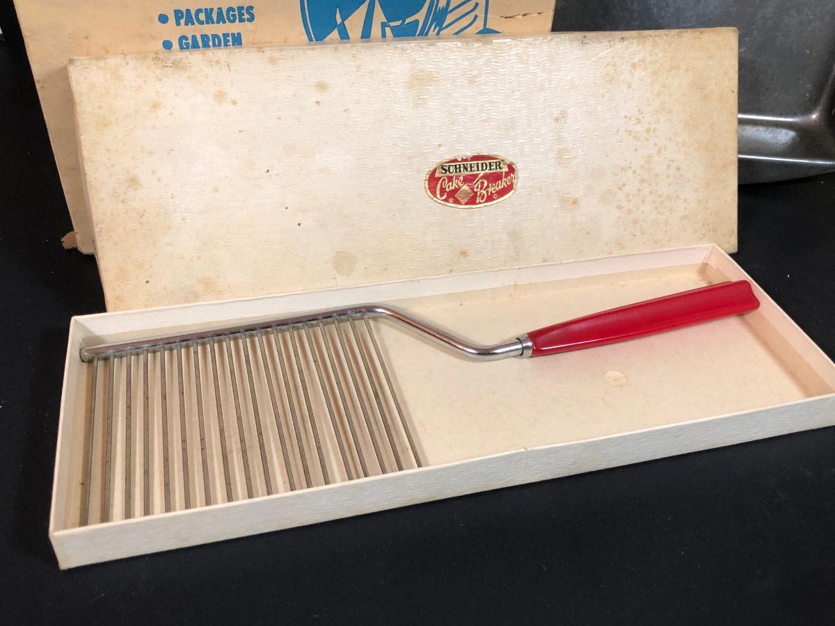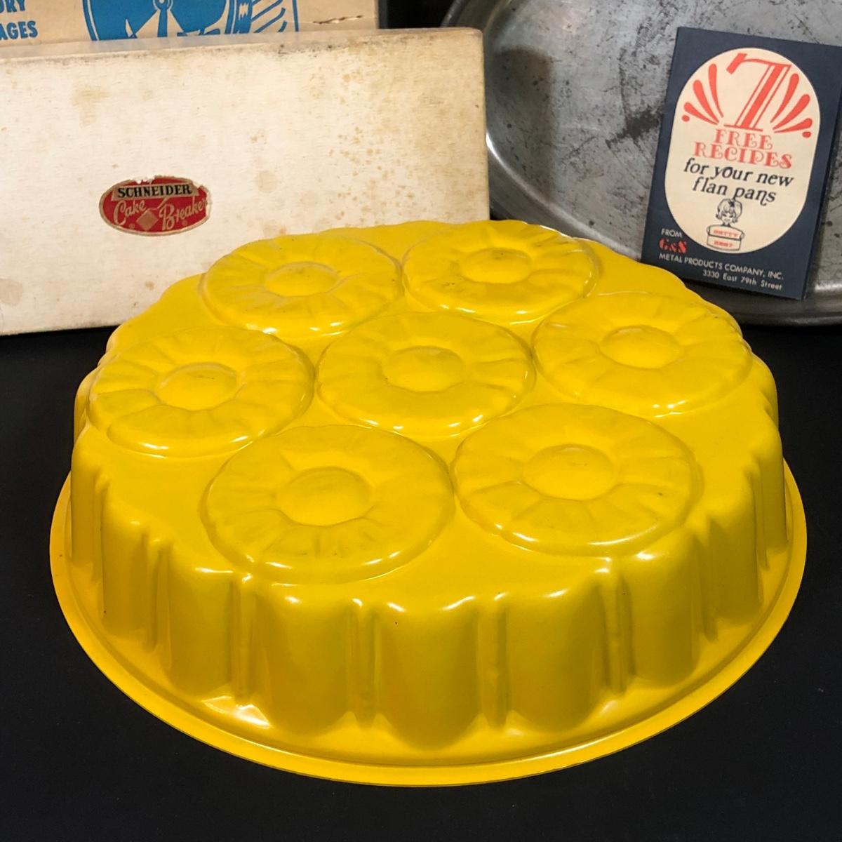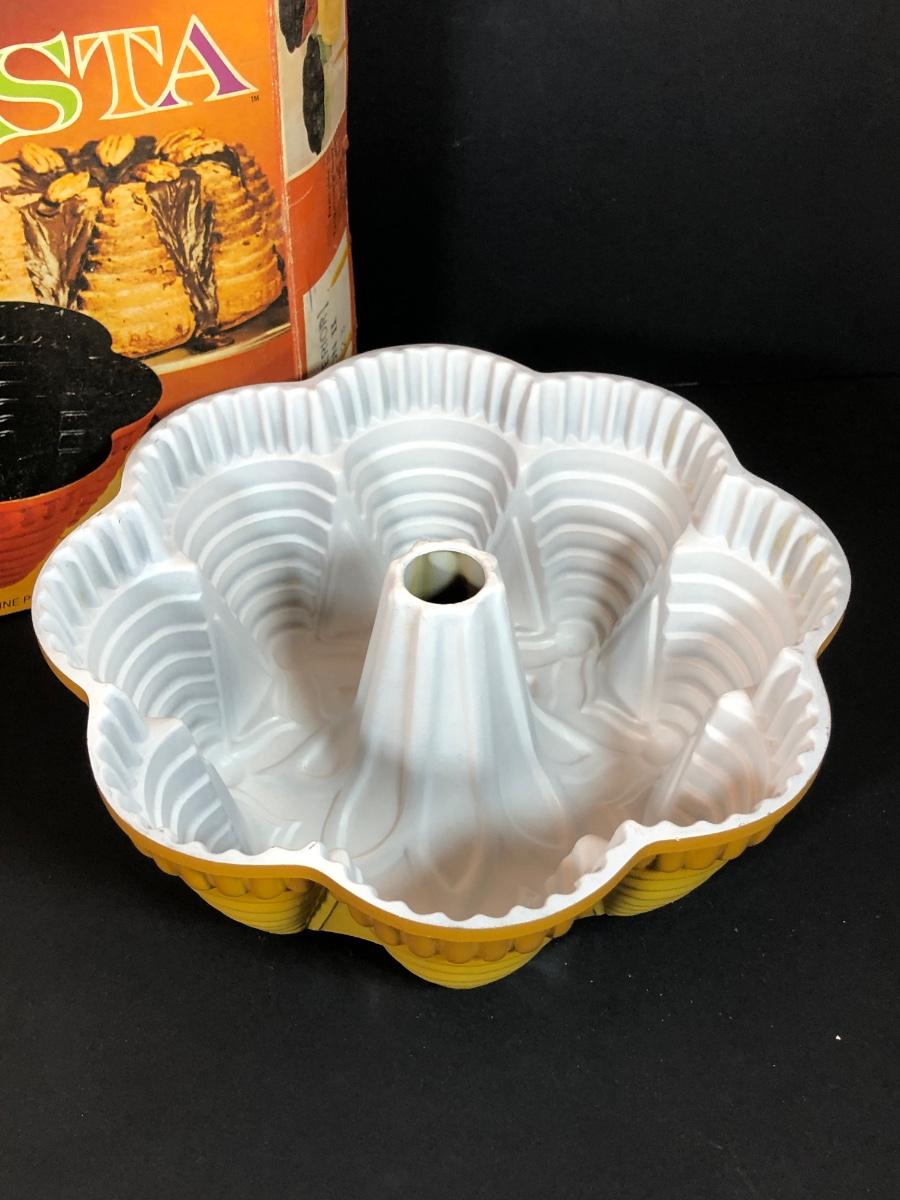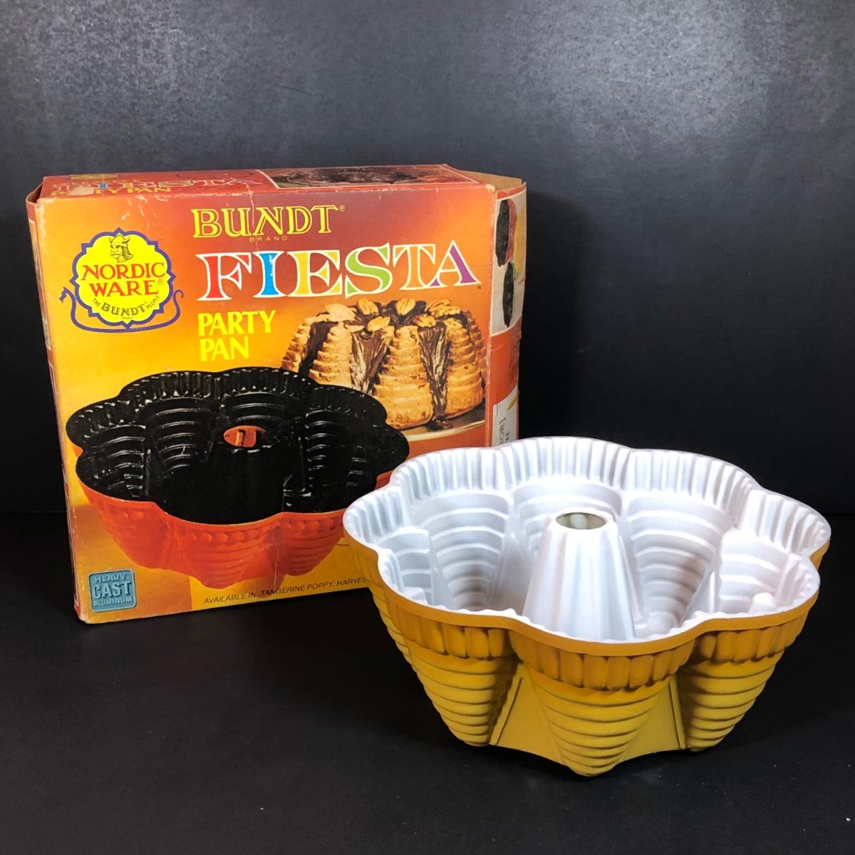 LOT 113F: Vintage Baking Collection - Household Scale, Checkered Marble Cake Pan, Pineapple Upside Down Cake Pan, Schneider Cake Breaker, Nodic Ware Fiesta Bundt Pan & More