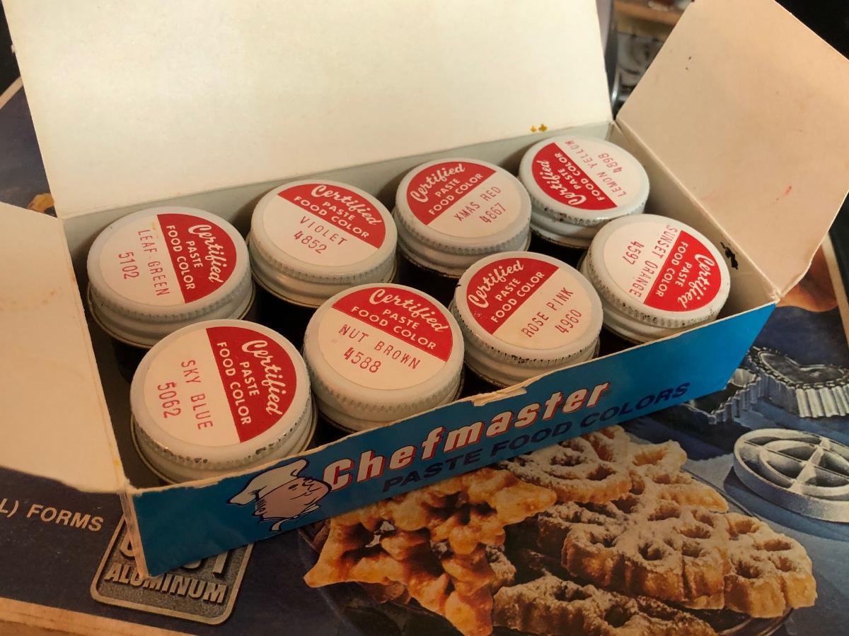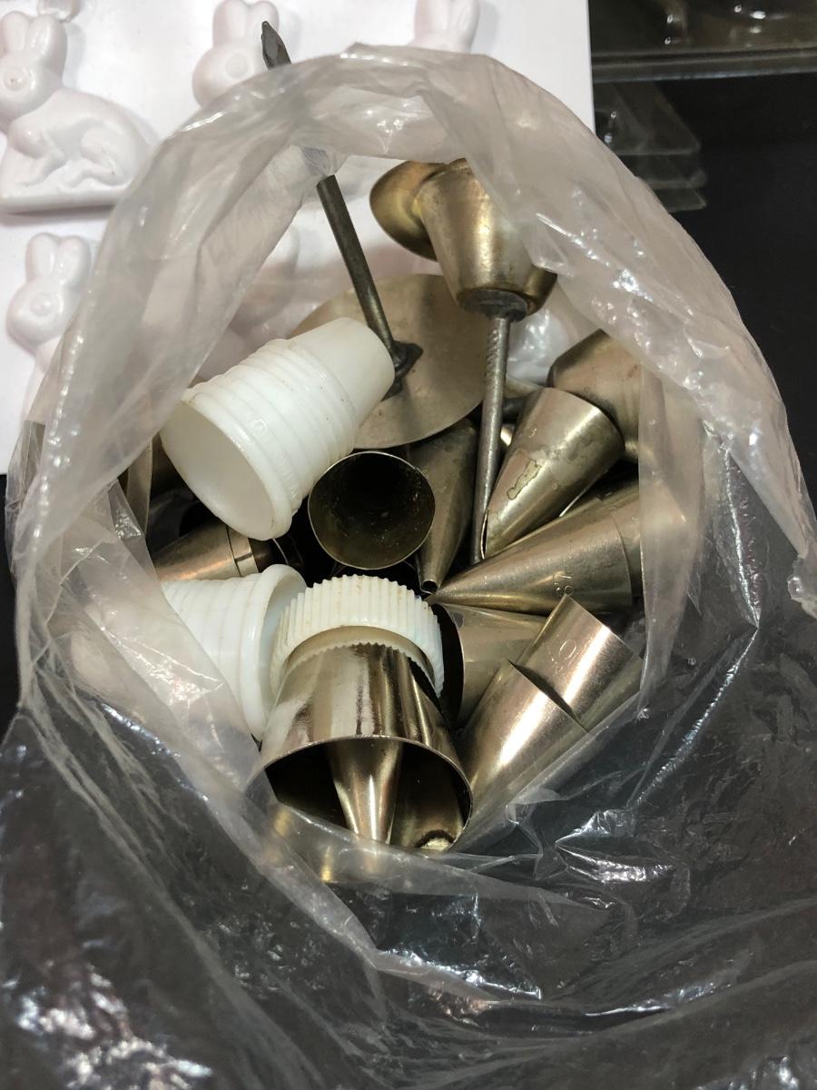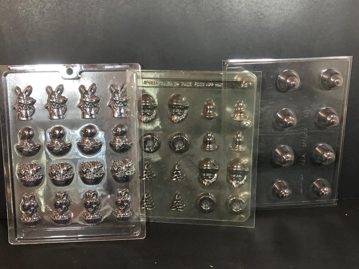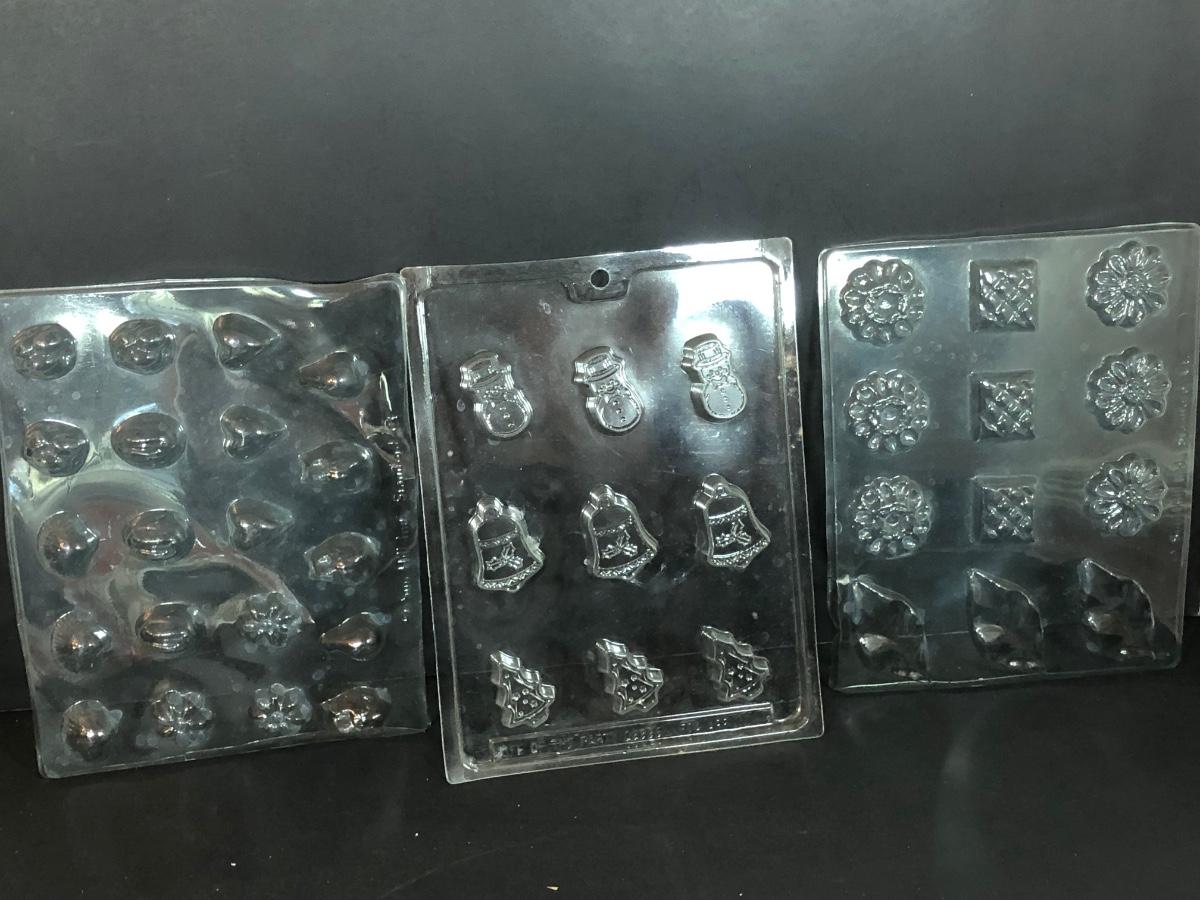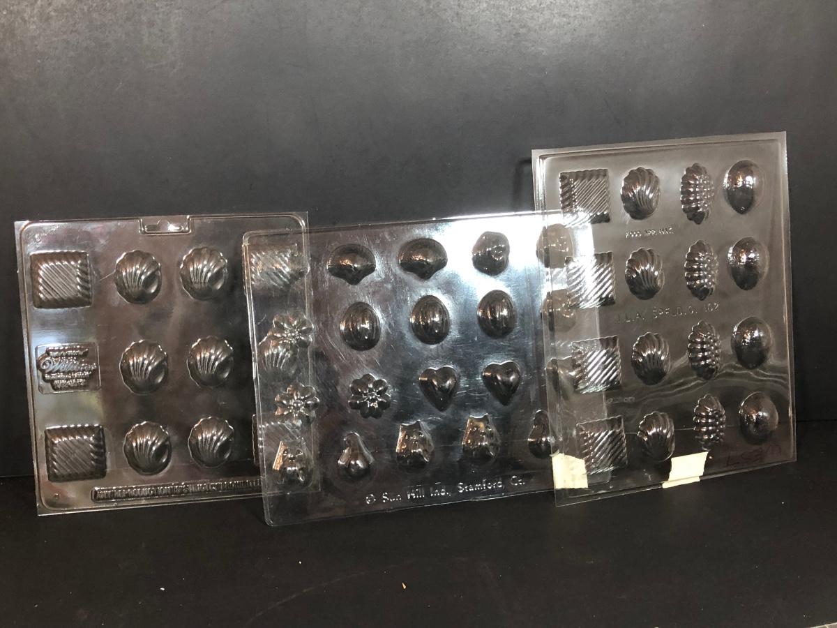 LOT 114F: Vintage Candy Molds, Nordic Ware Double Rosette & Timbale Iron in Box, Mirro "Cooky" & Pastry Press & Glass Thermometers