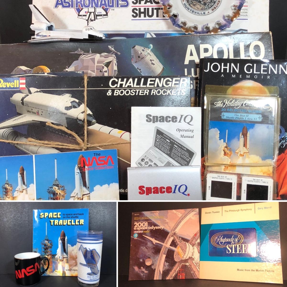 LOT 118F: NASA & Space Lover's Collection - Models, Slides, John Glenn Memoir, 2001 A Space Odyssey Record, ERTL Ship Model & More
